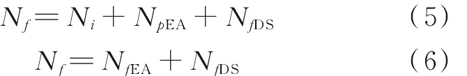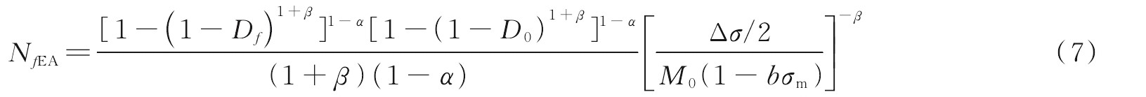 式中Nf EA为表面损伤区域内裂纹萌生寿命(Ni)与扩展寿命(Np EA)之和,等同于此区域裂纹萌生寿命与裂纹扩展寿命之和,Nf EA通过用基体中的裂纹剩余扩展寿命Nf DS计算,有