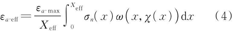 其次,使用传统的经典方法预测热腐蚀坑-疲劳断裂寿命,包括热点法、应变能模型、连续损伤力学(Continuum damage mechanics,CDM)法。对于热点法,将最大应力点处的应变幅度引入基于总应变的模型;对于应变能模型,分别计算损伤参数并将其引入应变能模型;对于CDM方法,在CDM方法中使用了最大应力幅度。此外,定义了热腐蚀-疲劳情况下的有效应变幅,有效应变幅可以通过将归一化应力梯度和权函数的乘积积分来计算,表达式为