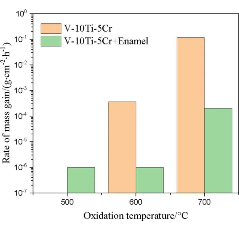 图11 搪瓷涂层对V-10Cr-5Ti合金在500~700 ℃氧化增重速率的影响