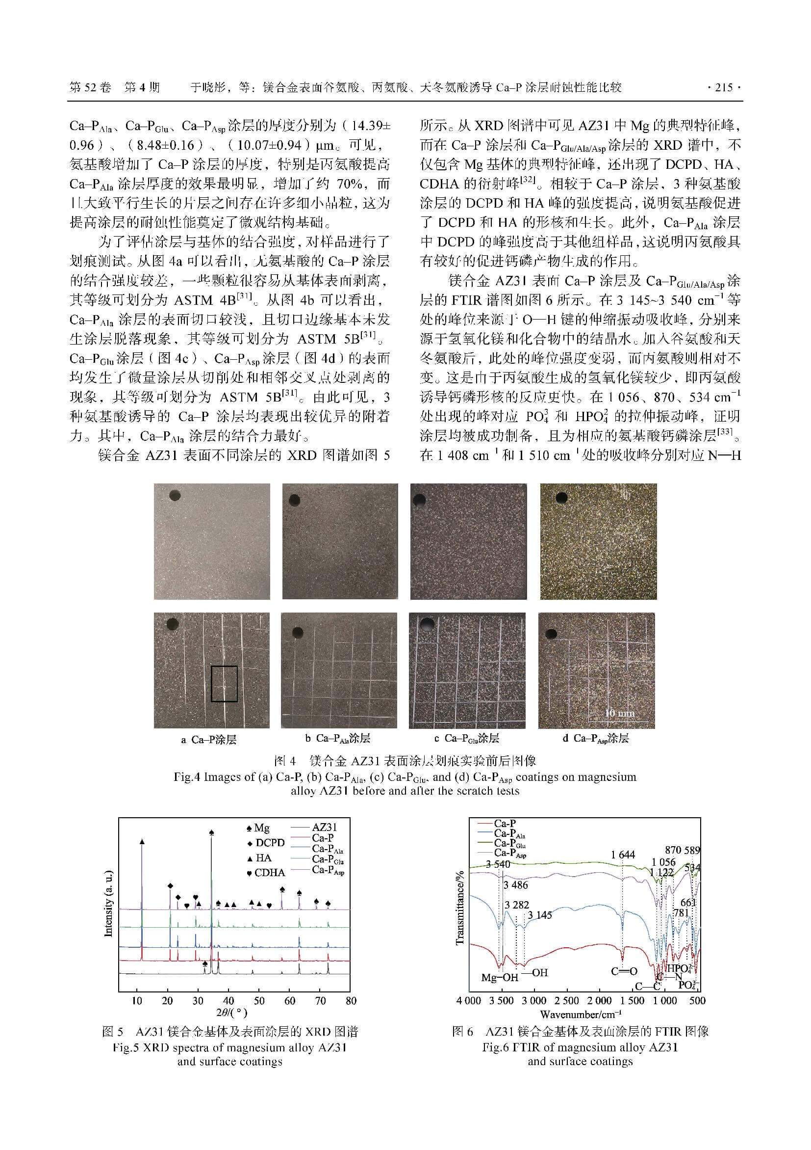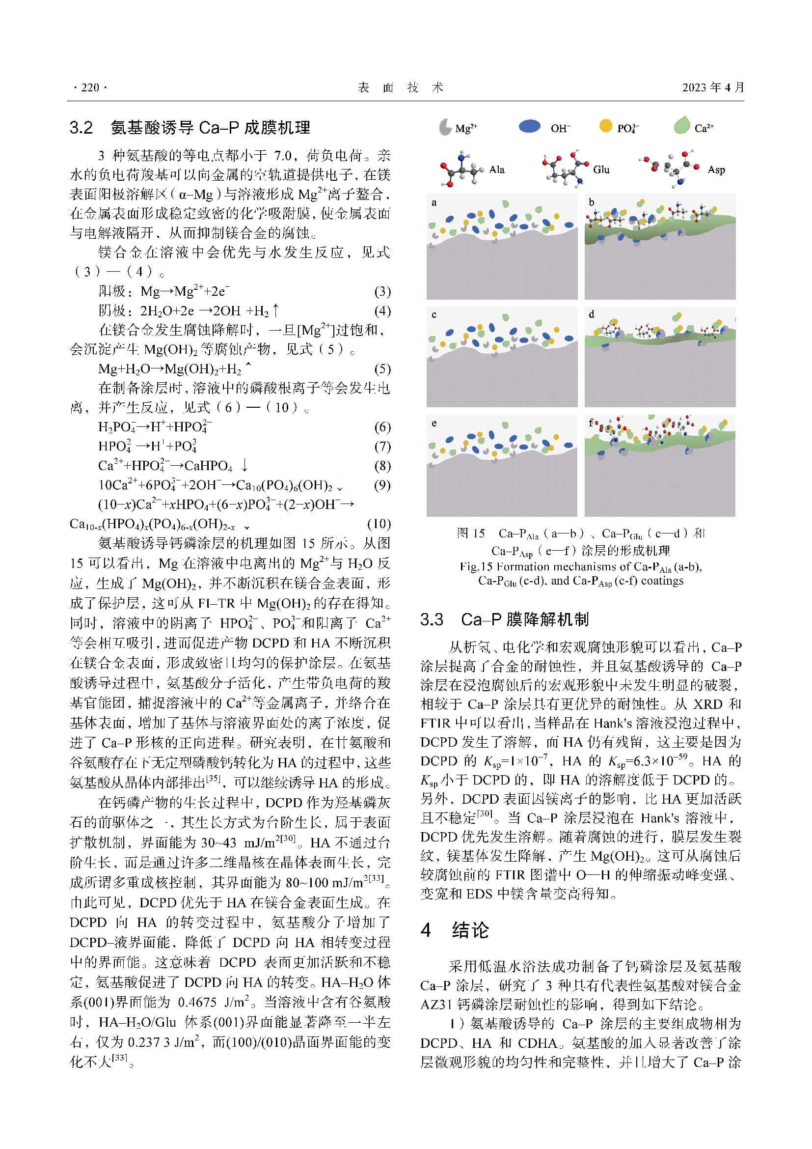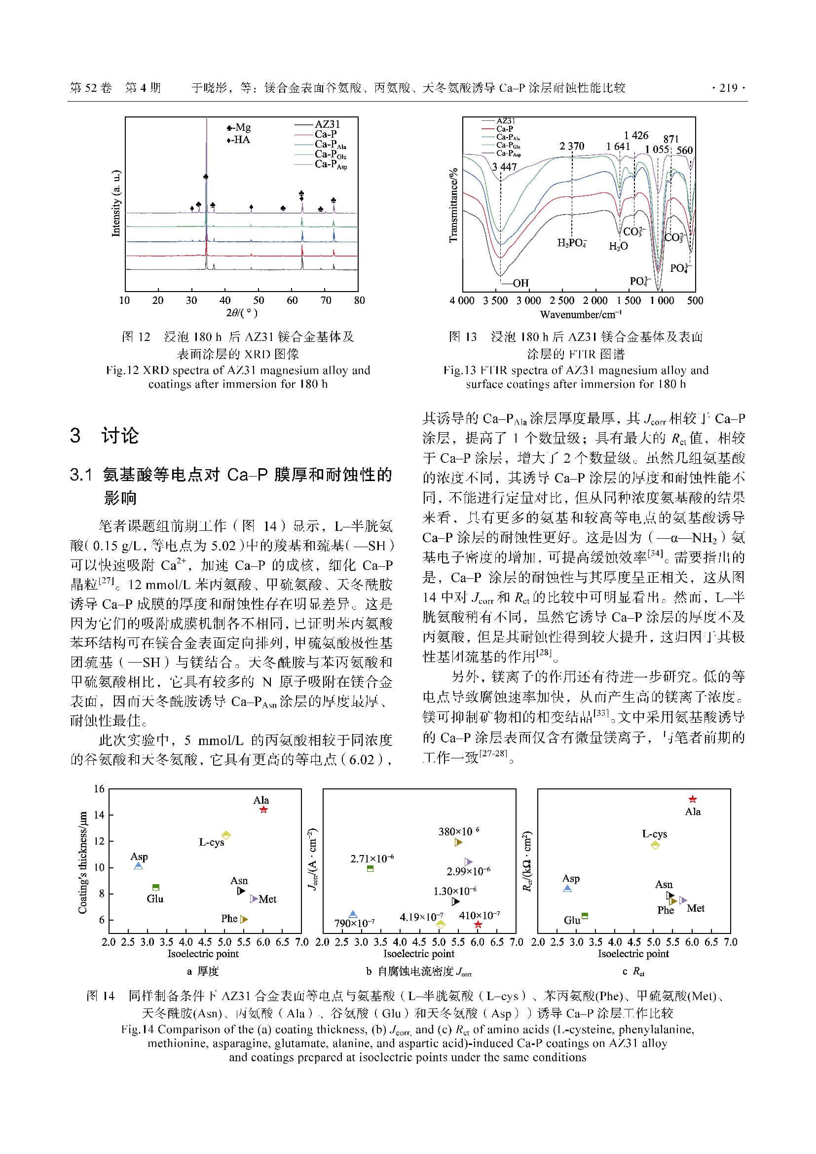 镁合金表面谷氨酸、丙氨酸、天冬氨酸诱导Ca–P涂层耐蚀性能比较