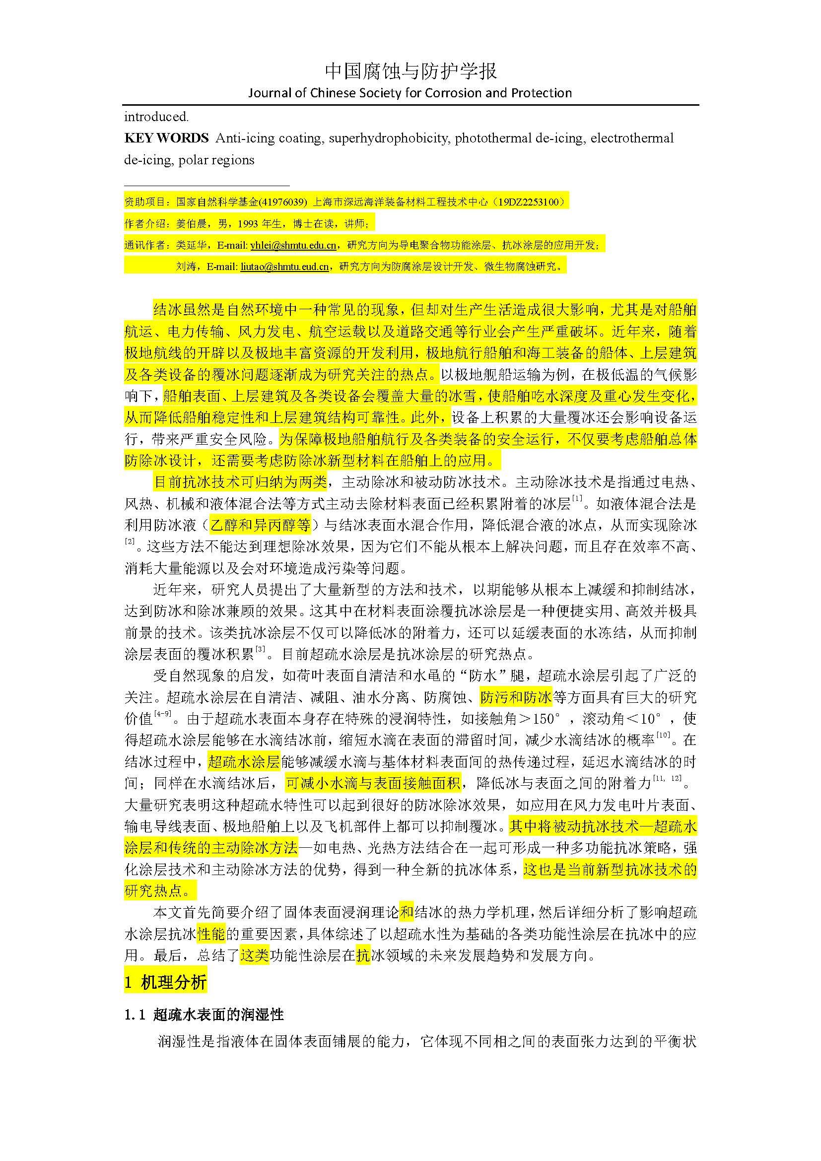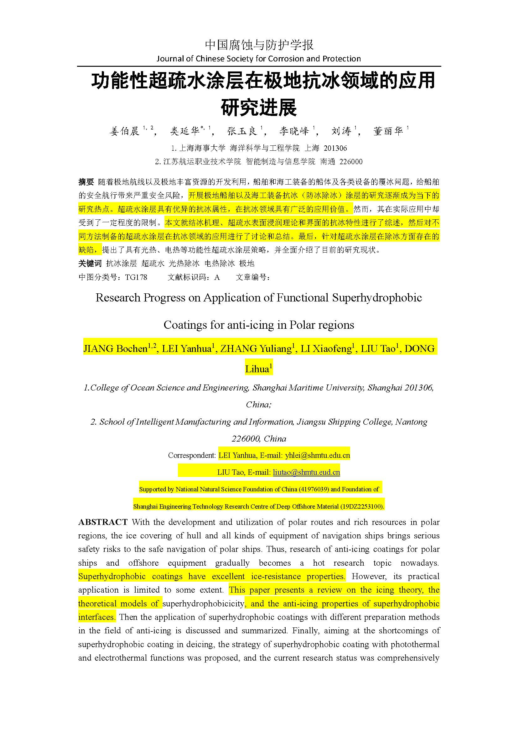功能性超疏水涂层在极地抗冰领域的应用研究进展