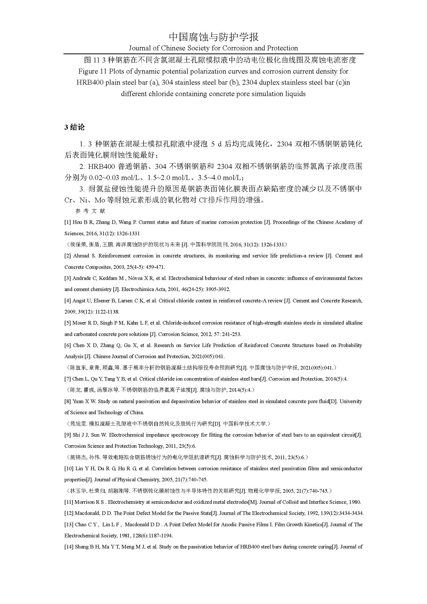 2304 双相不锈钢钢筋在混凝土孔隙模拟液中的电化学腐蚀行为研究
