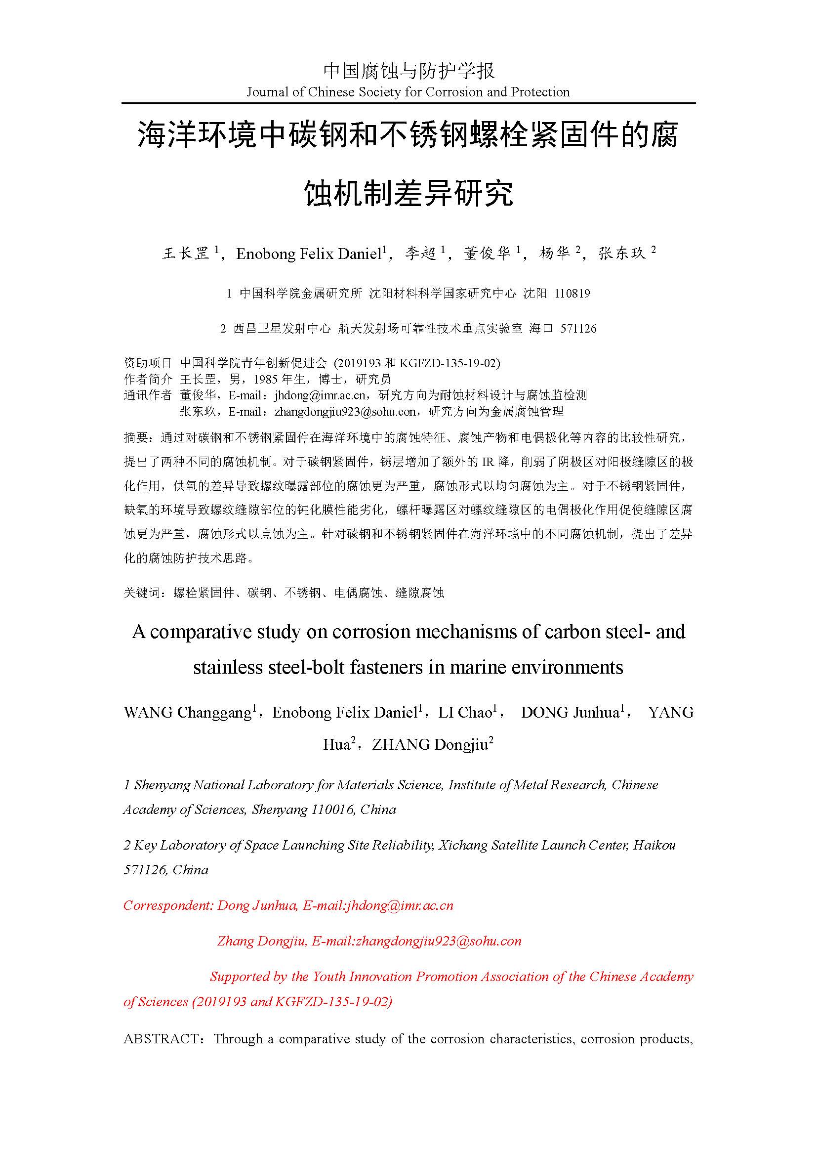来源:中国腐蚀与防护学报