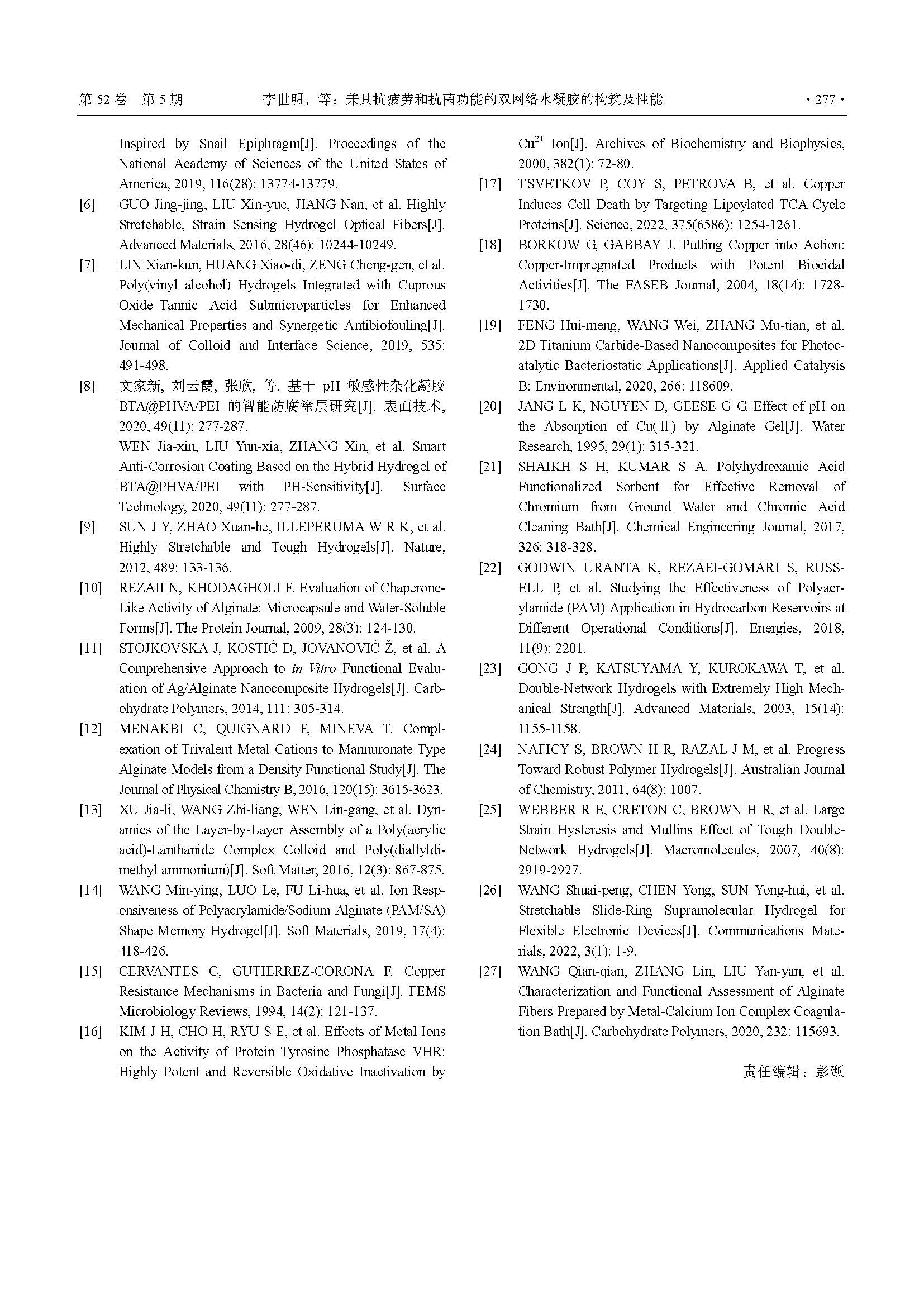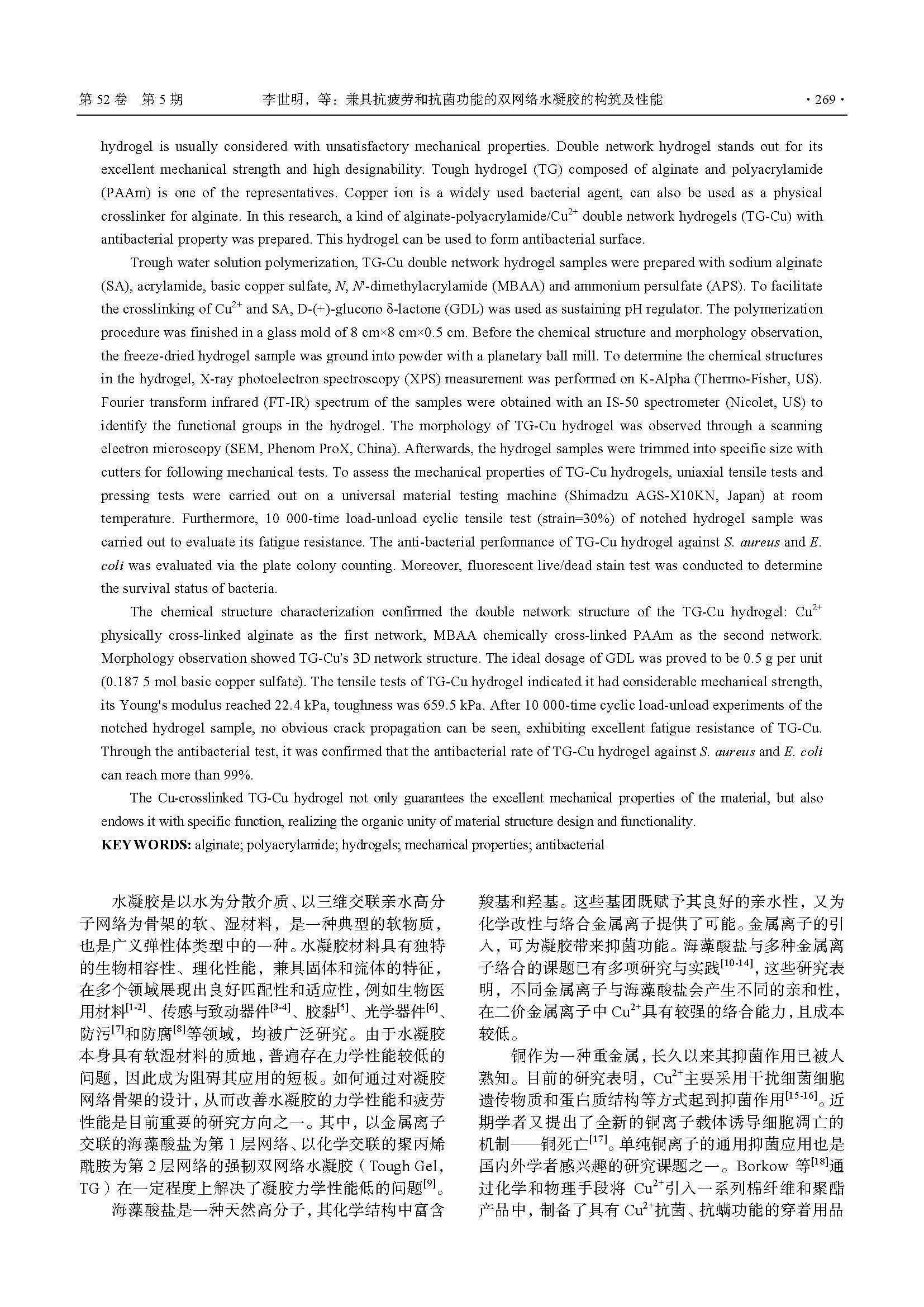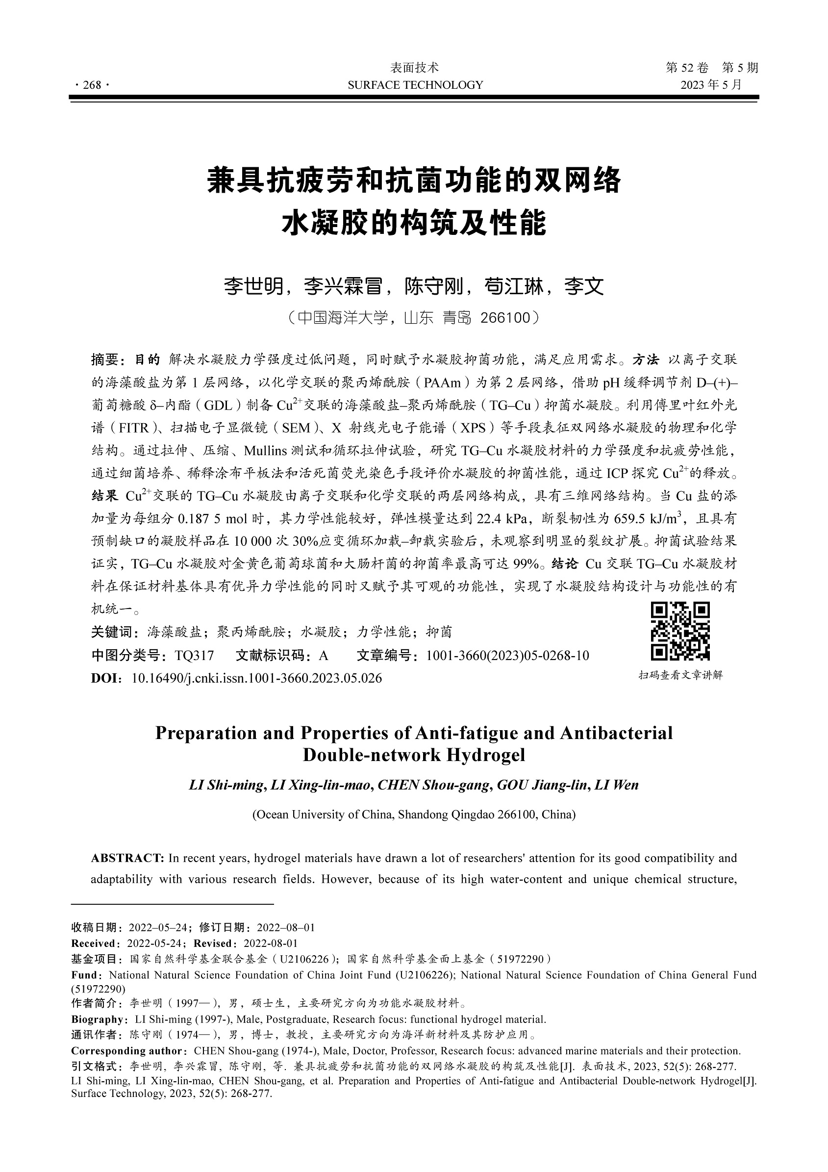 兼具抗疲劳和抗菌功能的双网络水凝胶的构筑及性能