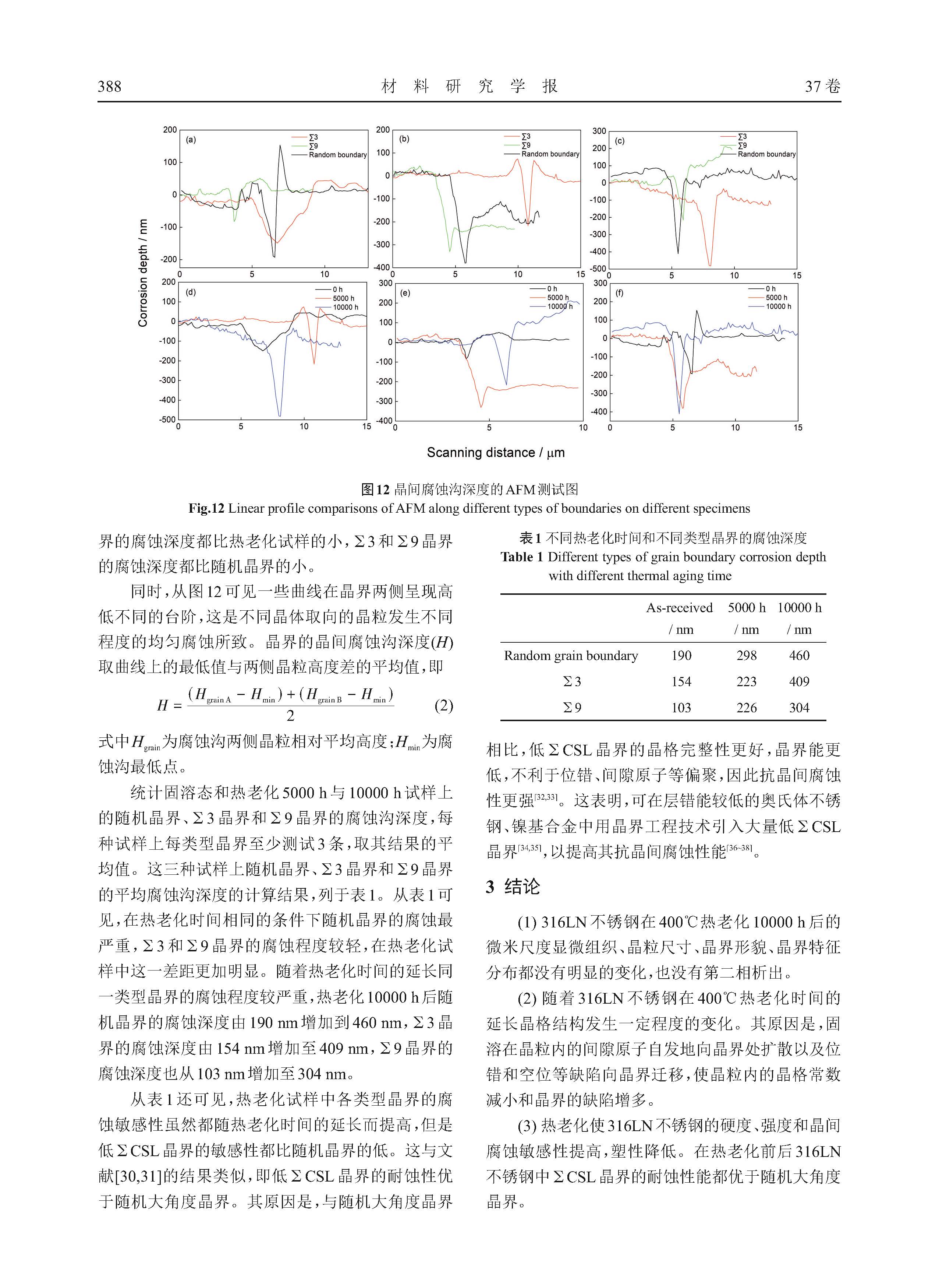 热老化对316LN力学性能和晶间腐蚀敏感性的影响