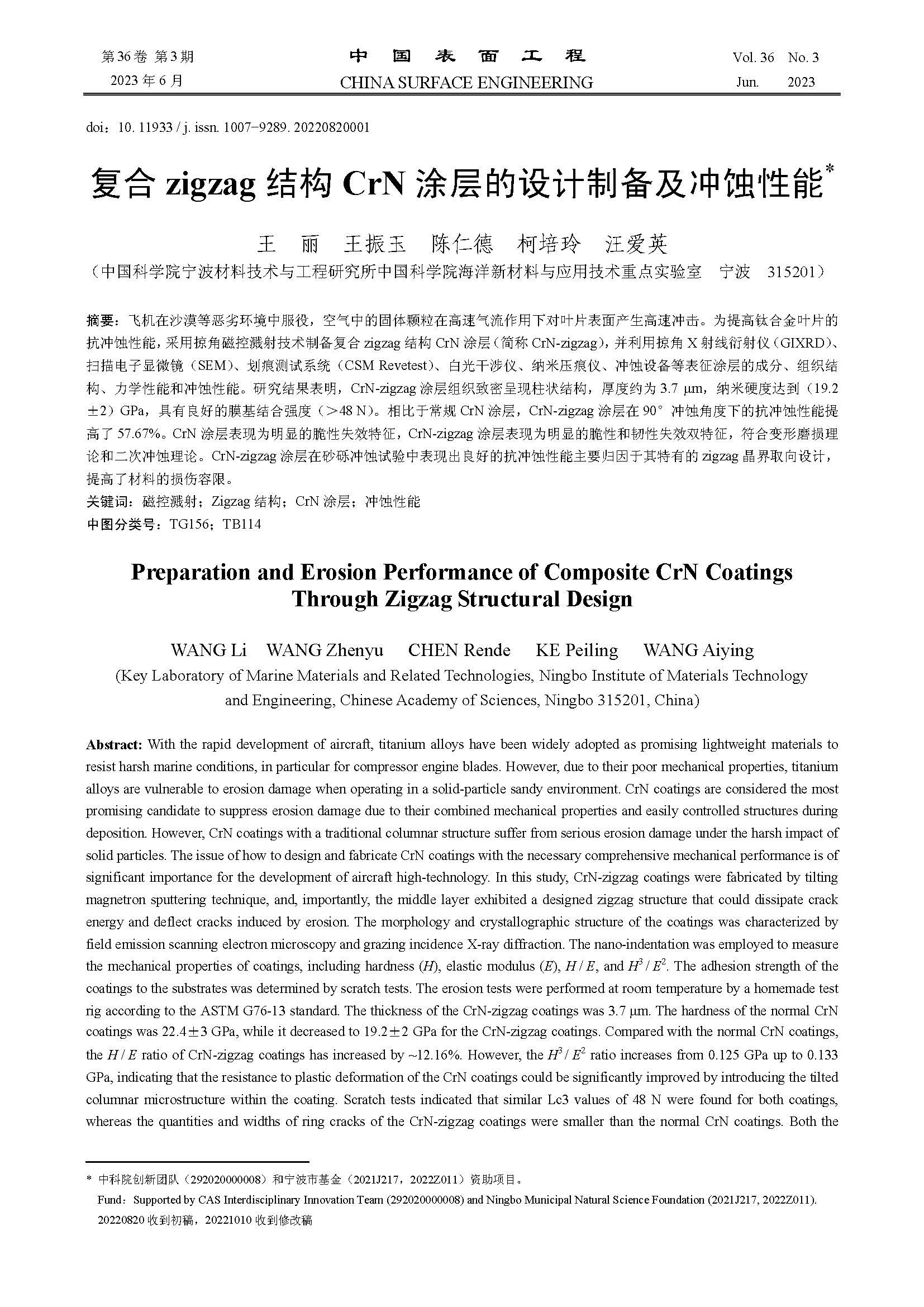 复合 zigzag 结构 CrN 涂层的设计制备及冲蚀性能