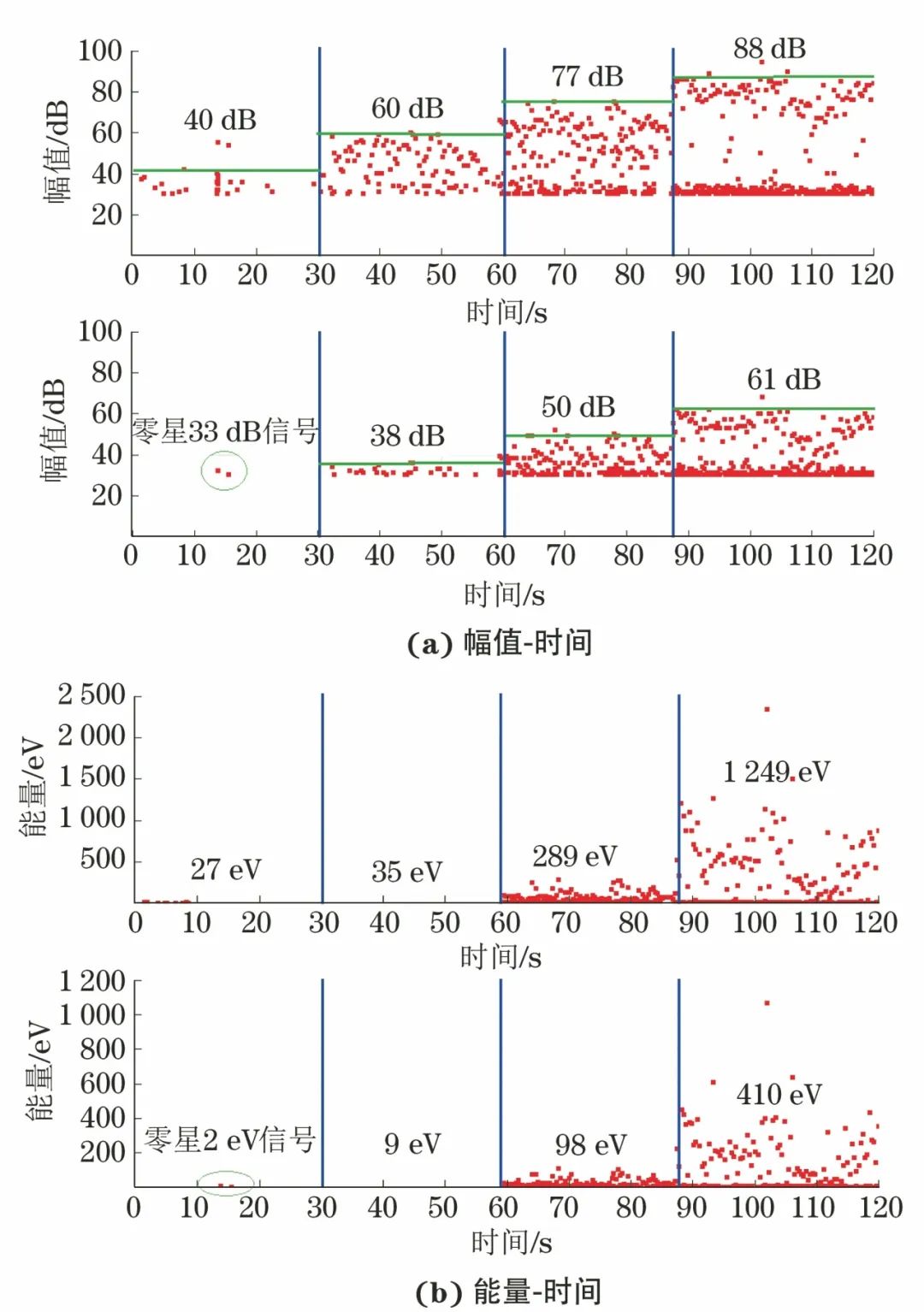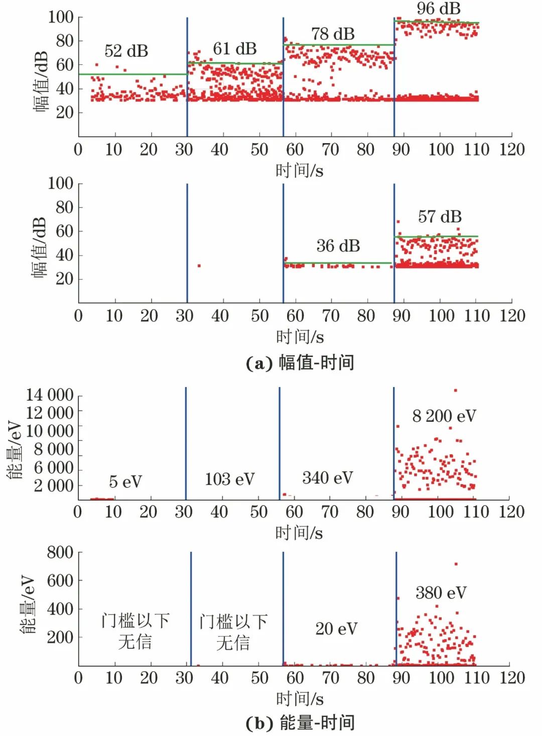图3 右侧断铅1号传感器和3号传感器幅值及能量变化