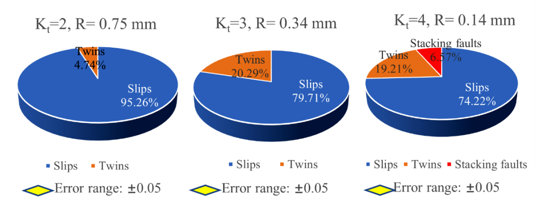 贵州大学黄朝文教授课题组前期研究发现,除显微组织外,应力或应变参数的改变,也显著影响钛合金的高周(Int. J. Fatigue., 2017,94:30-40.; J. Alloy. Compd., 2017,695:1966-1975; Mater. Sci. Eng. A, 2017,682:107-116.)和低周拉压疲劳(Mater. Sci. Eng. A, 2021,803:140505.; Int. J. Fatigue, 2022,156:106678.)的循环变形、裂纹萌生机制及疲劳寿命。但组织和缺口参数对钛合金高周疲劳损伤的协同影响机制尚不明晰。另外,片层组织是钛合金的典型服役组织,具有类似片状马氏体的多层次特征,依据尺寸从大到小依次可划分为:第一层次(原始β晶粒);第二层次(原始β晶粒内的α集束);第三层次(α集束内平行排列的α片)。不同层次组织对合金的强塑性、韧性有显著影响(Mater. Des., 2019, 180, 107898; Mater. Sci. Eng. A, 2019, 740-741, 121-129; J. Mater. Sci., 2021, 56, 8848-8870),但其对疲劳损伤影响机制也尚不清楚。因此,结合钛合金多层次片层组织特征和实际构件含缺口(如轴肩、键槽等)的现象,本文设计了R= 0.75、0.34 和0.14 mm三种不同缺口根部半径试样;系统研究了不同组织层次和不同缺口根部半径对Ti-55531合金高周疲劳损伤微观机制的协同影响规律;阐明了显著影响缺口根部循环塑性变形的关键组织单元和相关的循环变形机制等。此外,采用ANSYS有限元方法,模拟研究了缺口根部应力和应变分布,进一步验证了疲劳实验分析的准确性(图1)。主要结论如下: