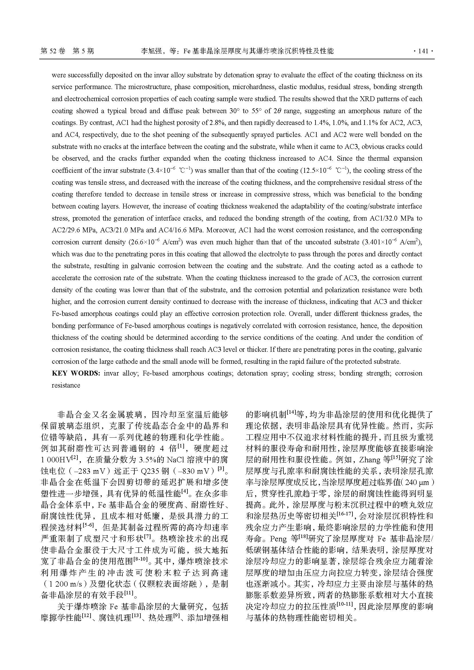 Fe 基非晶涂层厚度与其爆炸喷涂沉积特性及性能