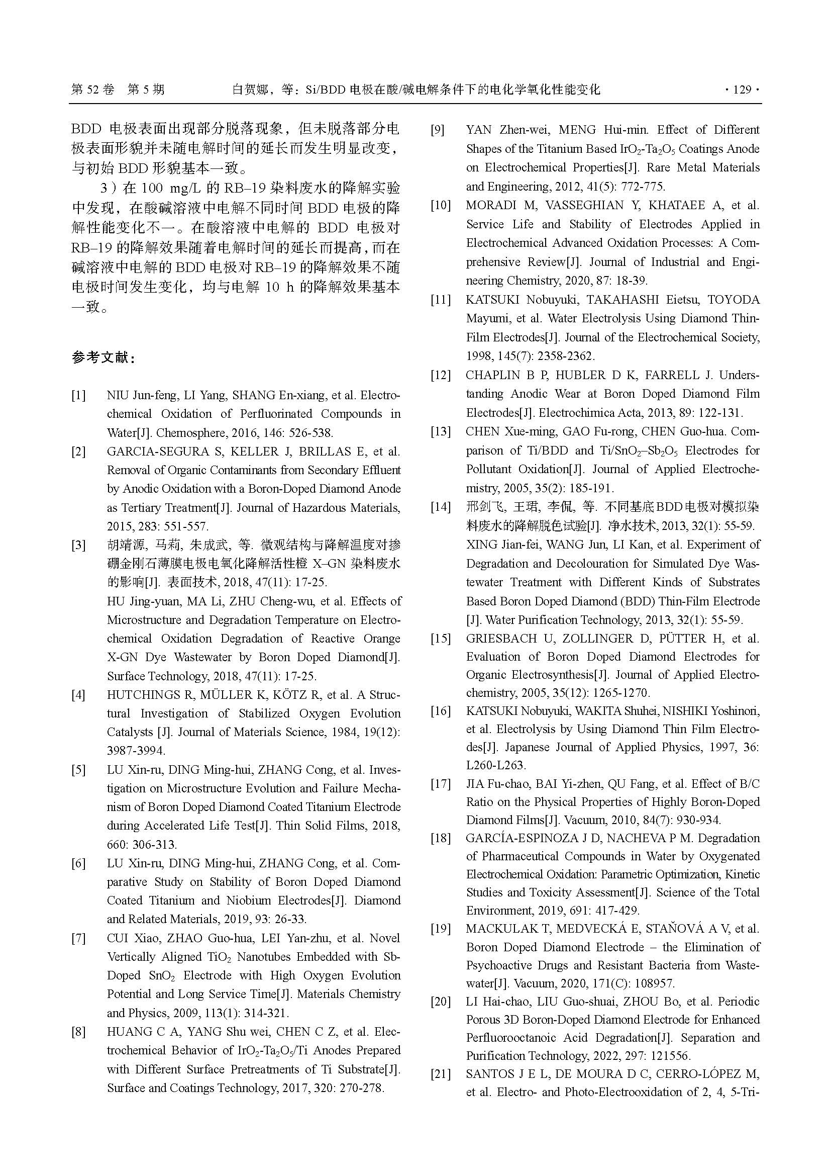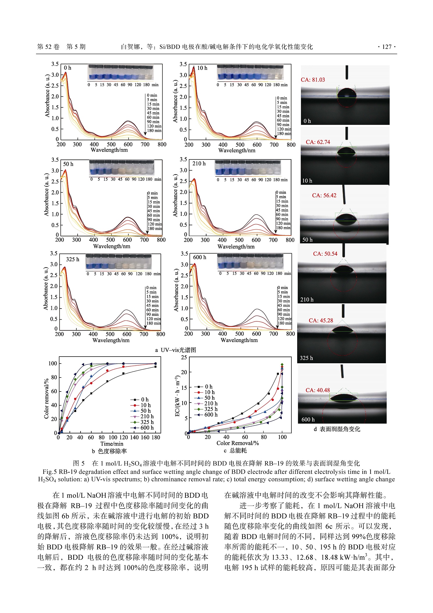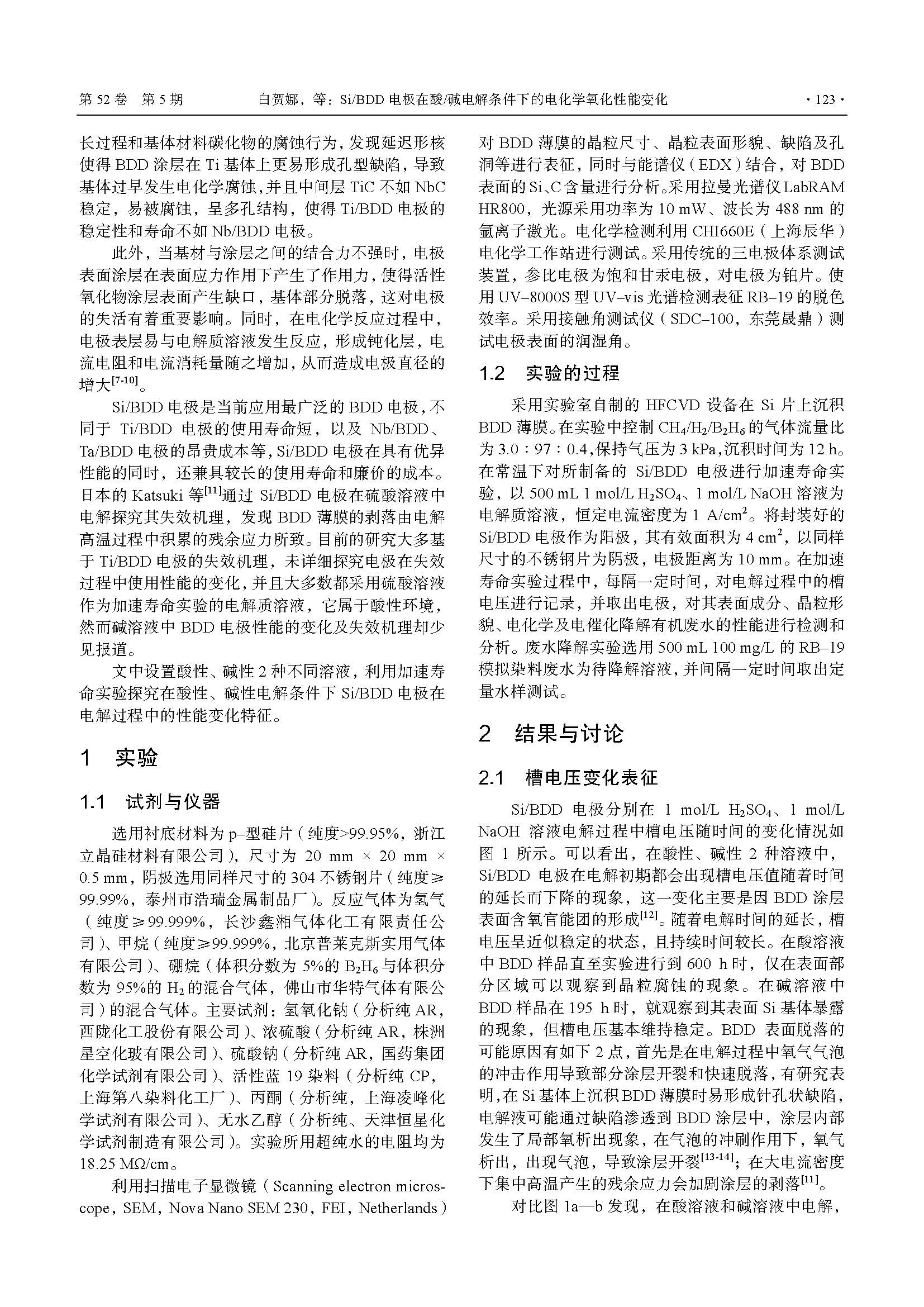 Si/BDD 电极在酸/碱电解条件下的电化学氧化性能变化
