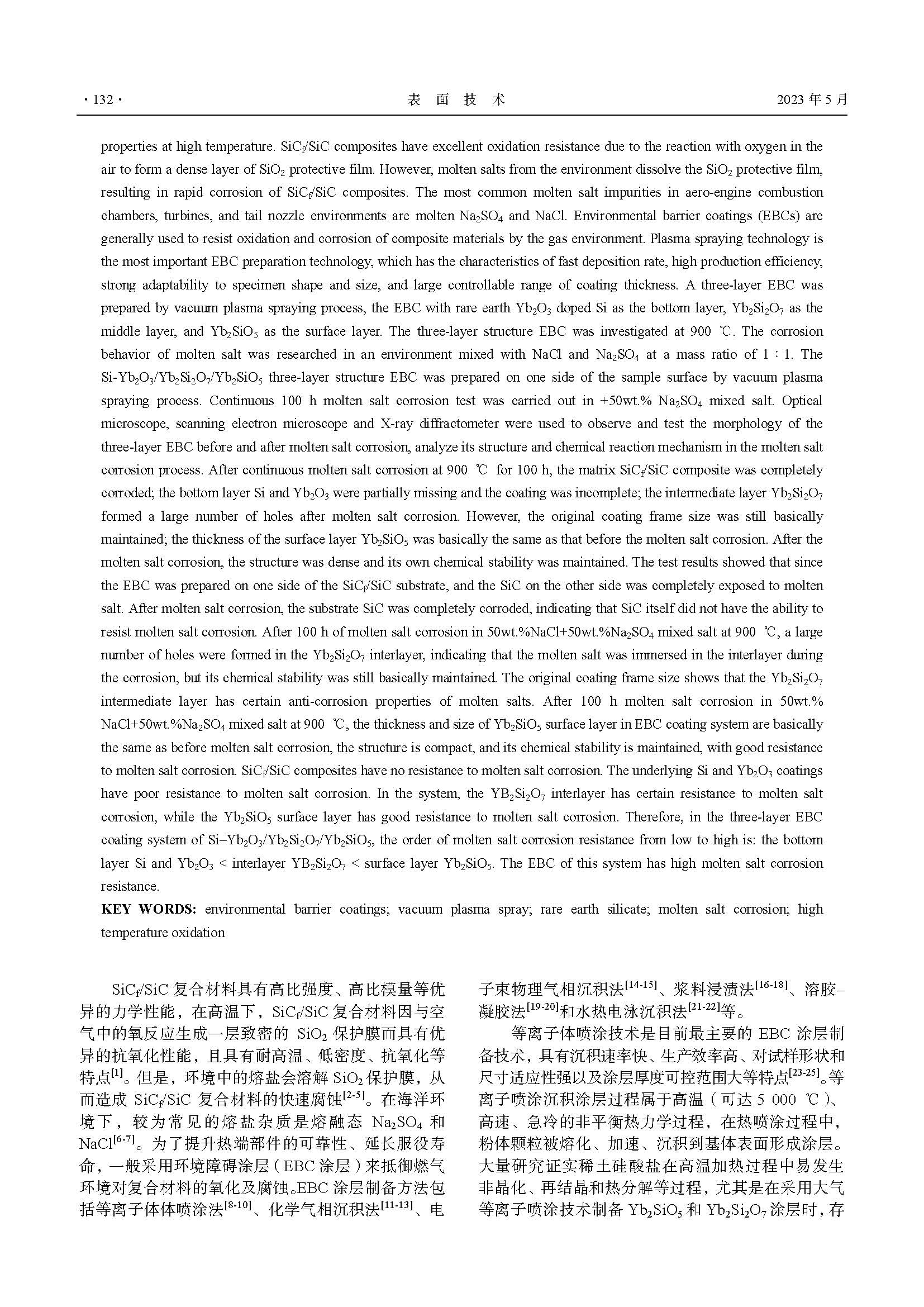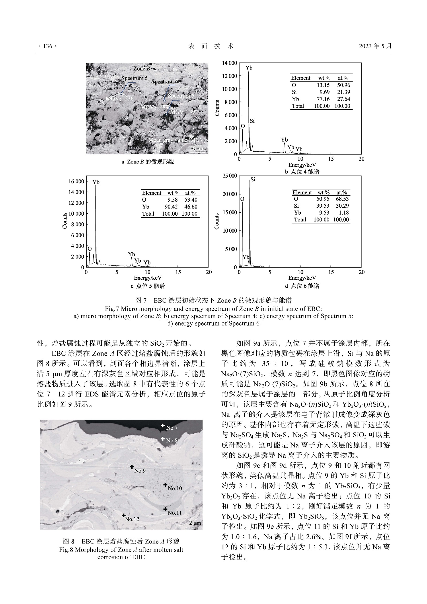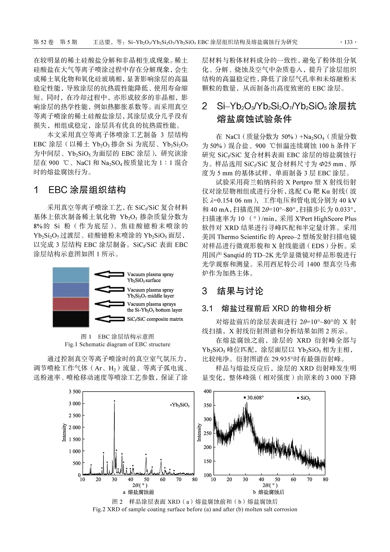Si–Yb2O3/Yb2Si2O7/Yb2SiO5 EBC涂层组织结构及熔盐腐蚀行为研究