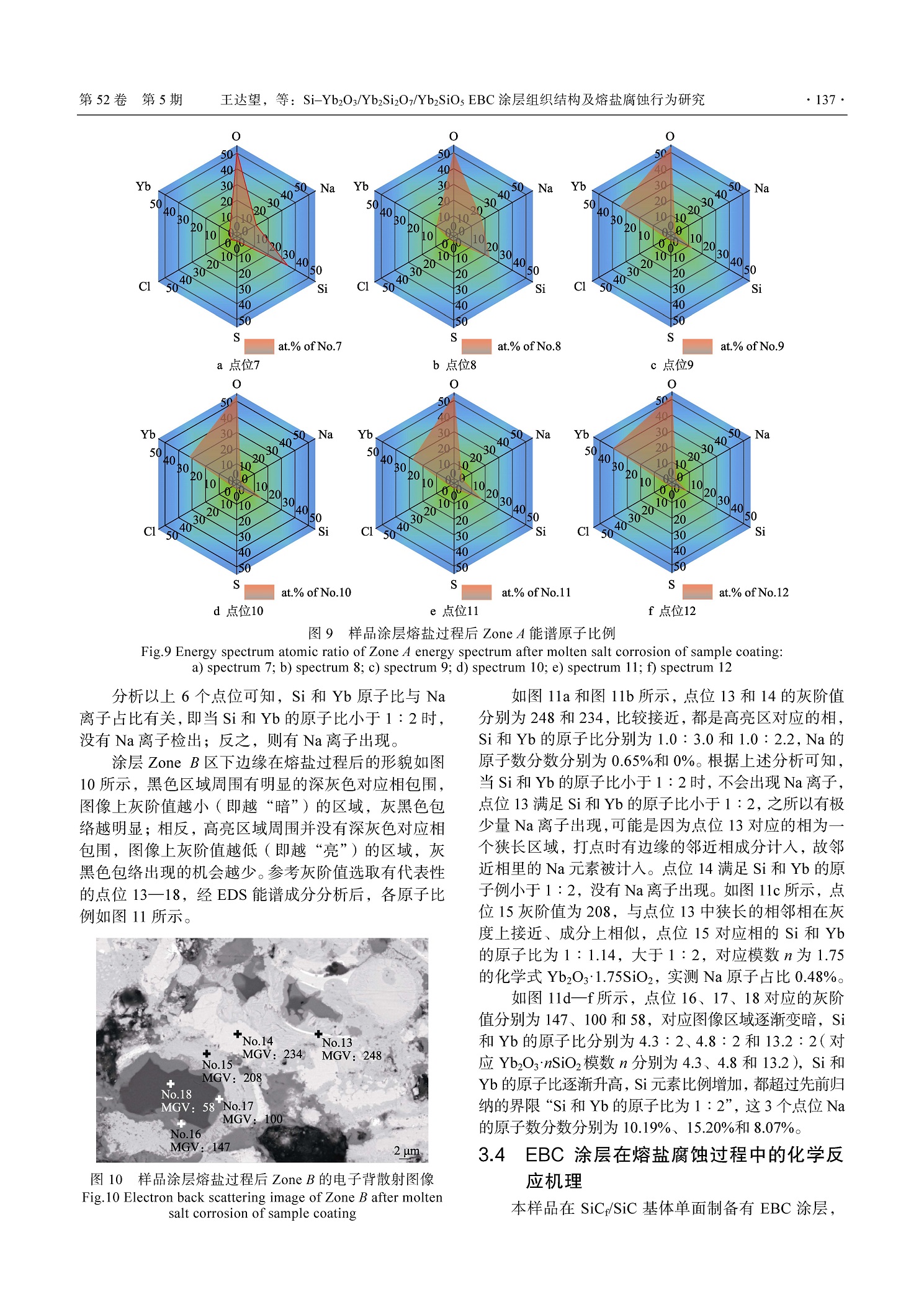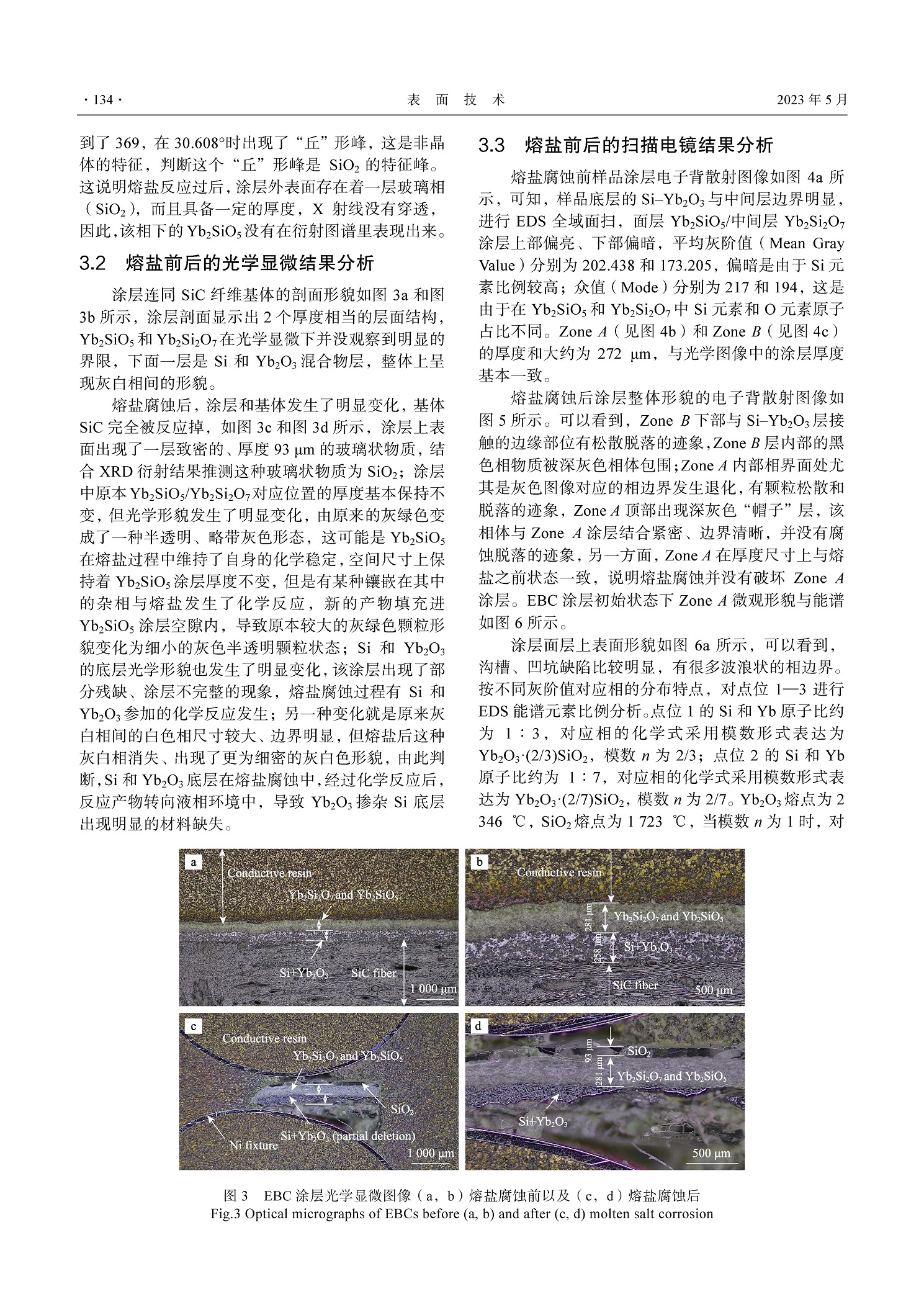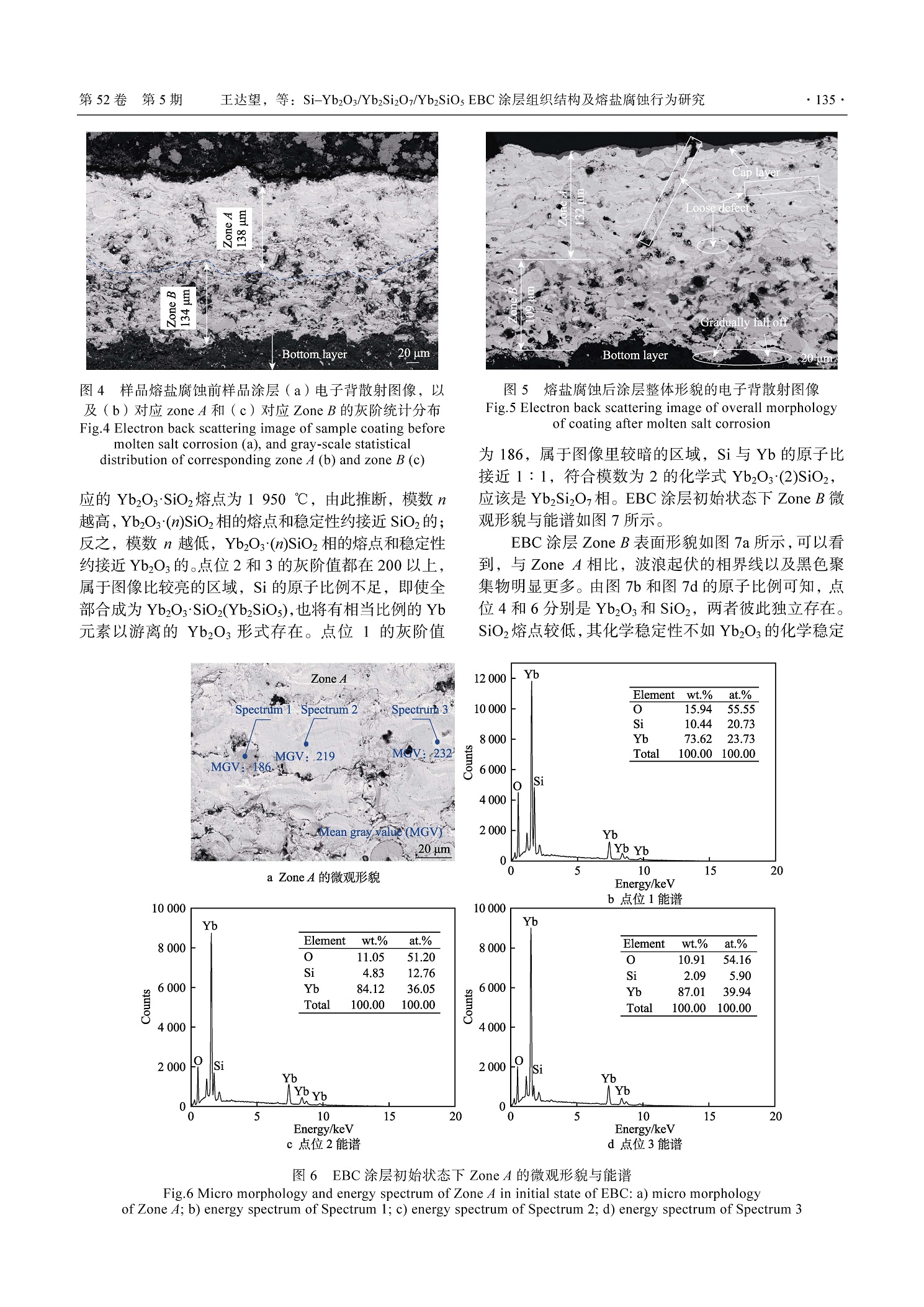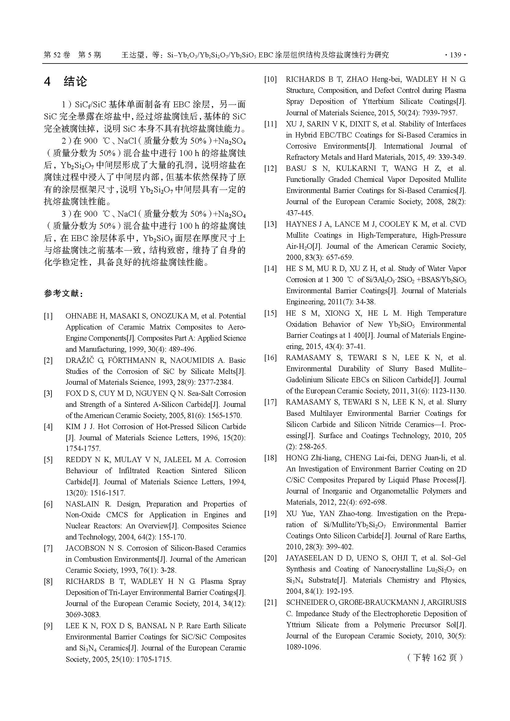 Si–Yb2O3/Yb2Si2O7/Yb2SiO5 EBC涂层组织结构及熔盐腐蚀行为研究