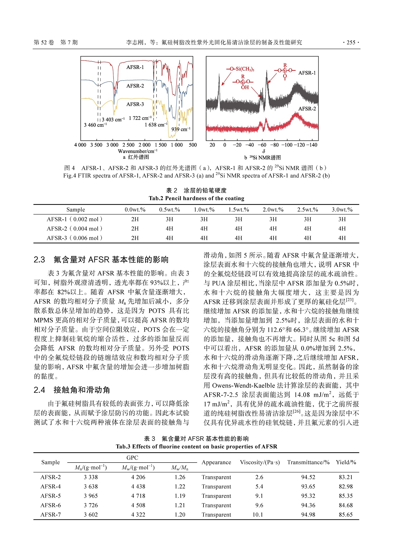氟硅树脂改性紫外光固化易清洁涂层的制备及性能研究