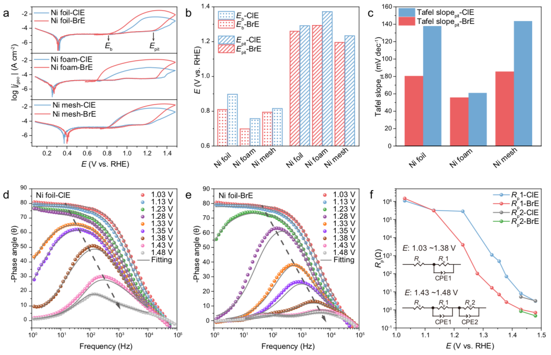 这项工作清楚地指出,除了抗Cl−腐蚀之外,设计抗Br−腐蚀阳极对于海水电解的未来应用更为关键。因为溴化物中的耐腐蚀性比氯化物中的耐腐蚀性差且腐蚀动力学更快。