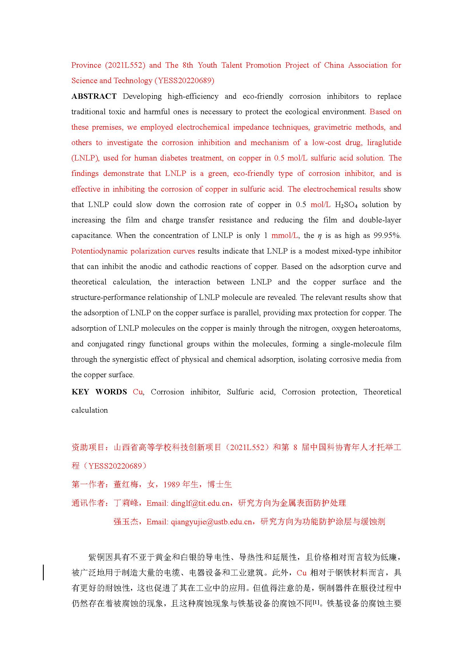 一种环保型缓蚀剂利拉利汀对紫铜在硫酸中的缓蚀机理研究