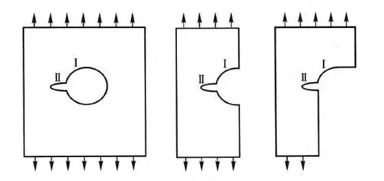 对于塑性材料,并承受静态载荷时,细小的几何缺陷、划痕、小圆角等不需要过于担心,设计者通常忽略应力集中系数的影响。因为此时应力超过材料比例极限并不会导致裂纹产生。反而,由于屈服和应变强化的影响,材料还有进一步承载的能力。但在动载荷或交变载荷作用下,应力集中部位是疲劳裂纹的重要发源地,降低构件的疲劳寿命。