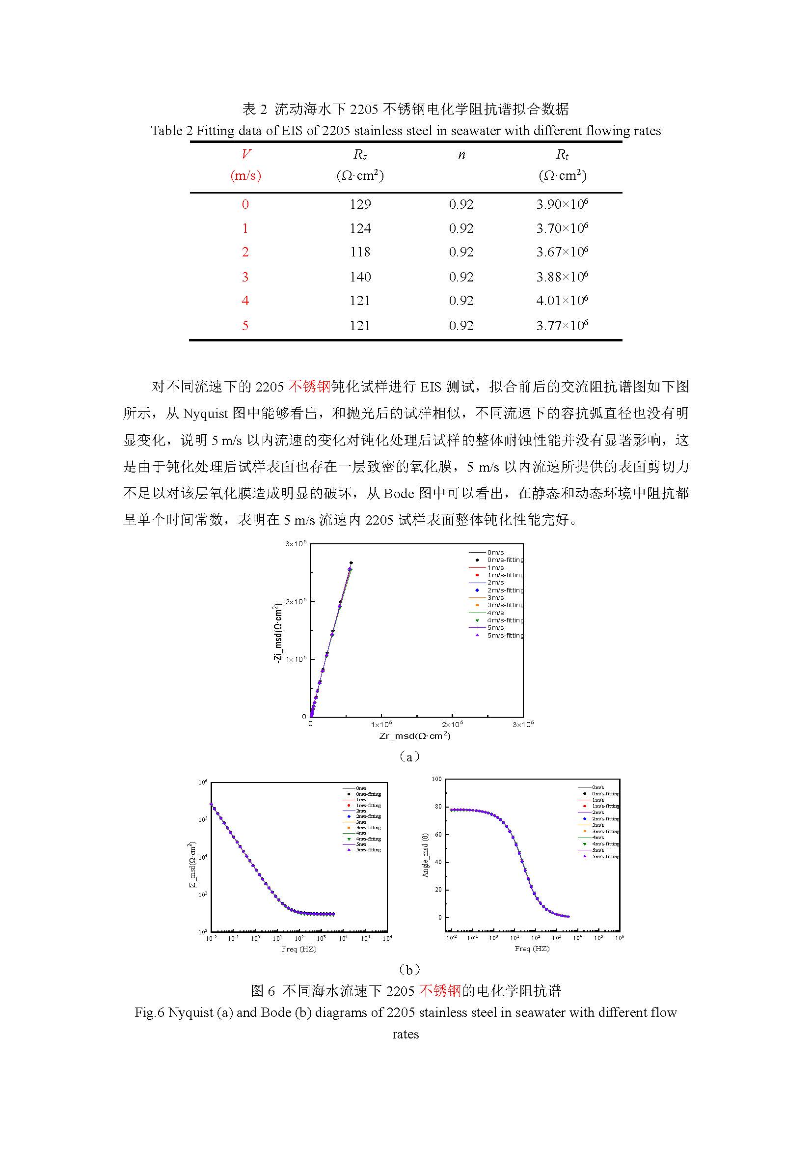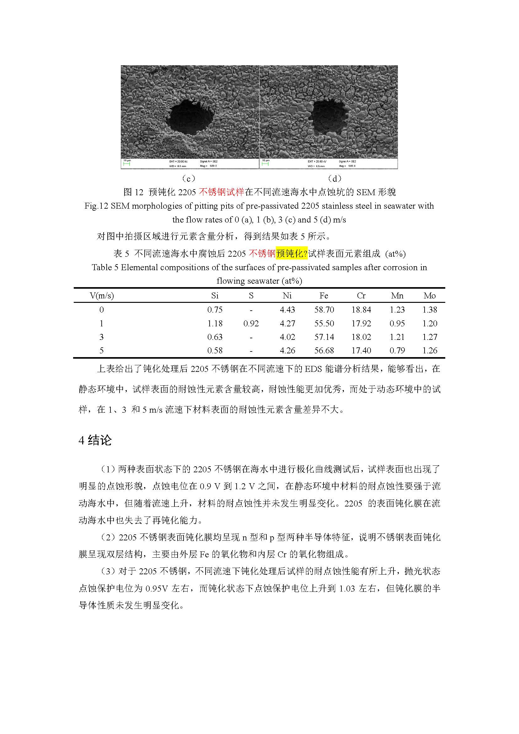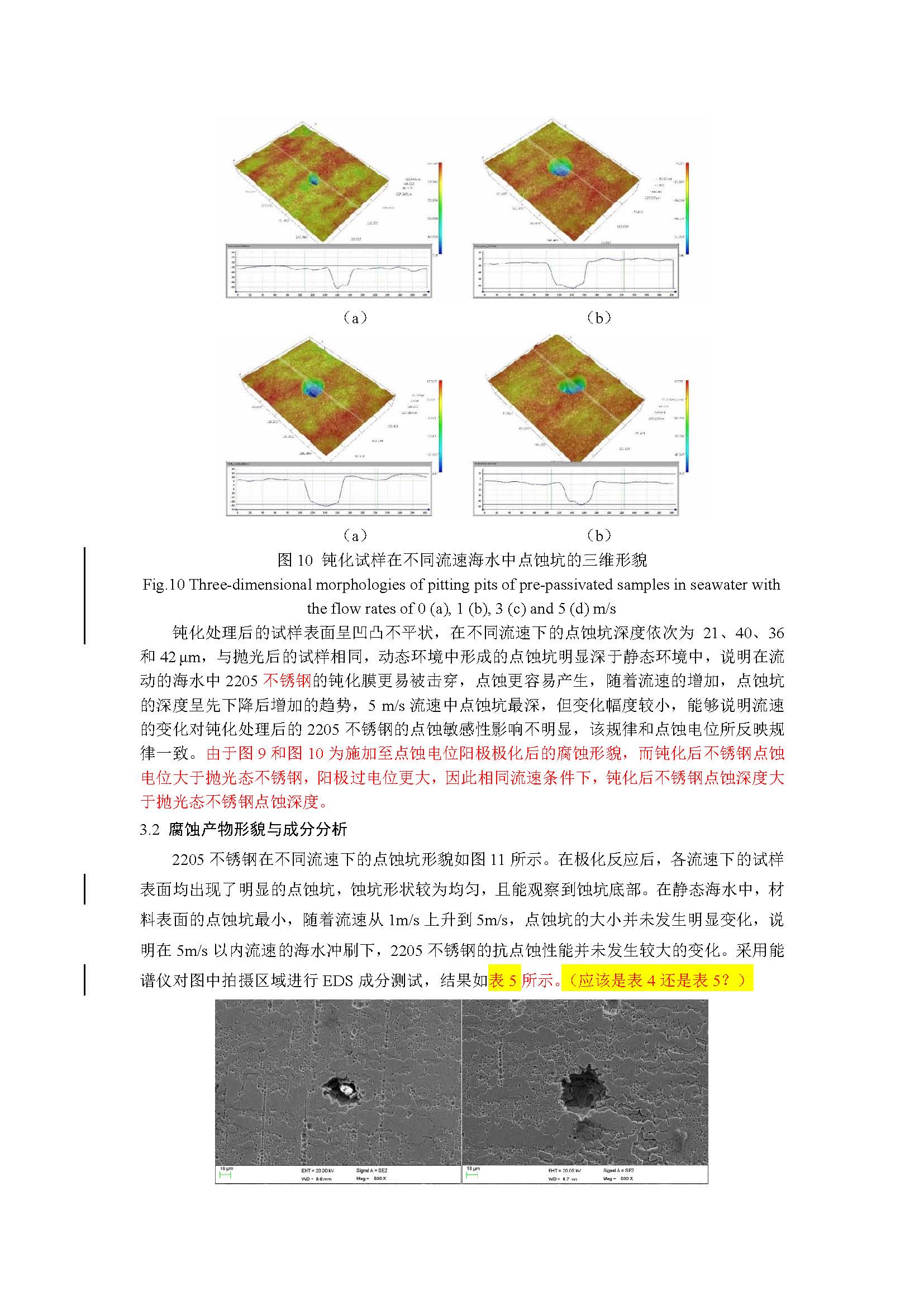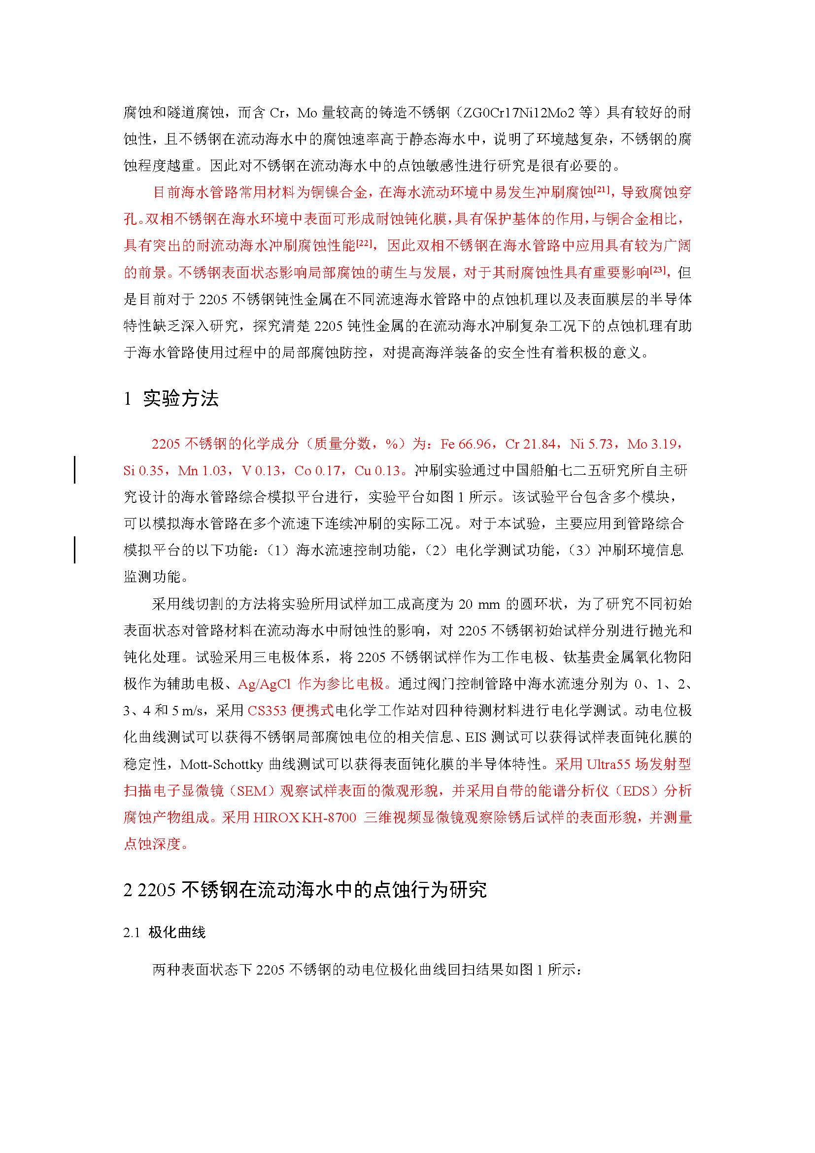 海水冲刷流速对不同表面处理2205不锈钢点蚀的影响