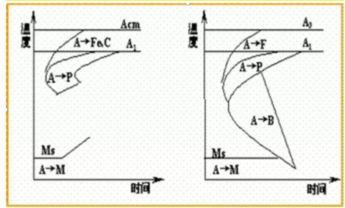图8a 过共析钢CCT曲线 图8b 亚共析钢CCT曲线