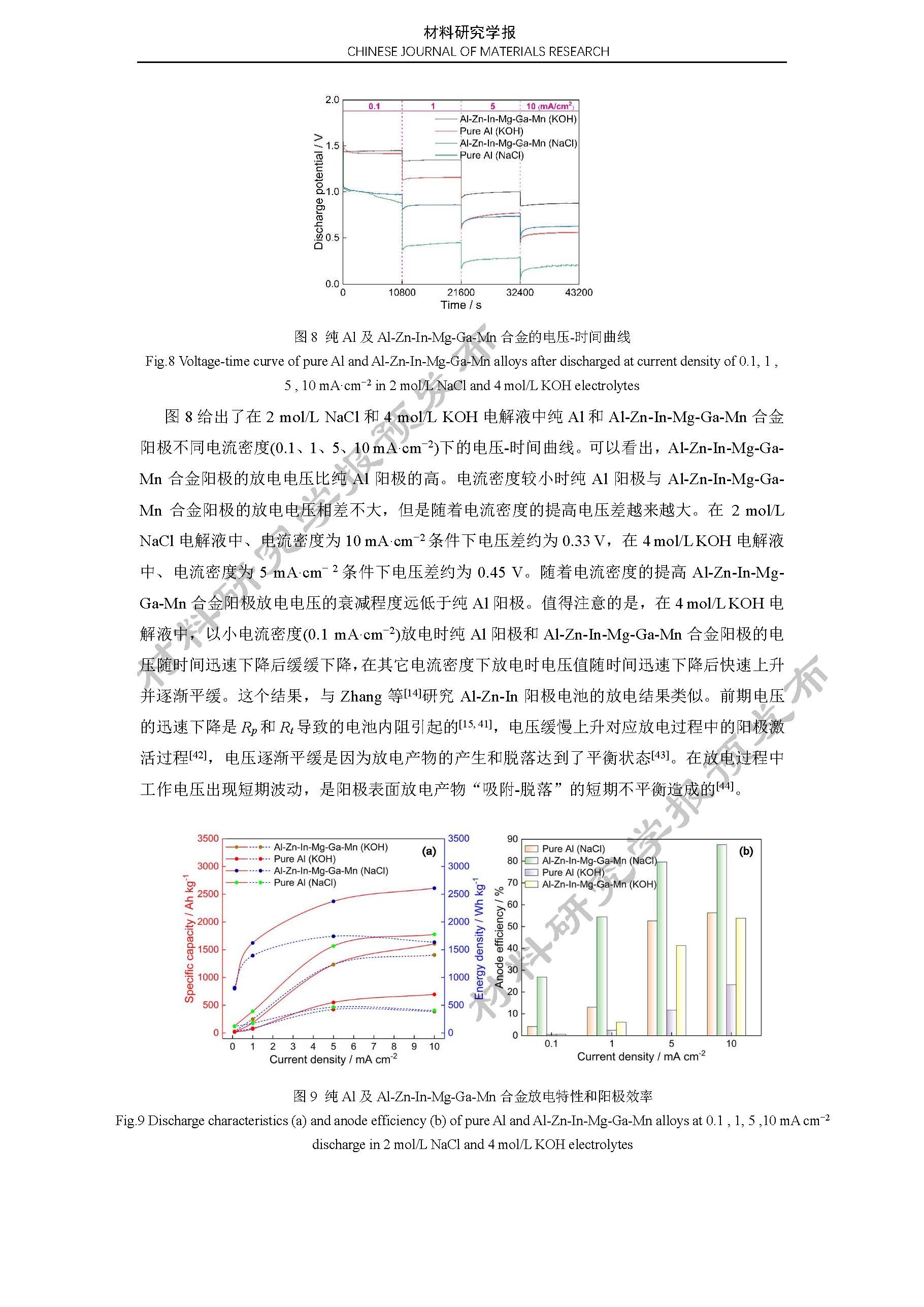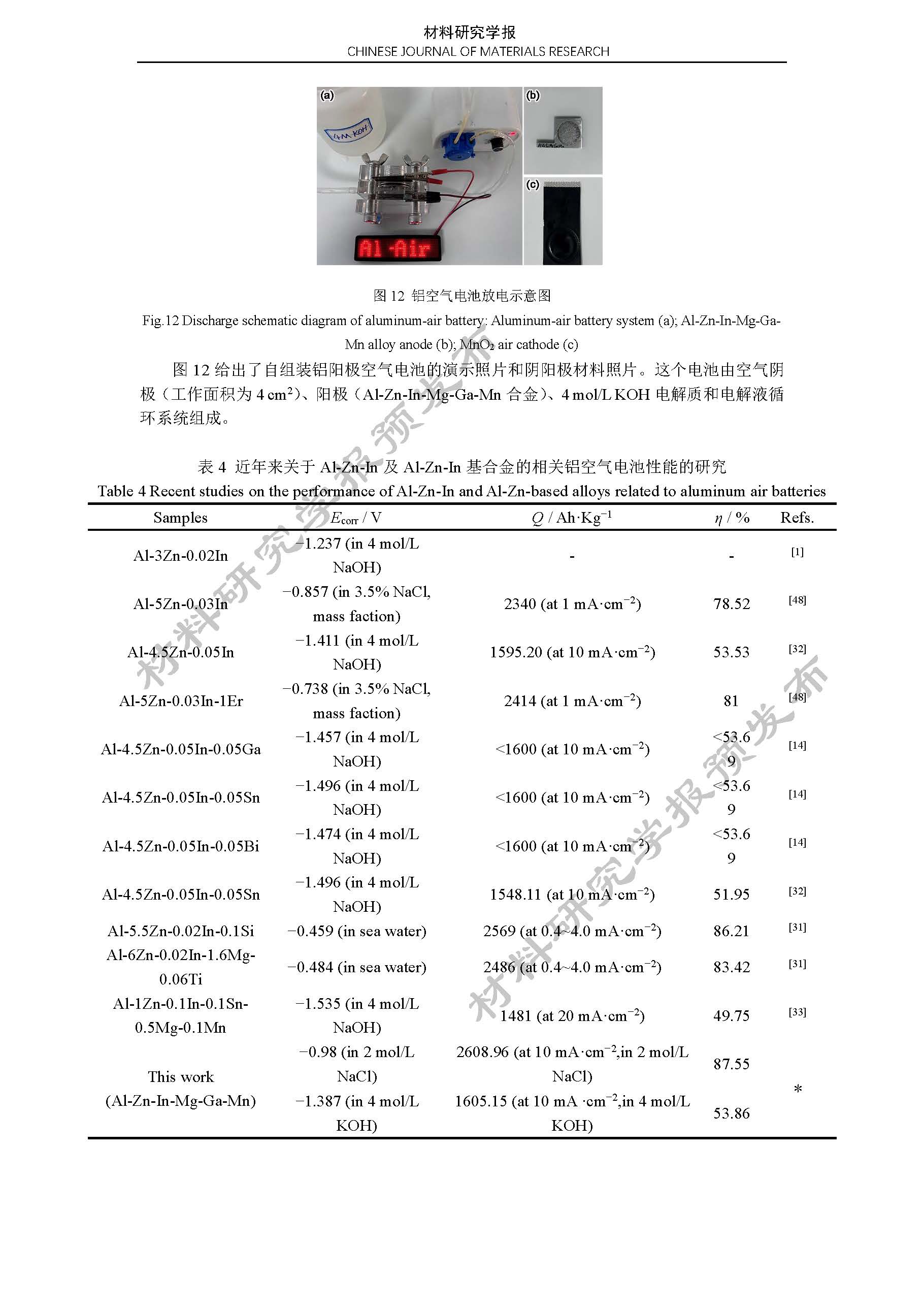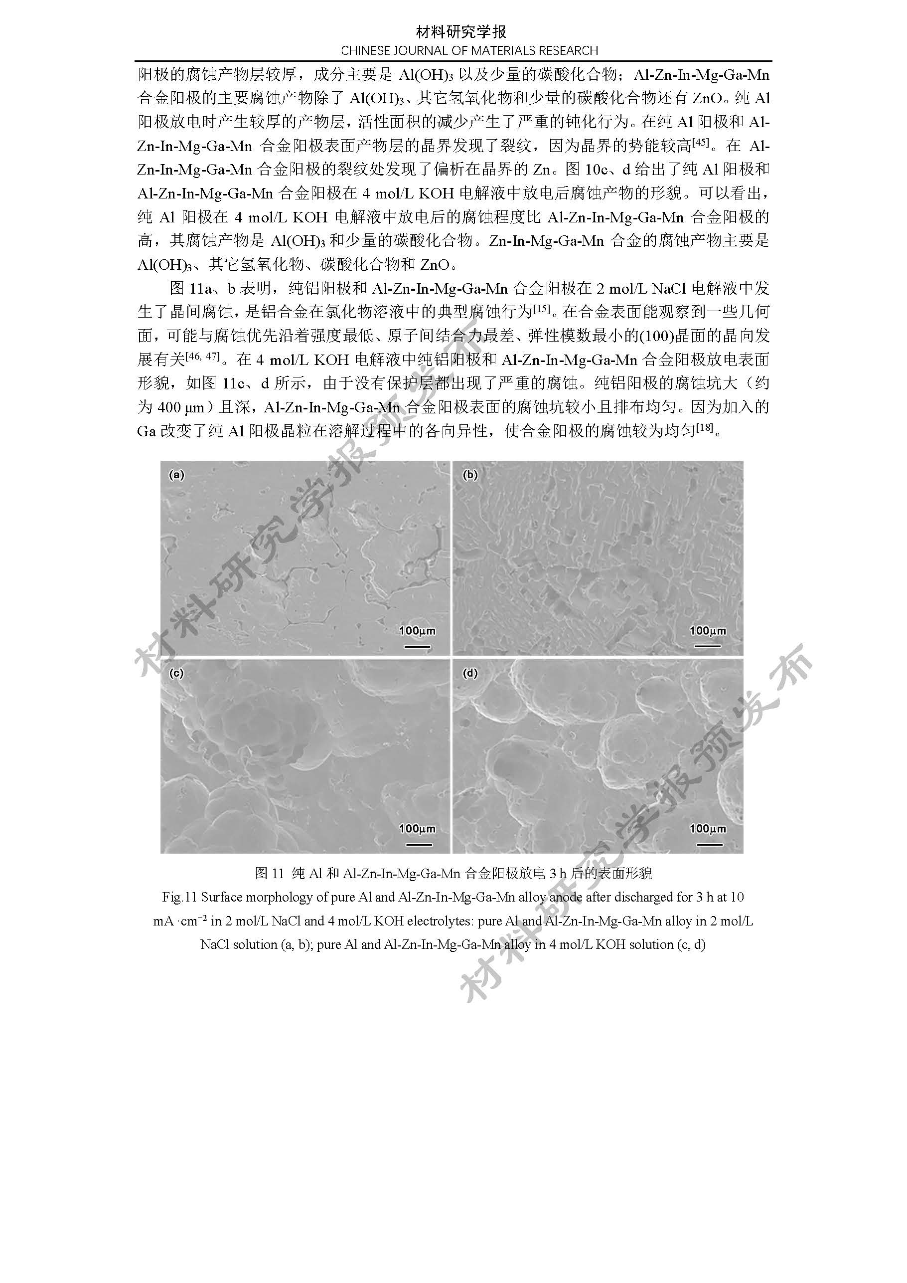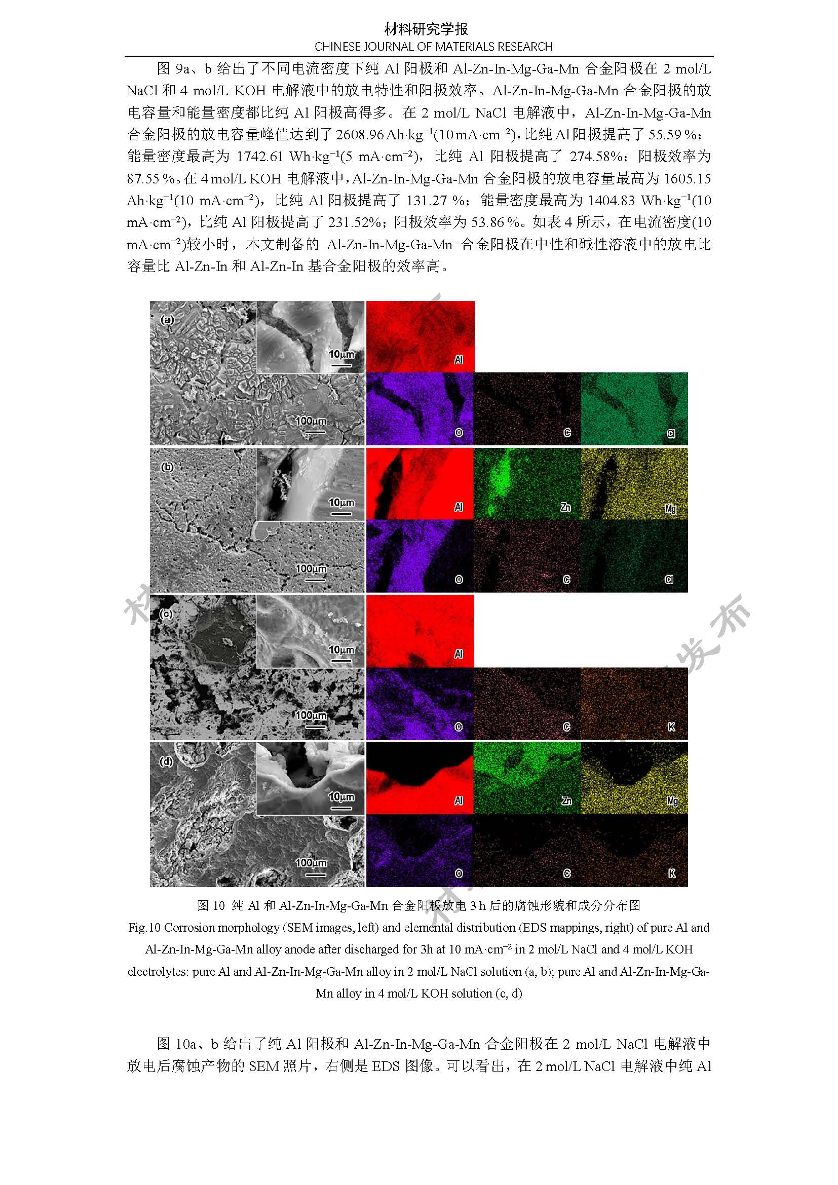 铝空气电池 Al-Zn-In-Mg-Ga-Mn 合金阳极的电化学性能