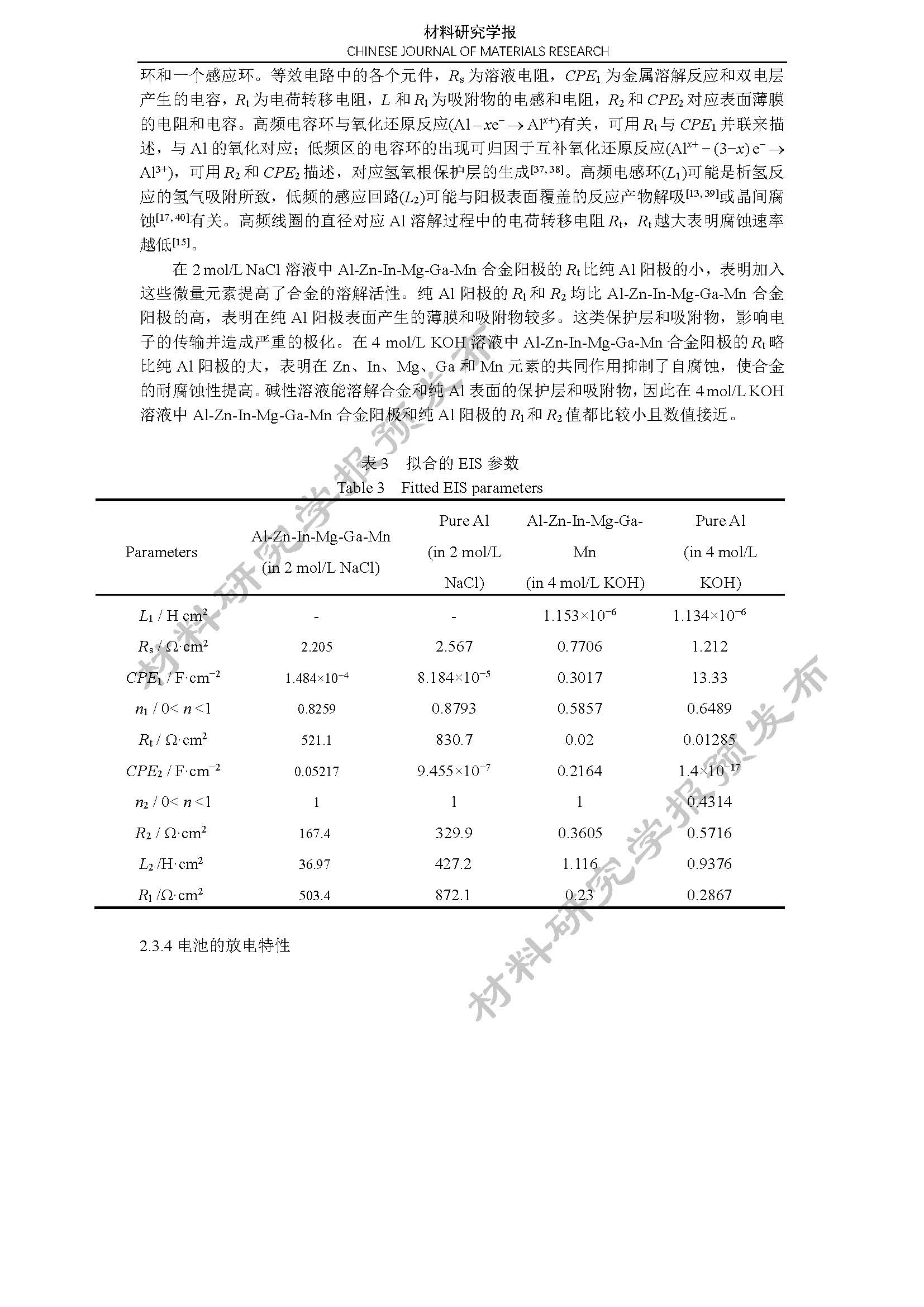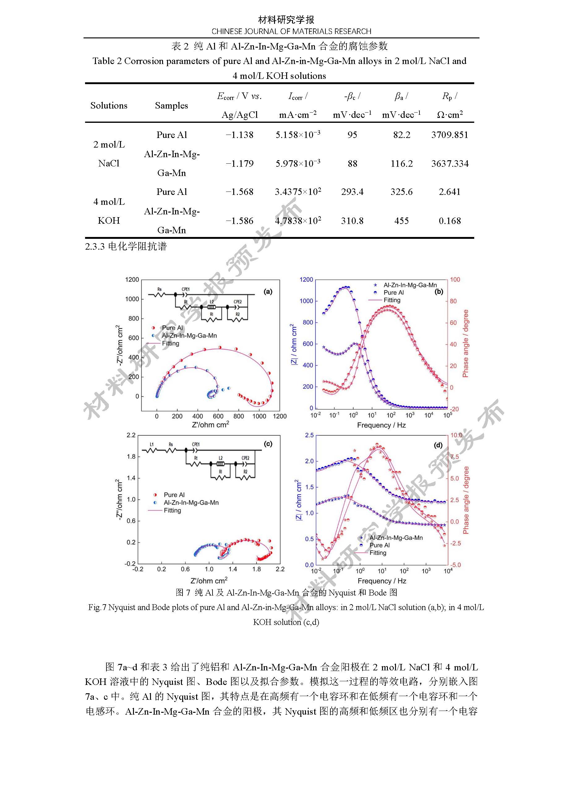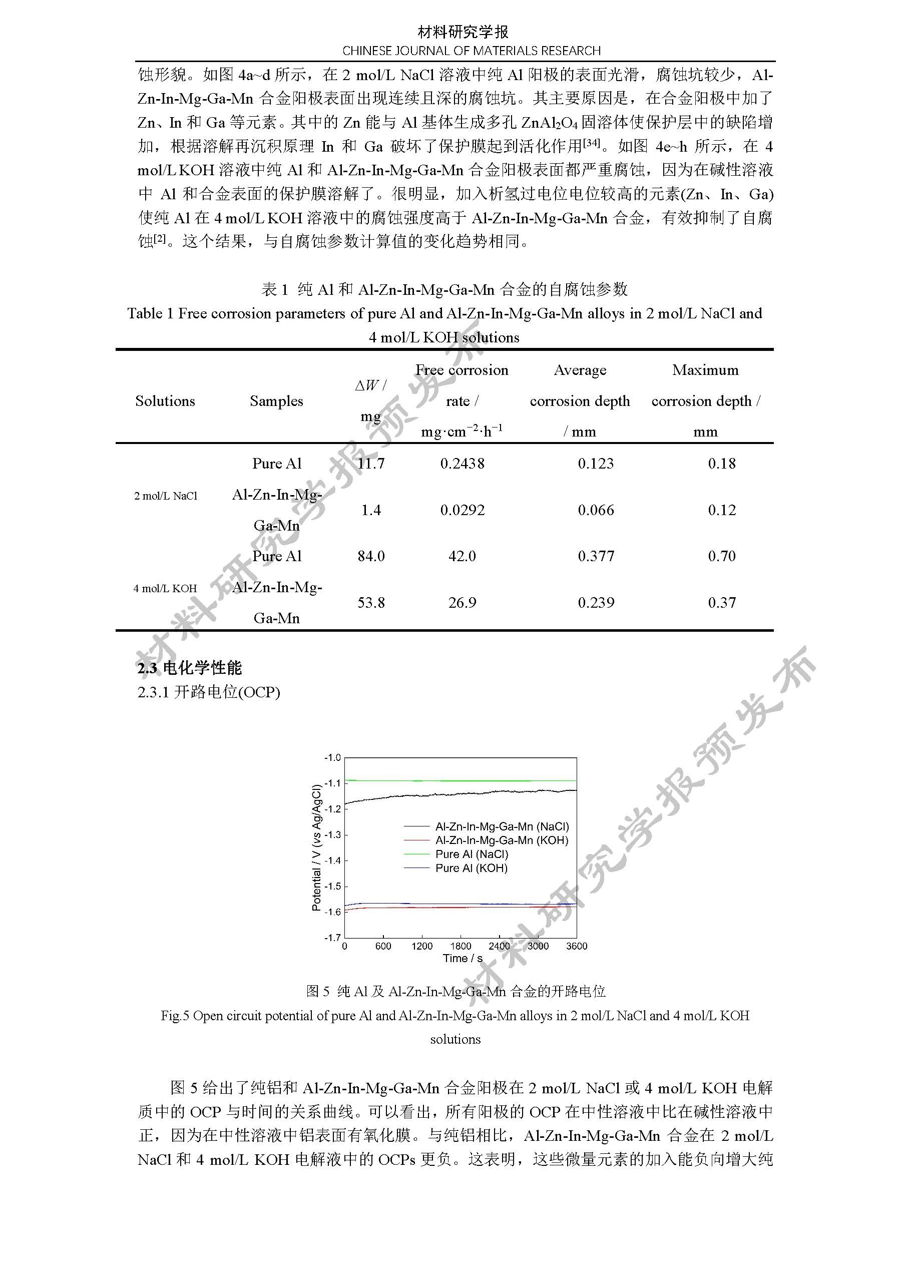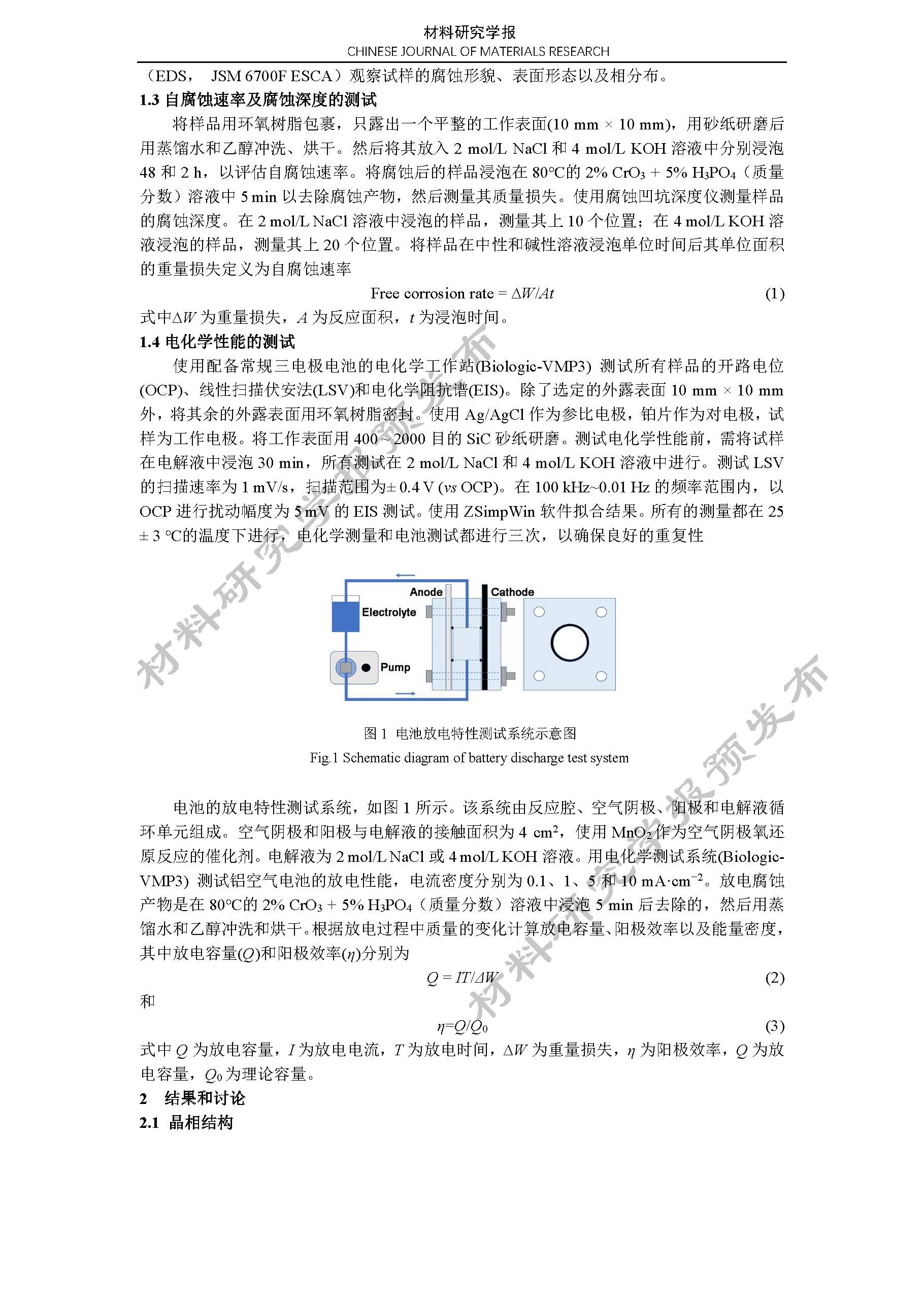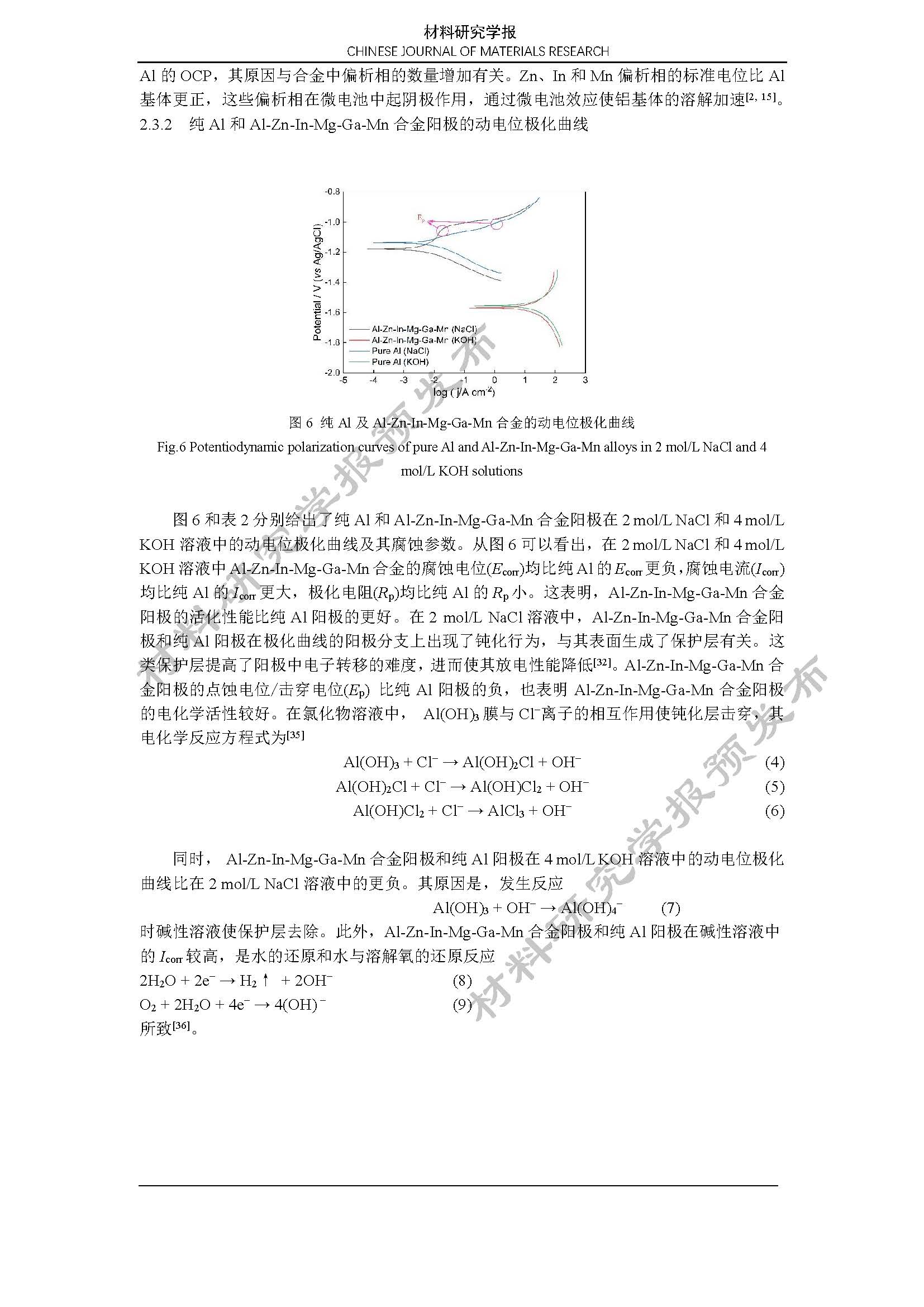 铝空气电池 Al-Zn-In-Mg-Ga-Mn 合金阳极的电化学性能
