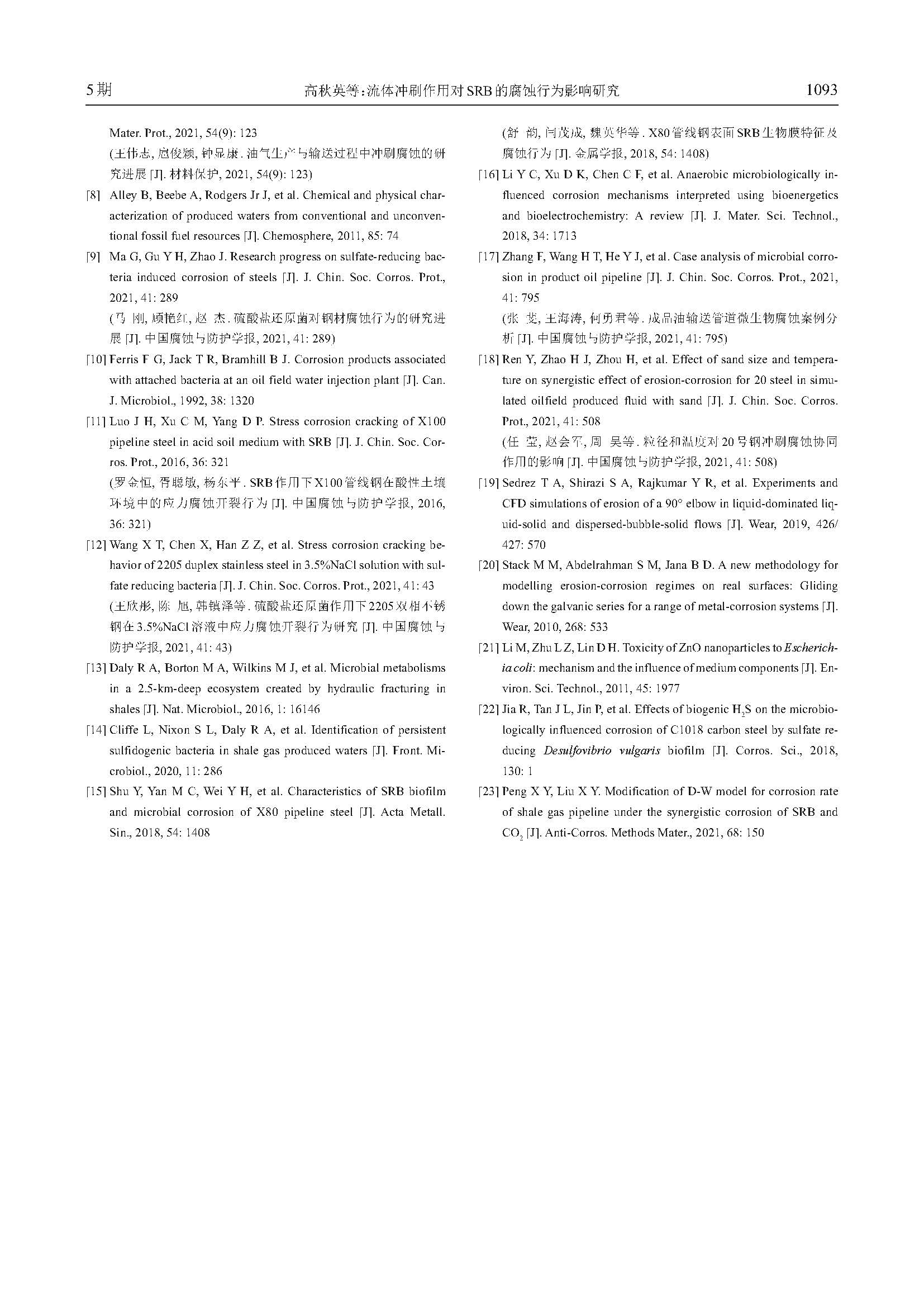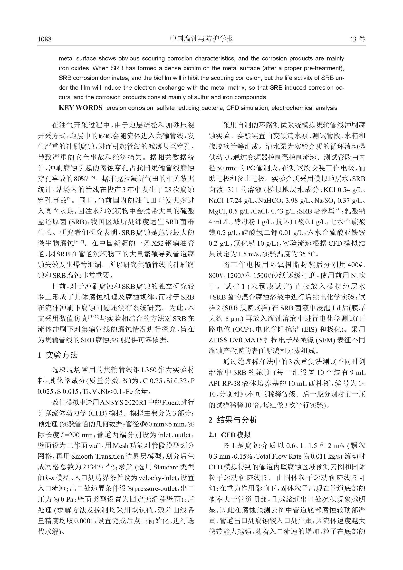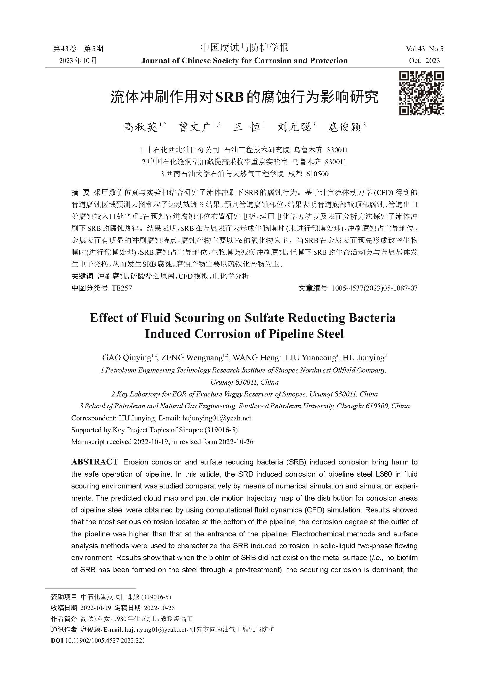 流体冲刷作用对SRB的腐蚀行为影响研究