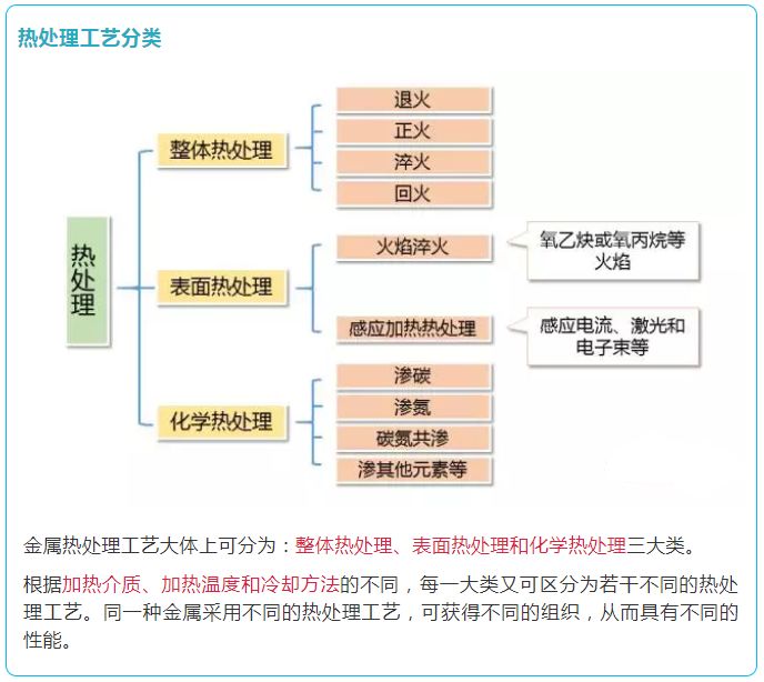 16图详解各种热处理工艺 1.热处理的各阶段及要素 2.热处理工艺分类 3.钢铁热处理工艺:钢铁是机械工业中应用最广的材料,钢铁显微组织复杂,可以通过热处理予以控制,所以钢铁的热处理是金属热处理的主要内容。另外,铝、铜、镁、钛等及其合金也都可以通过热处理改变其力学、物理和化学性能,以获得不同的使用性能。 4.固溶处理 5.深冷处理 6.表面热处理 7.化学热处理:化学热处理是通过改变工件表层化学成分、组织和性能的金属热处理工艺。化学热处理是将工件放在含碳、氮或其它合金元素的介质(气体、液体、固体)中加热,保温较长时间,从而使工件表层渗入碳、氮、硼和铬等元素。