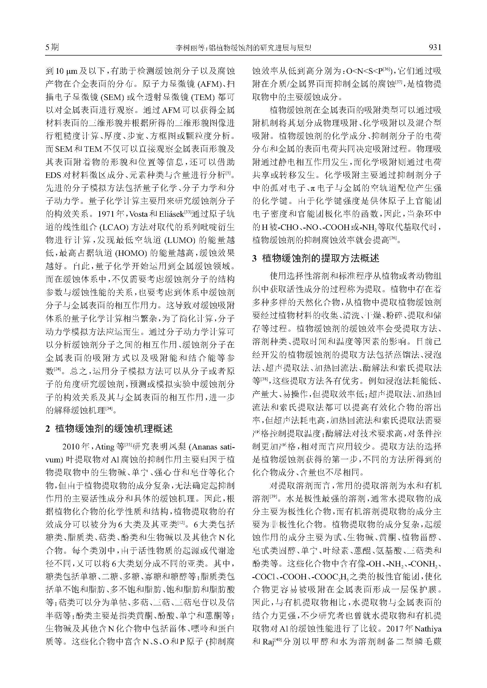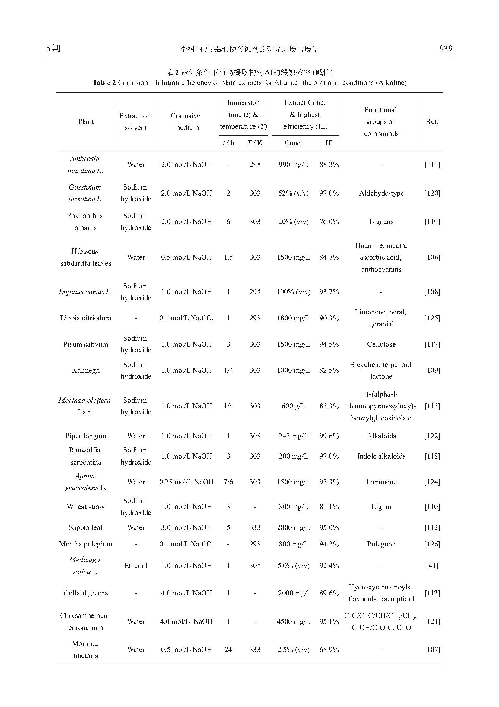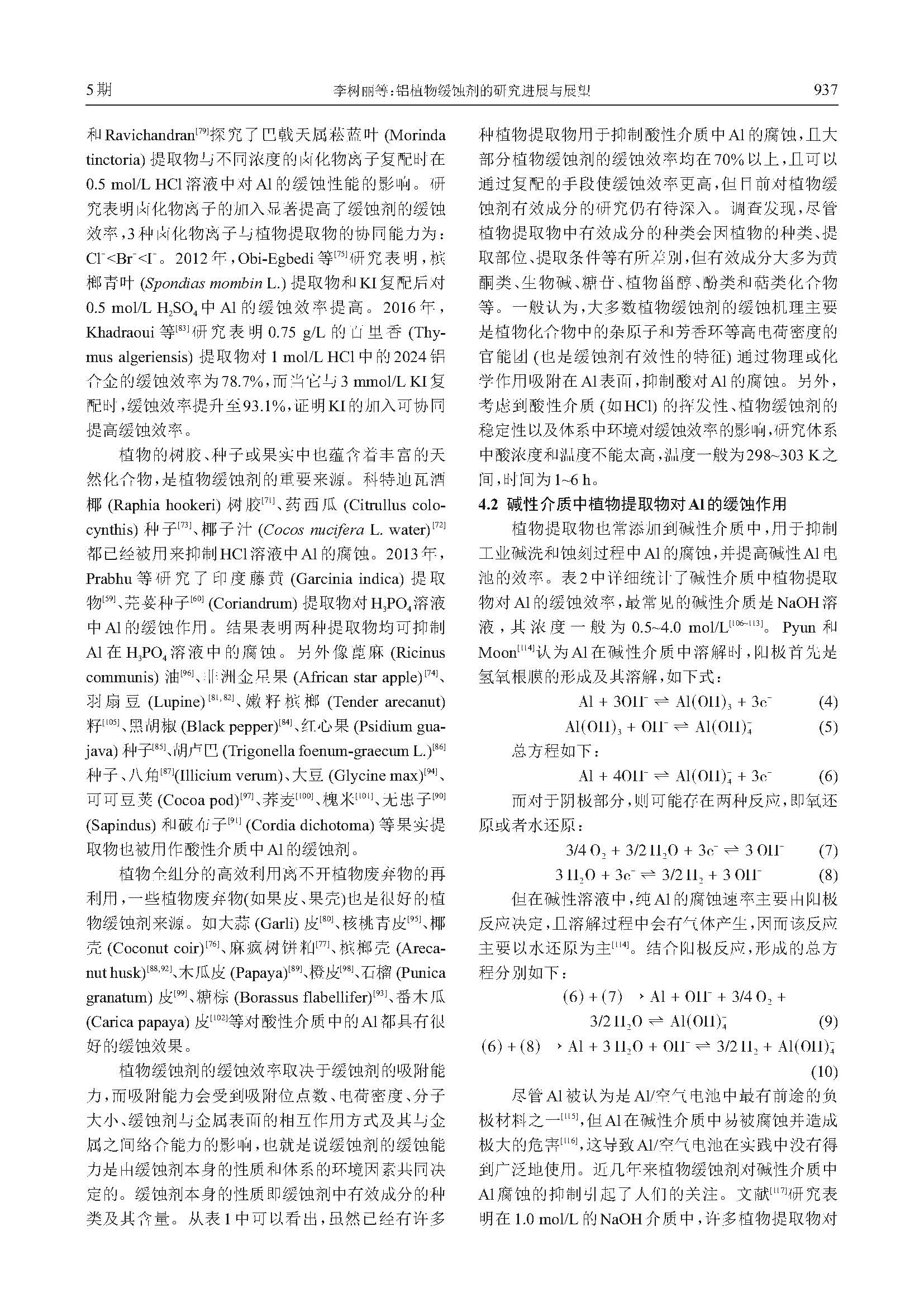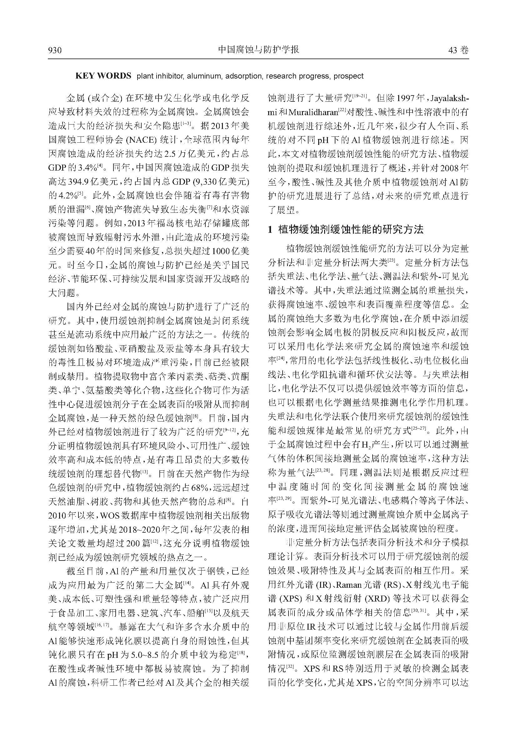 铝植物缓蚀剂的研究进展与展望