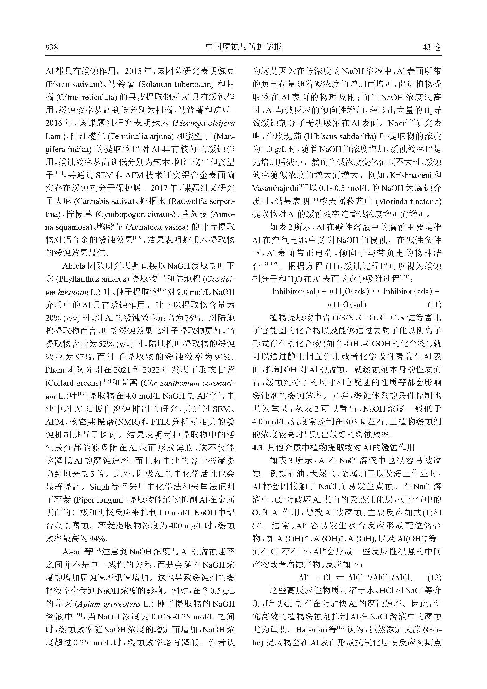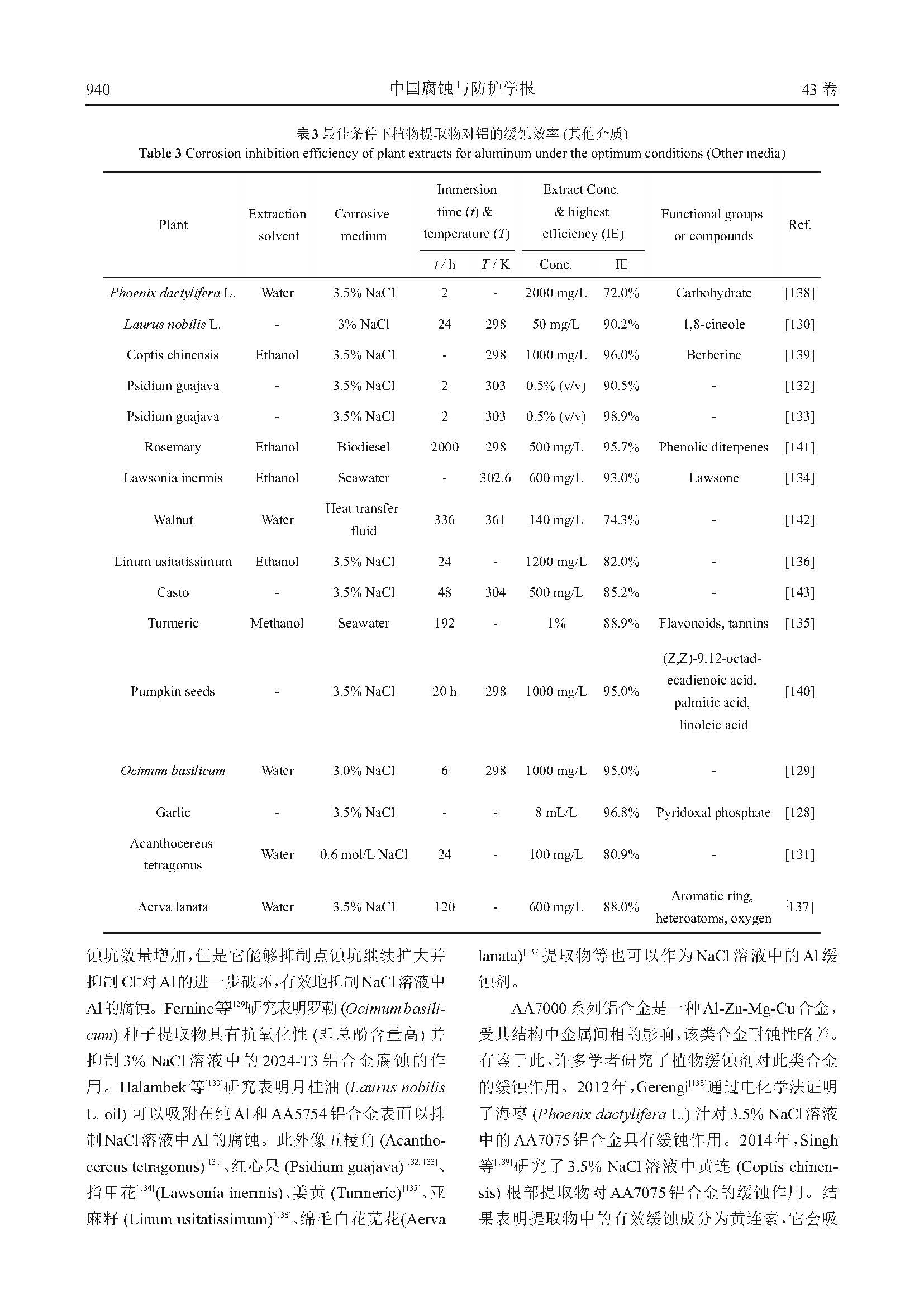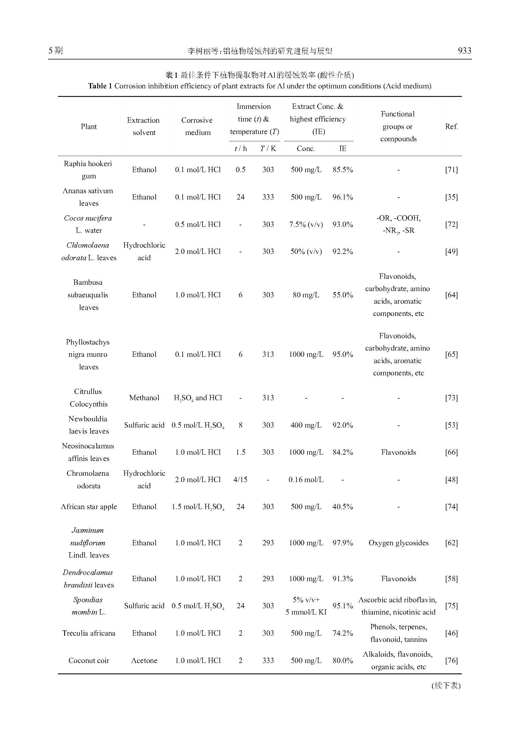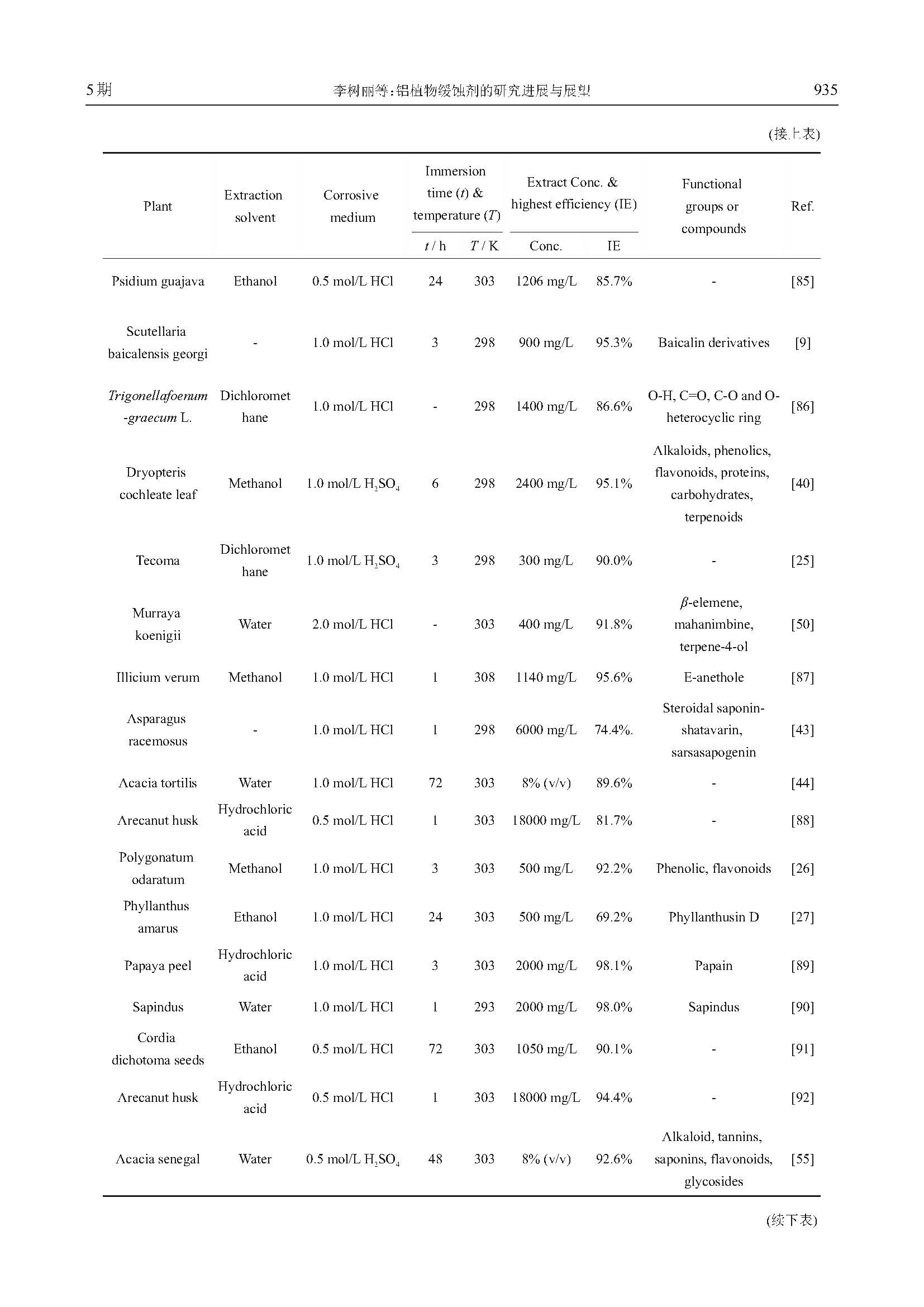 铝植物缓蚀剂的研究进展与展望