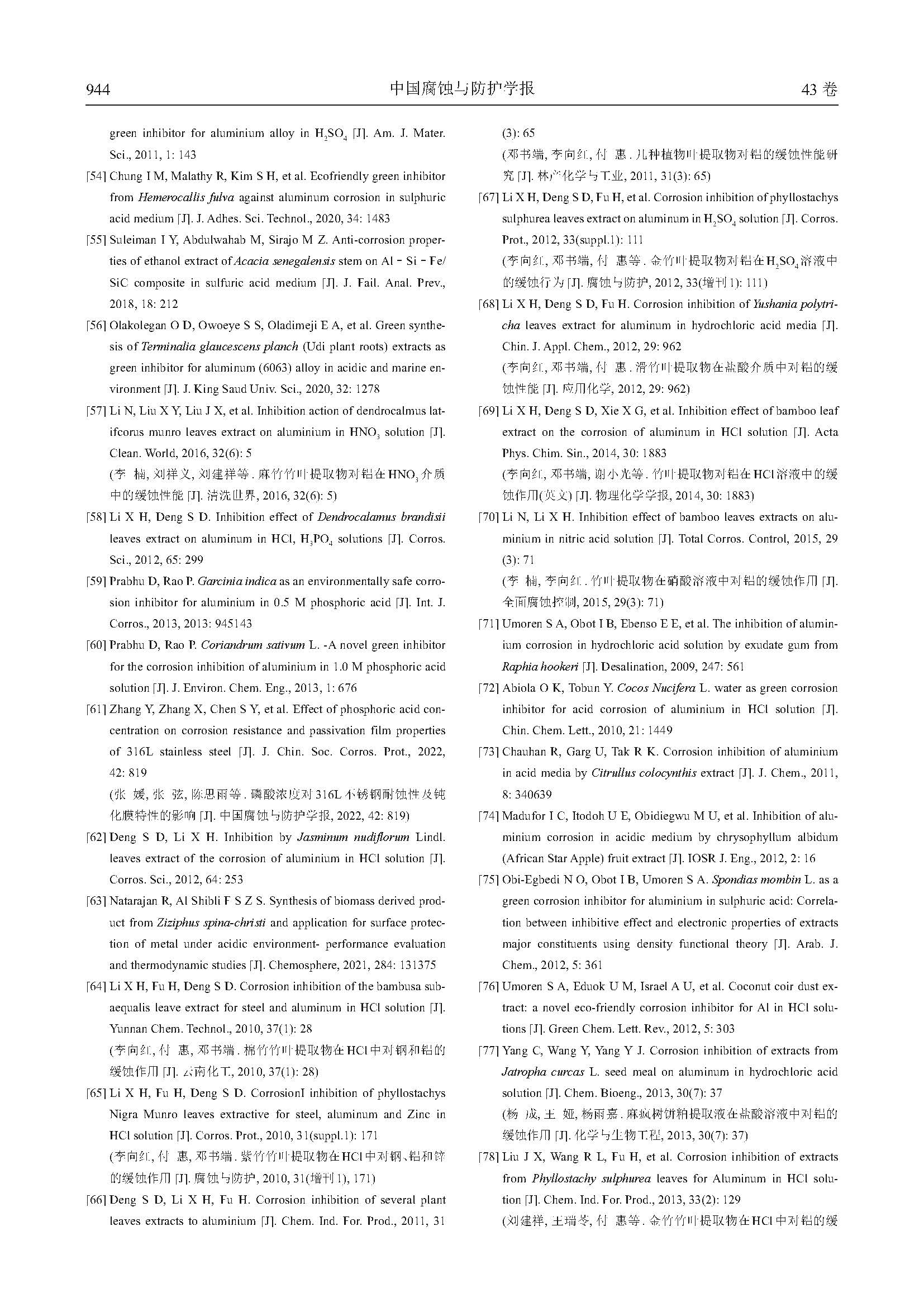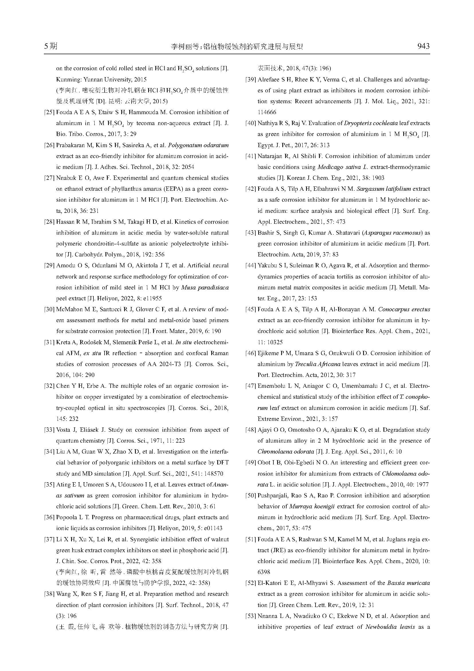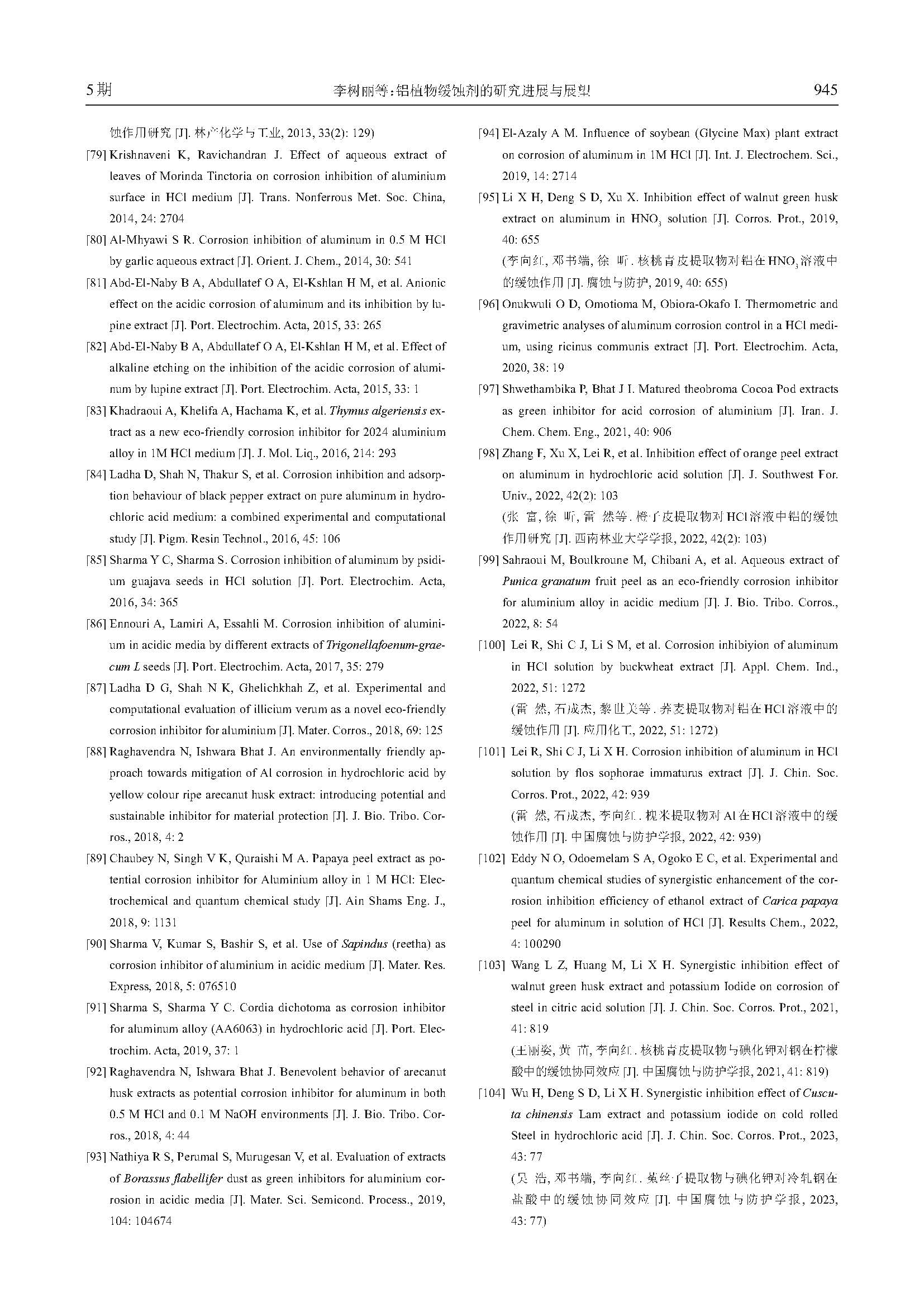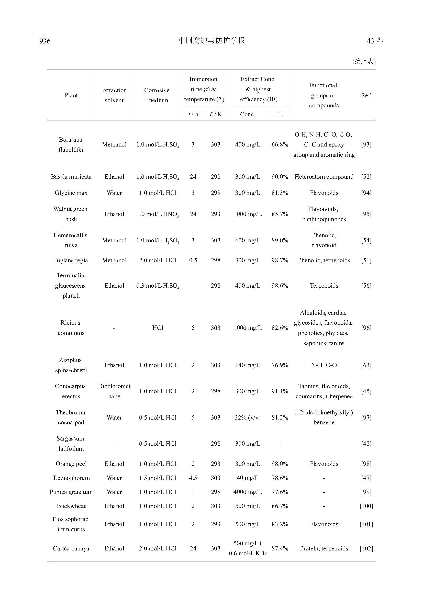 铝植物缓蚀剂的研究进展与展望