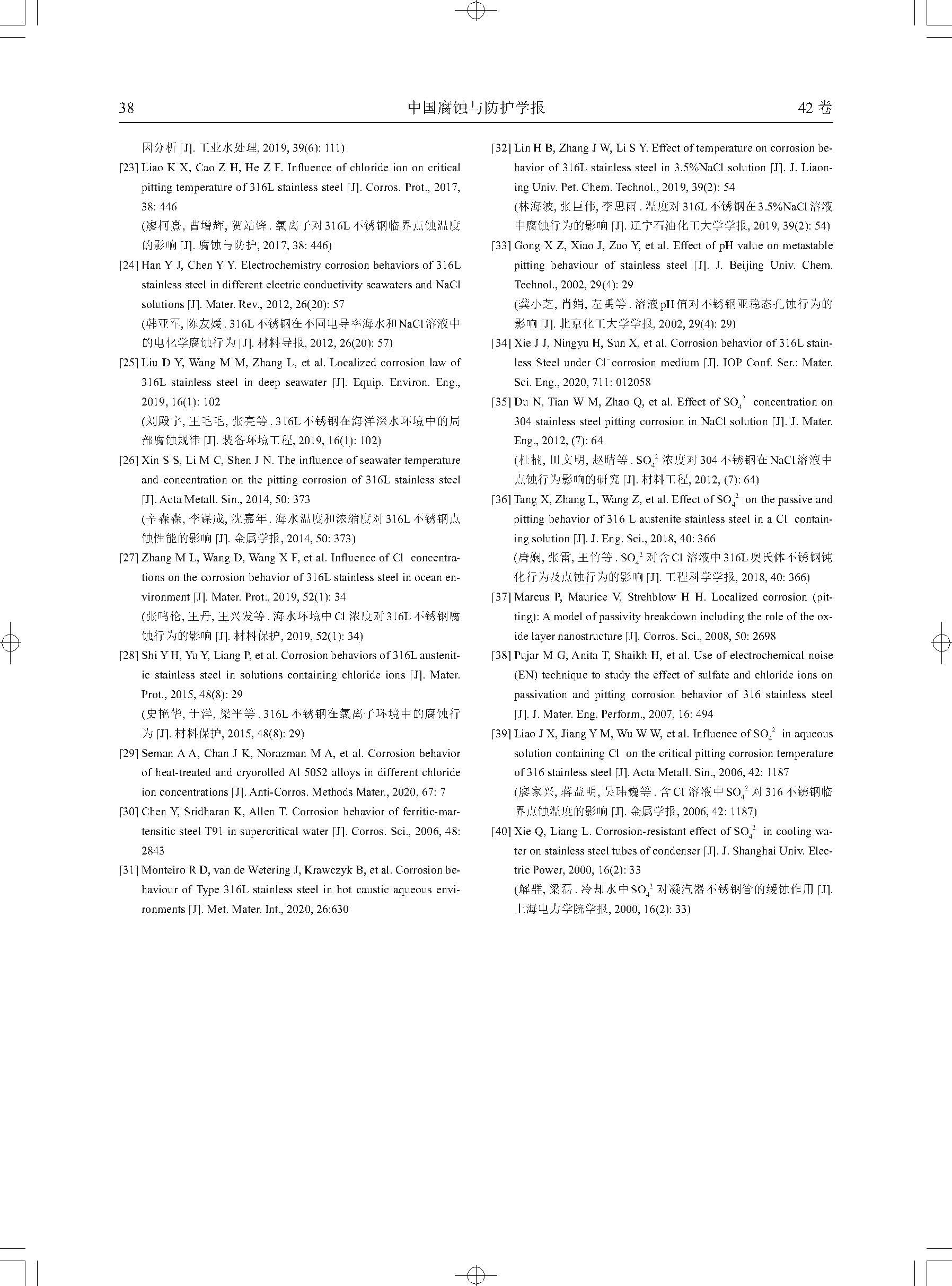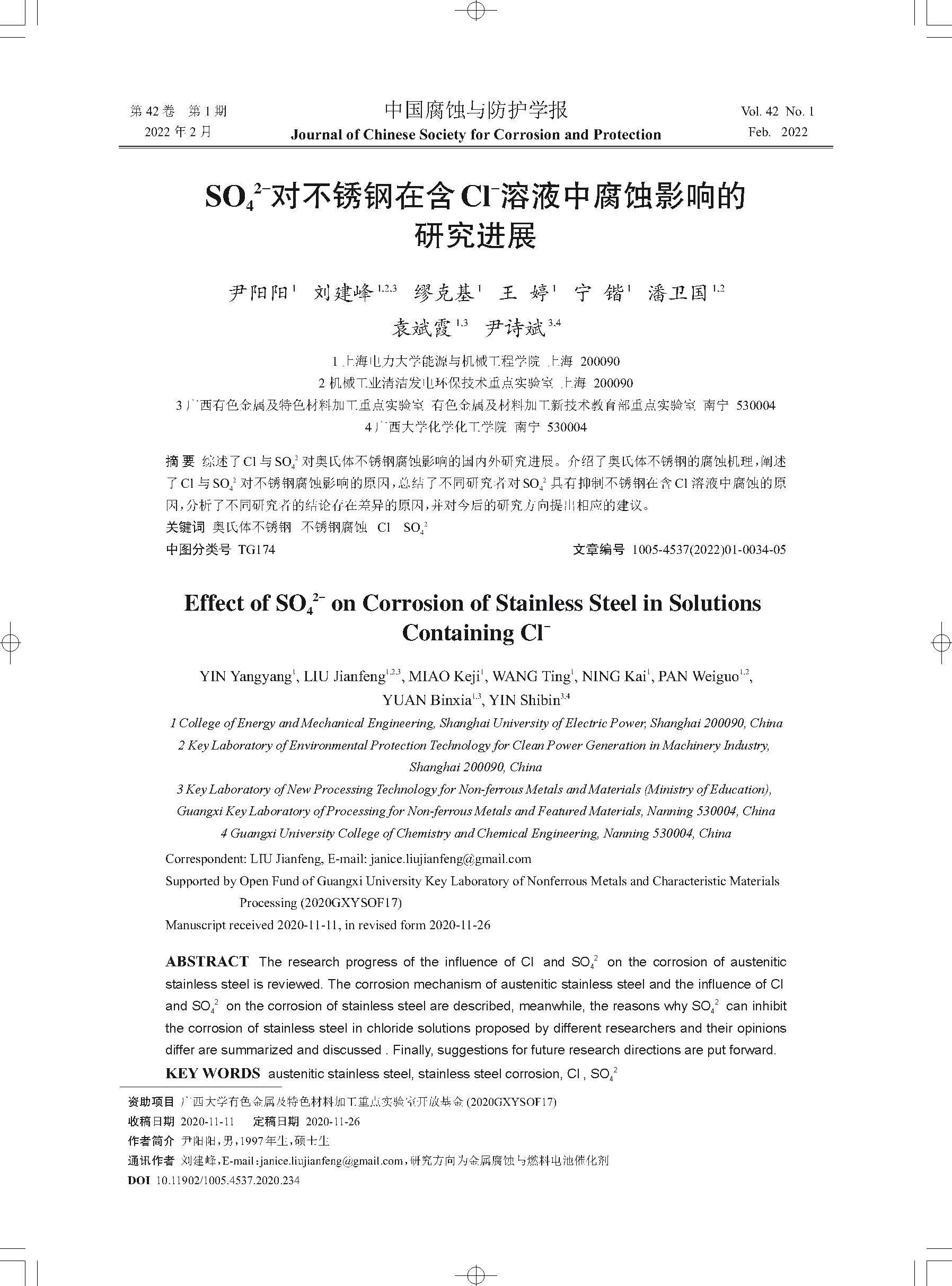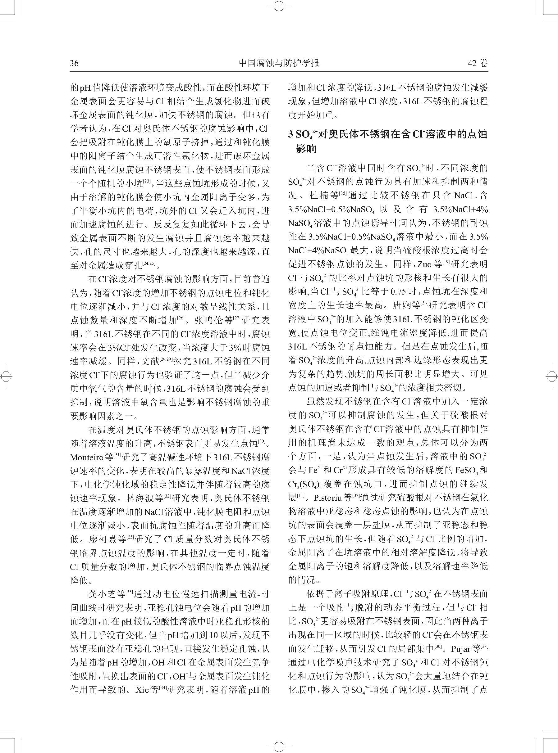 SO42-对不锈钢在含Cl-溶液中腐蚀影响的研究进展