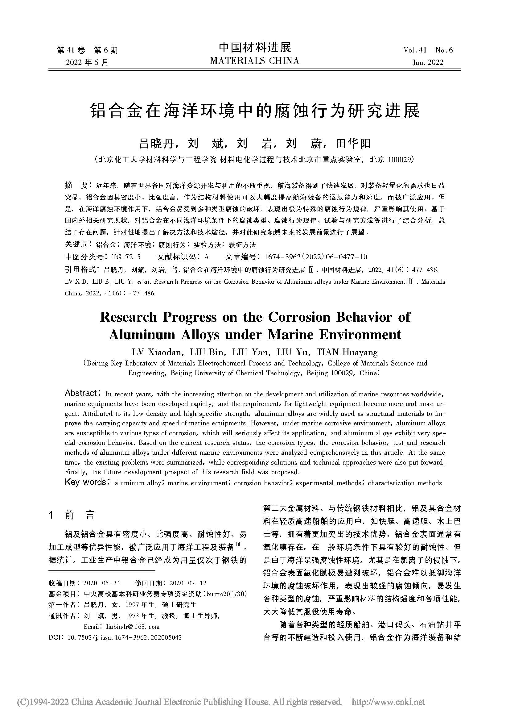 铝合金在海洋环境中的腐蚀行为研究进展
