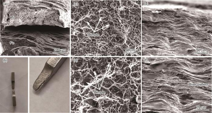 图11 钛合金/不锈钢复合板的拉伸断口形貌