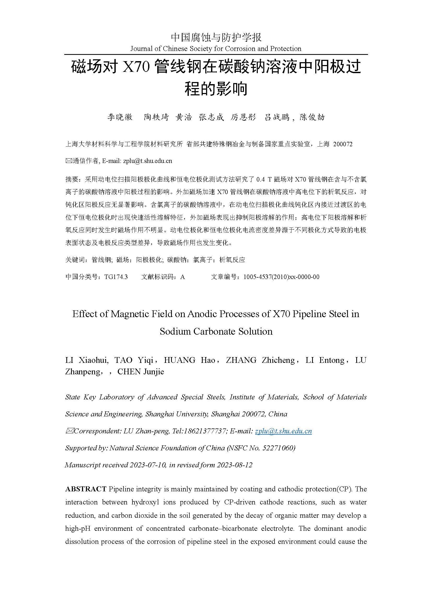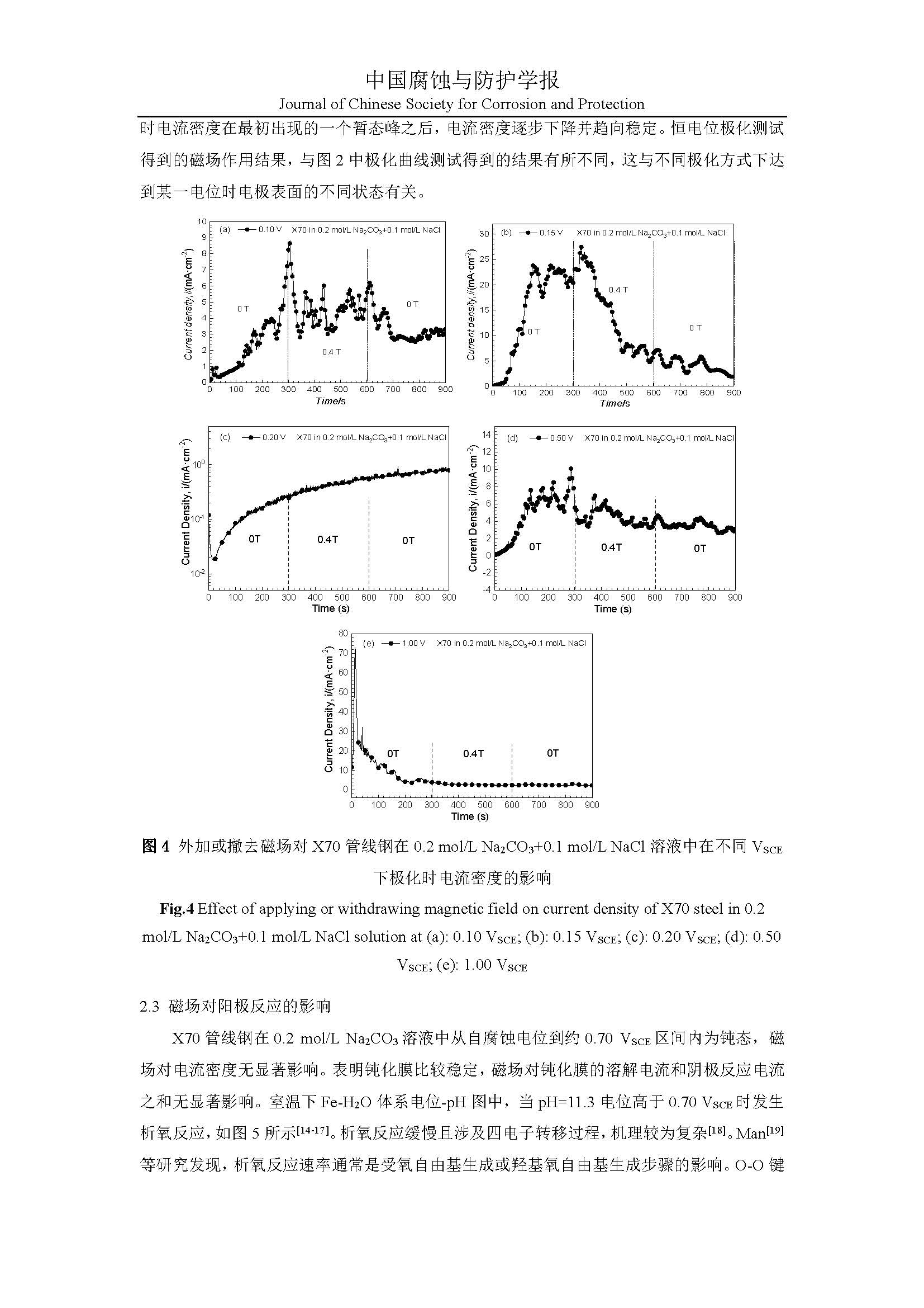 磁场对 X70 管线钢在碳酸钠溶液中阳极过程的影响