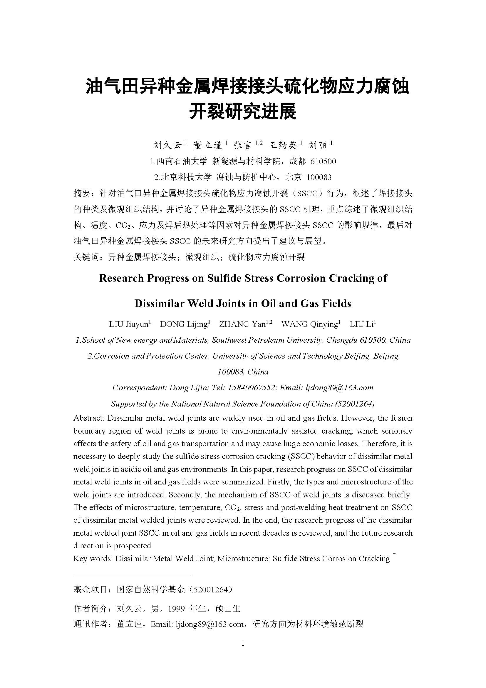 油气田异种金属焊接接头硫化物应力腐蚀开裂研究进展