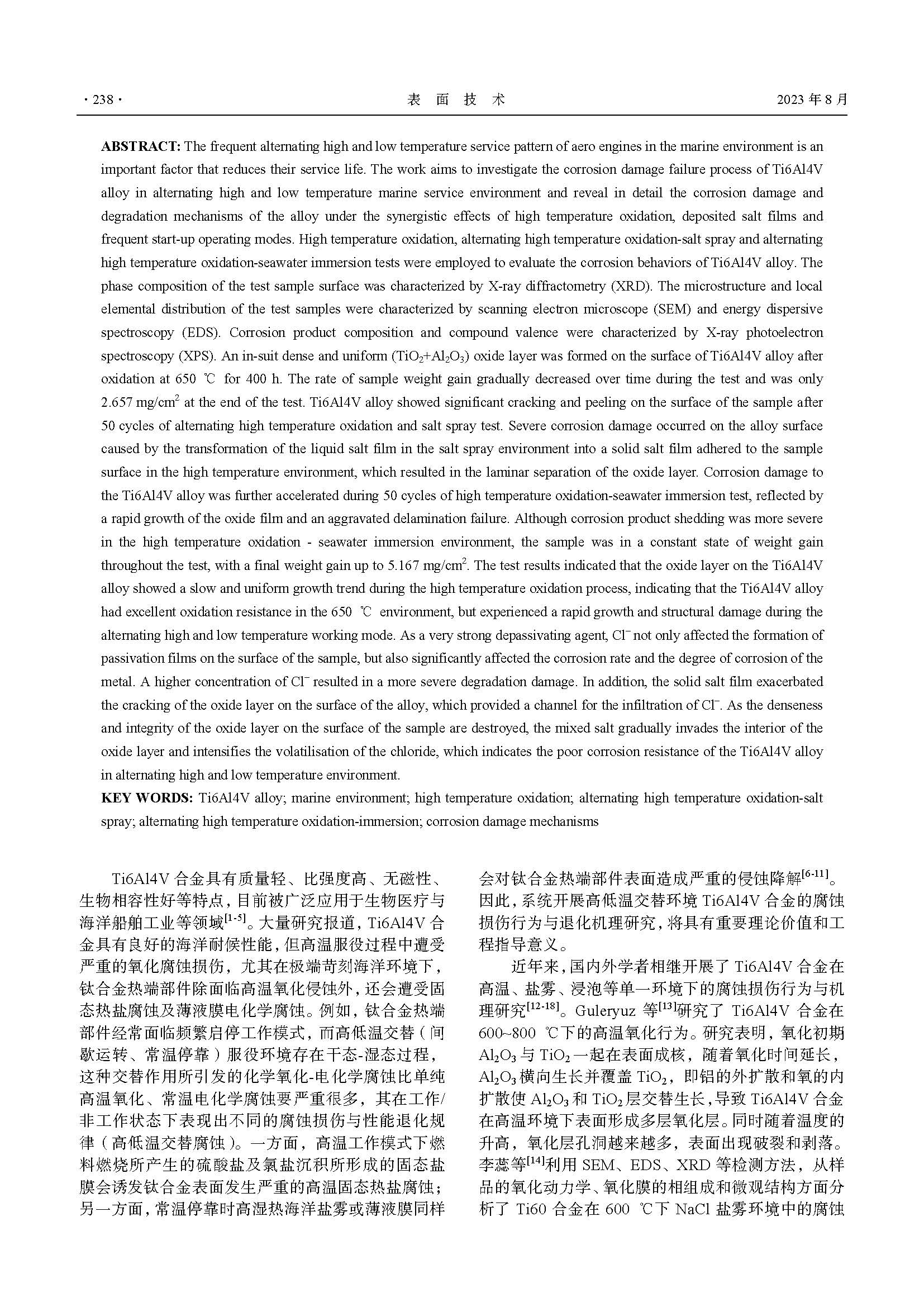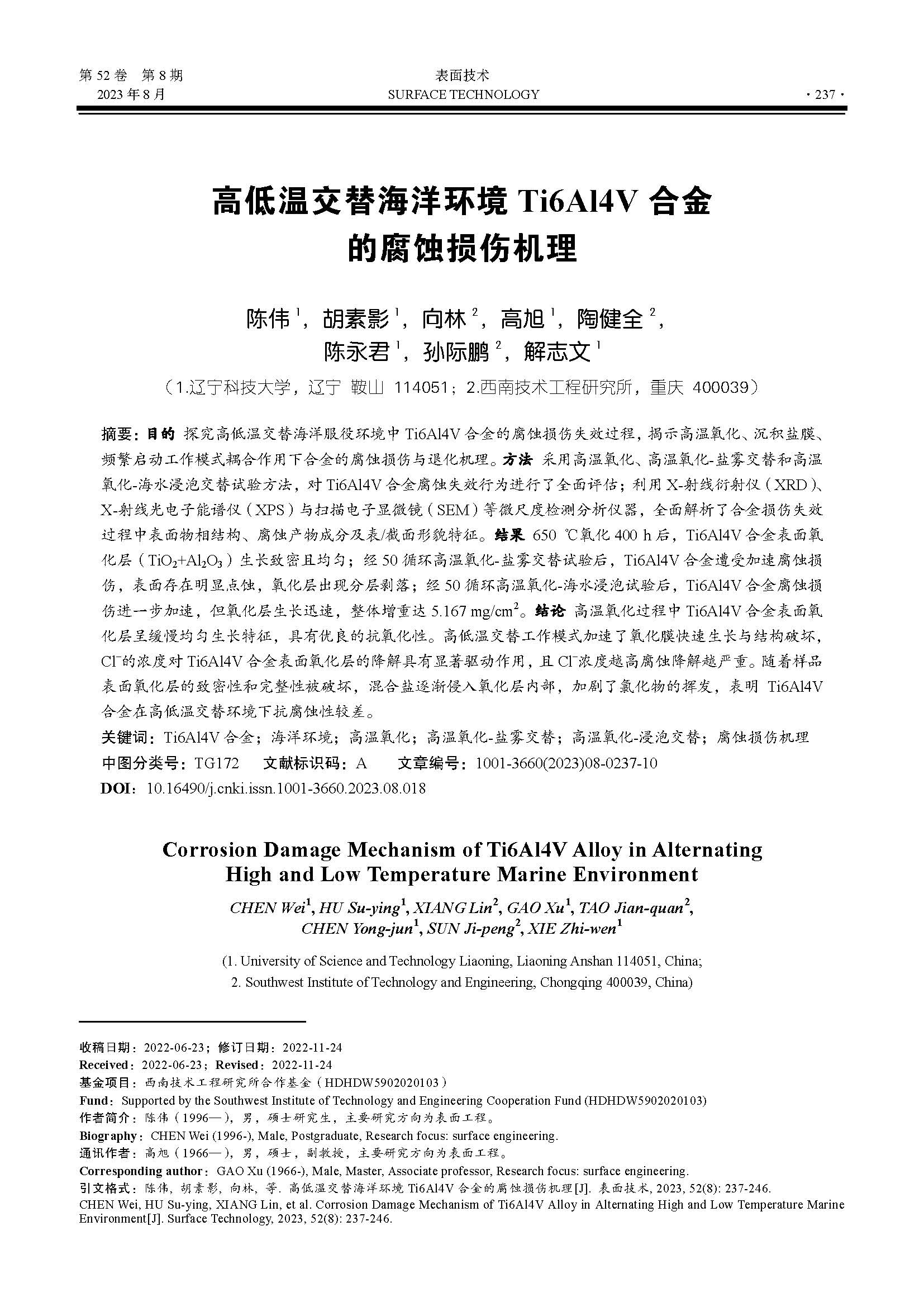 高低温交替海洋环境Ti6Al4V合金的腐蚀损伤机理