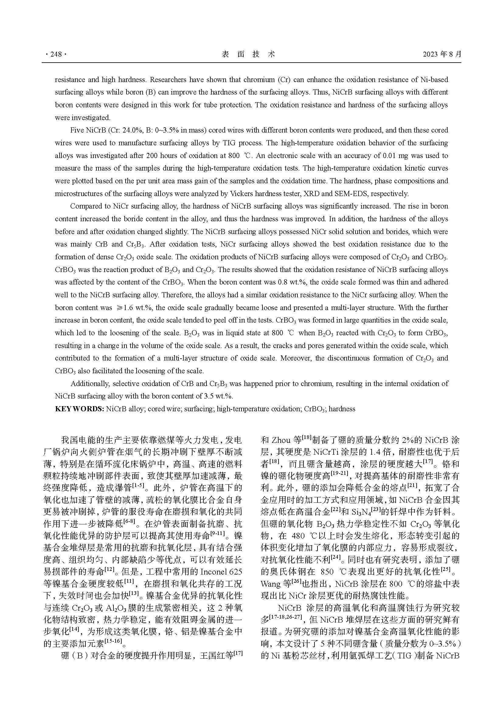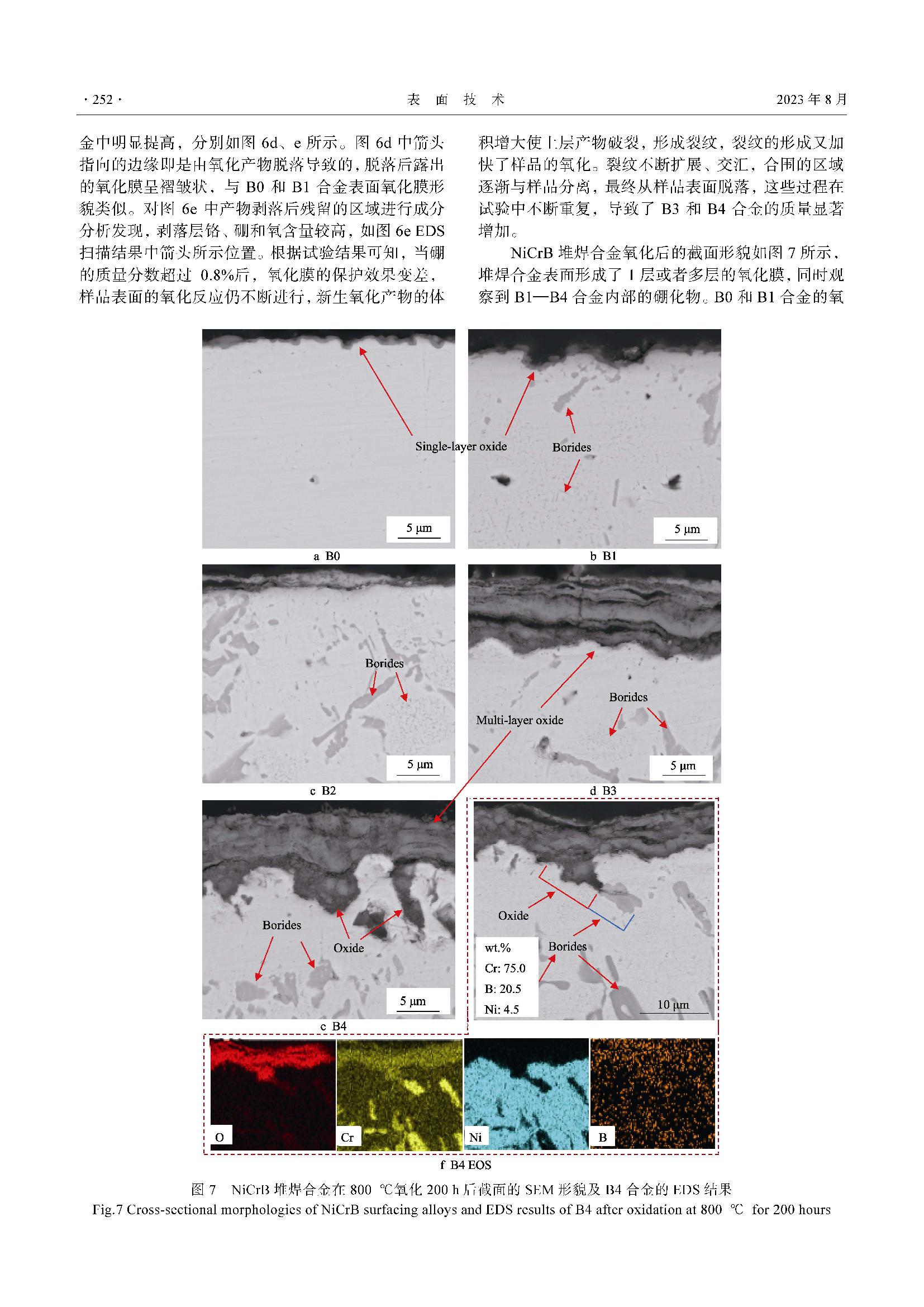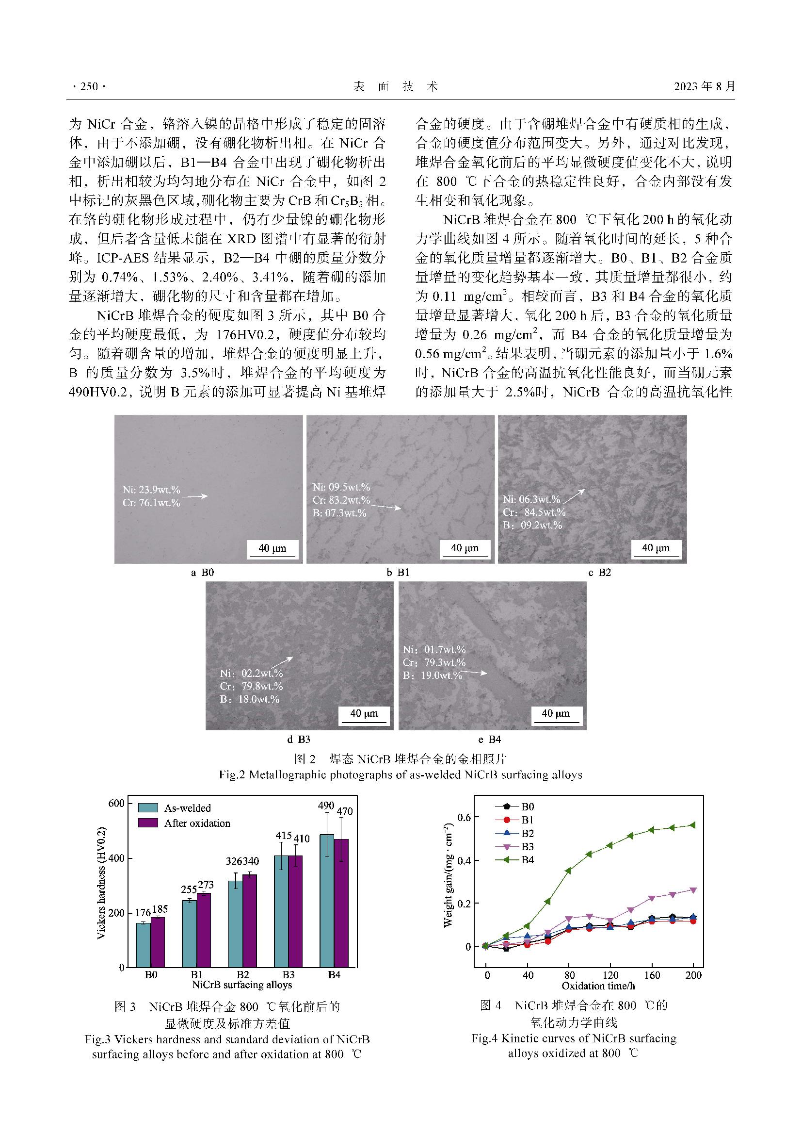 硼含量对NiCrB堆焊合金高温氧化性能的影响