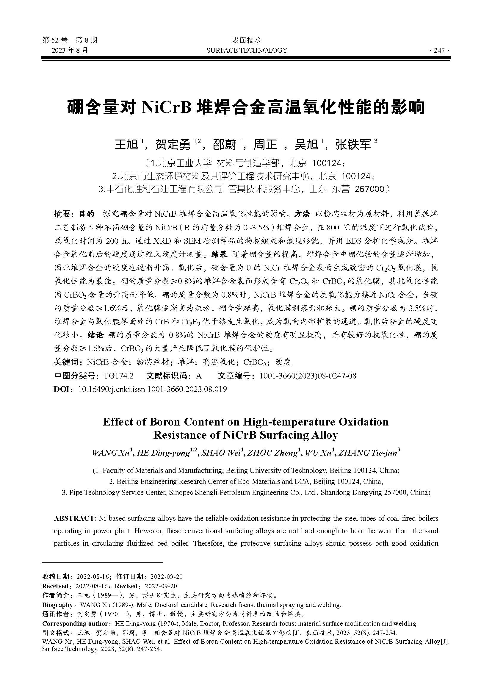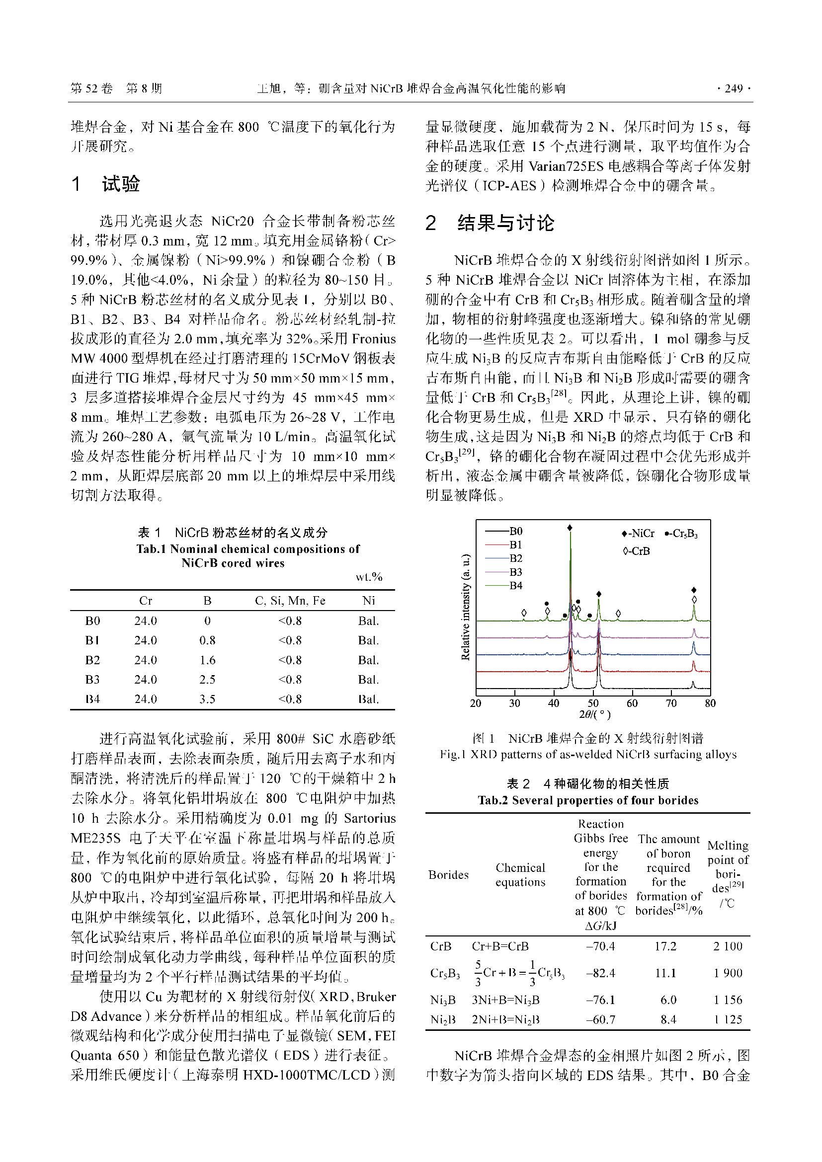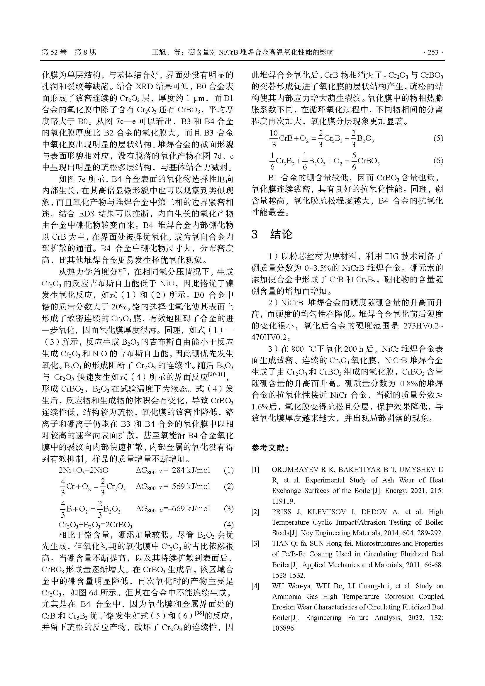 硼含量对NiCrB堆焊合金高温氧化性能的影响