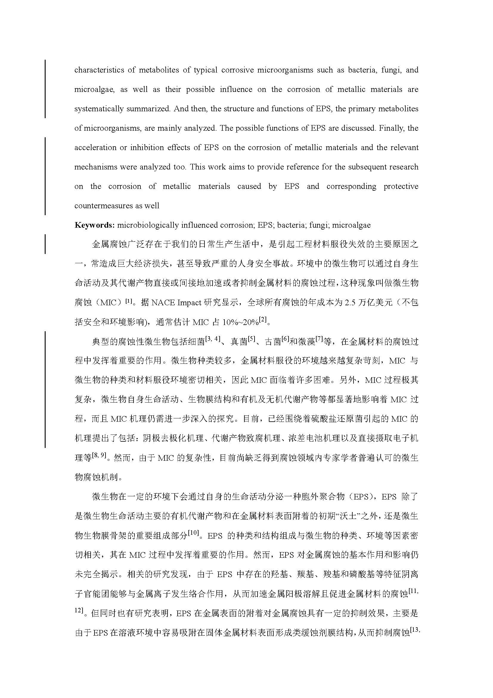 微生物胞外聚合物引起的金属腐蚀的研究进展