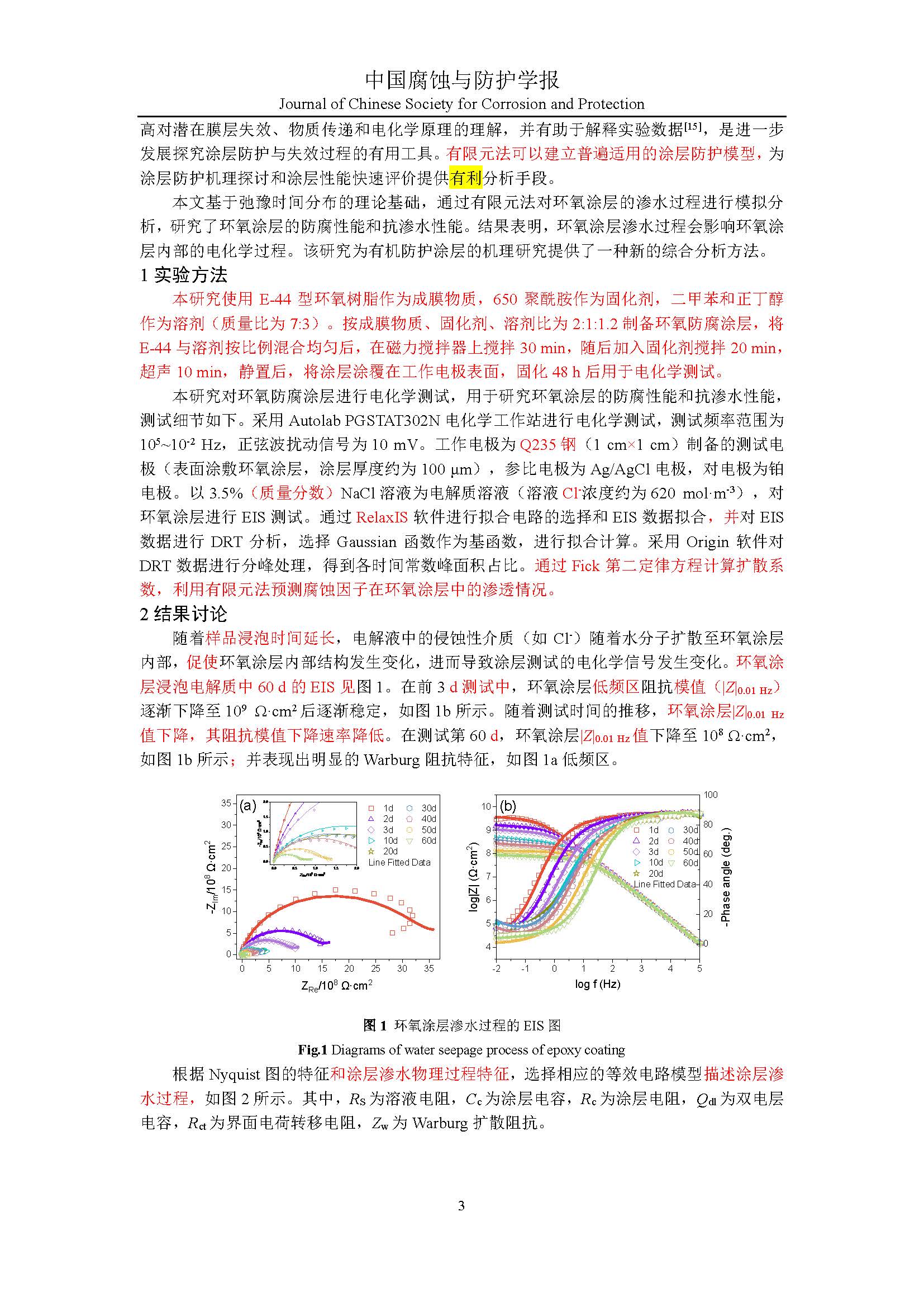 作者:基于弛豫时间分布和有限元模拟的环氧涂层渗水行为研究