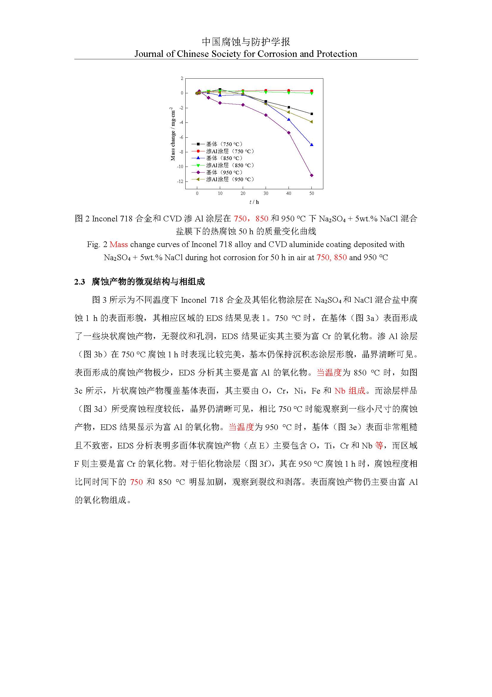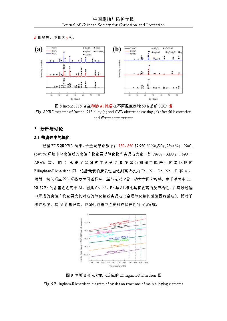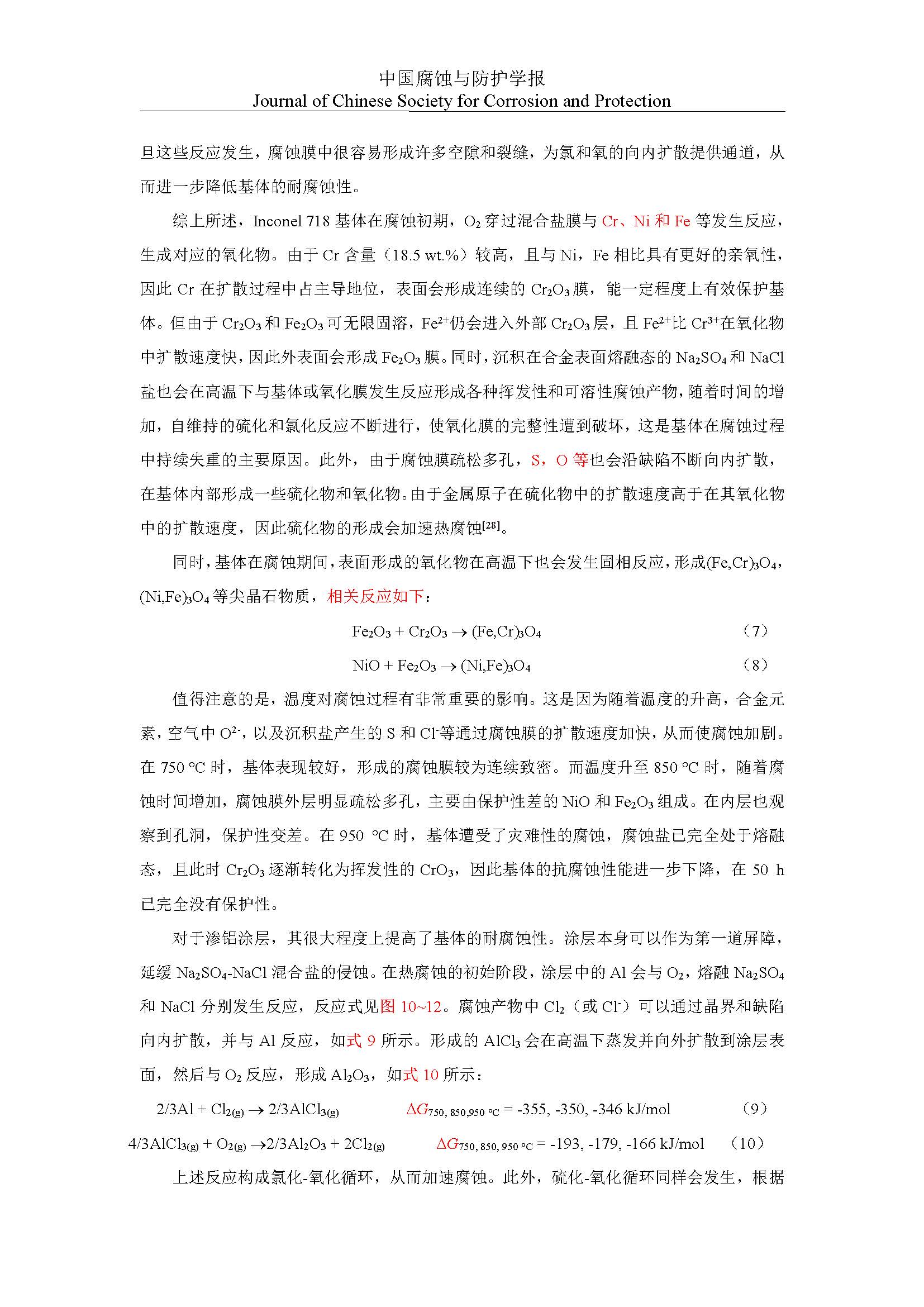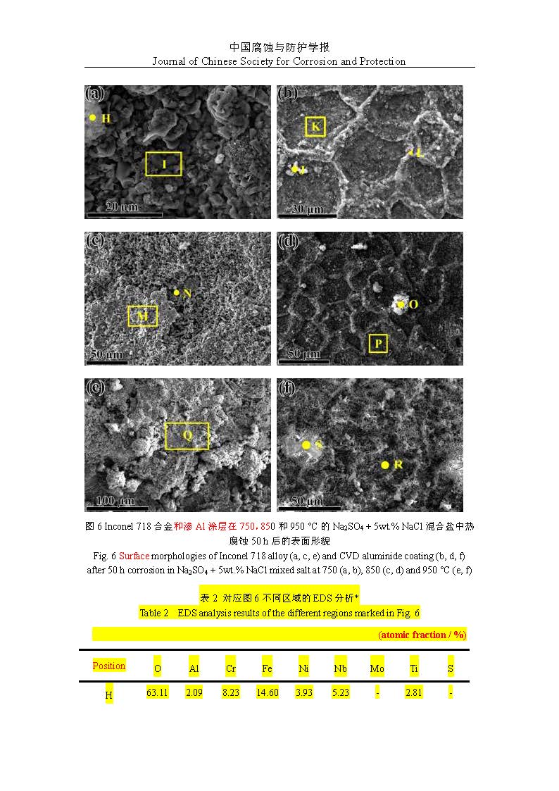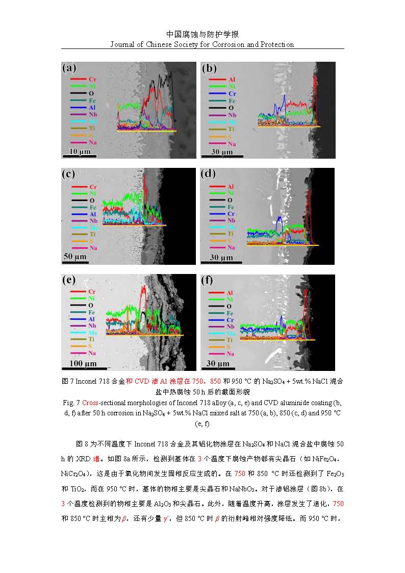 涂覆Na2SO4 (95wt. %) + NaCl (5wt. %)混合盐膜的Inconel 718及其渗铝涂层的热腐蚀行为