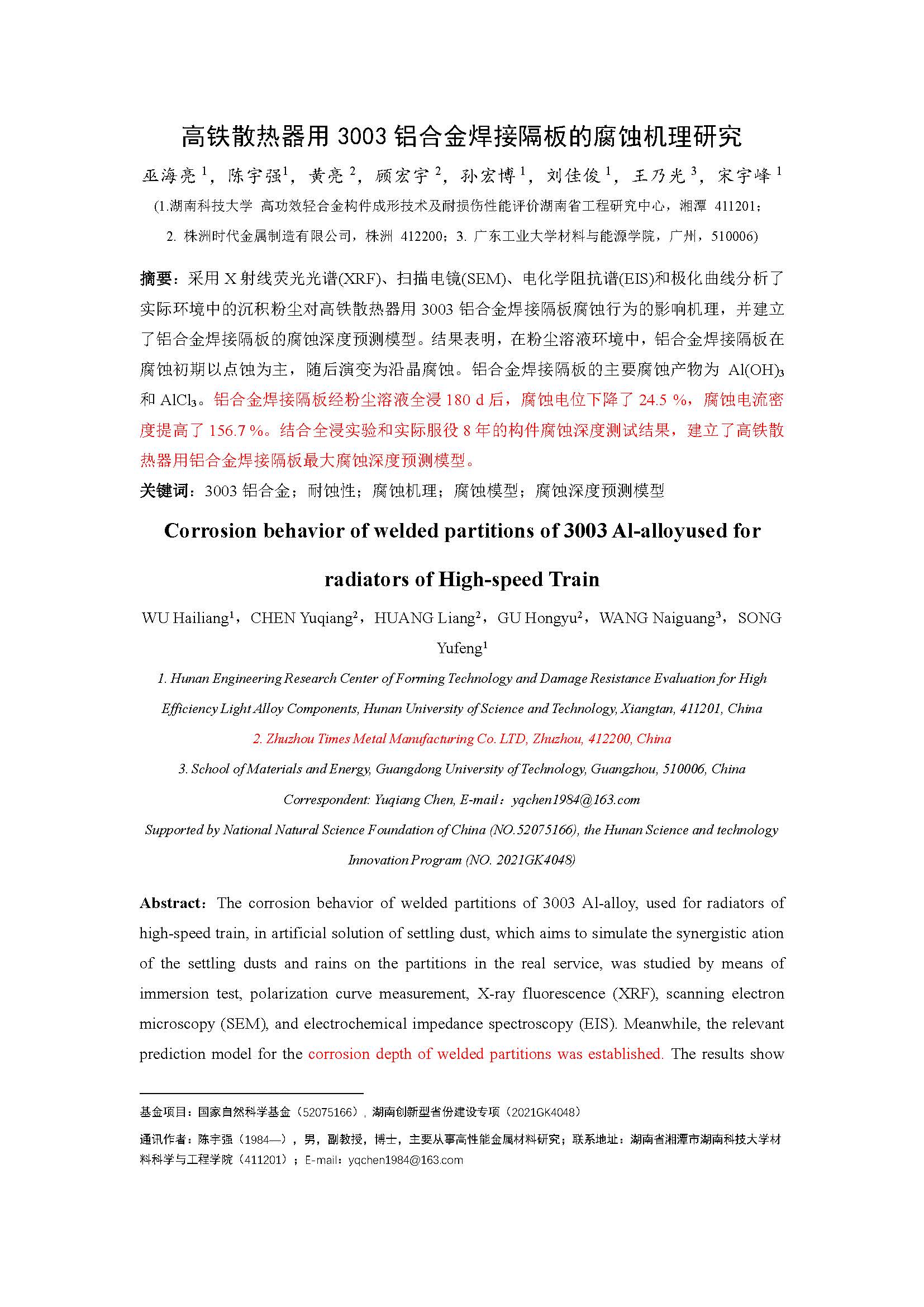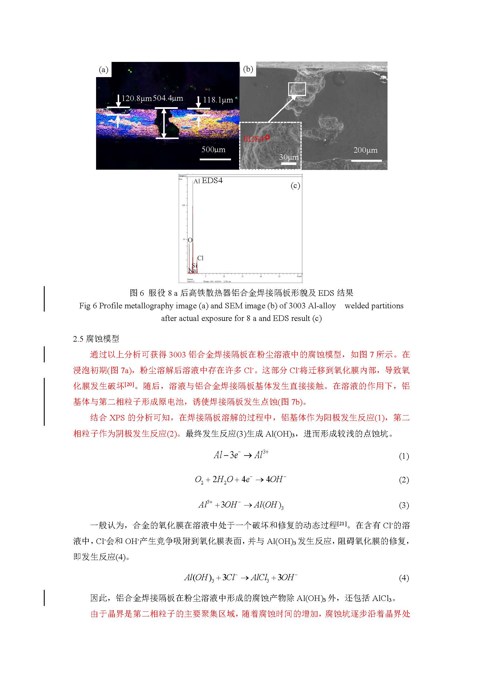 高铁散热器用3003铝合金焊件的腐蚀机理研究