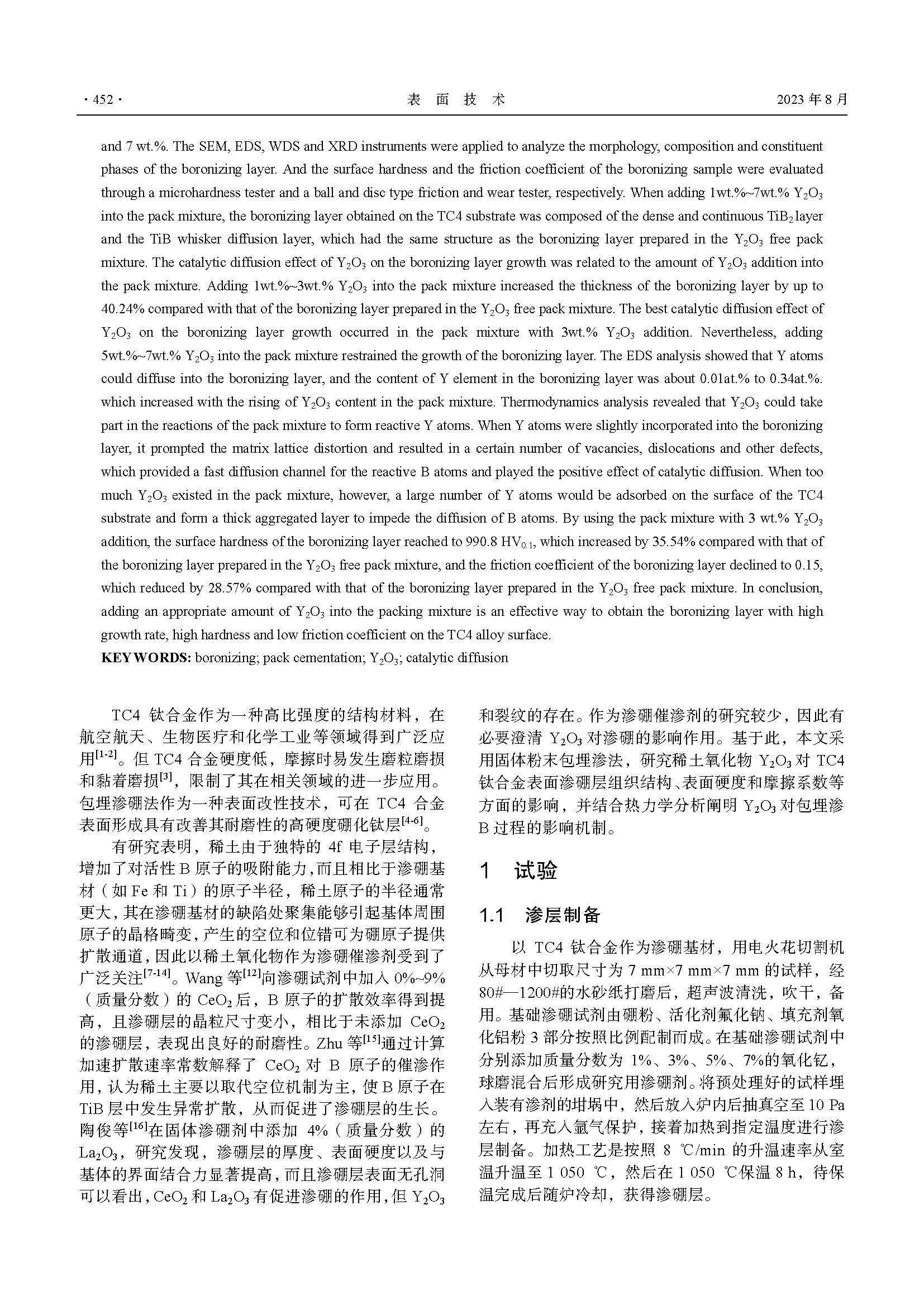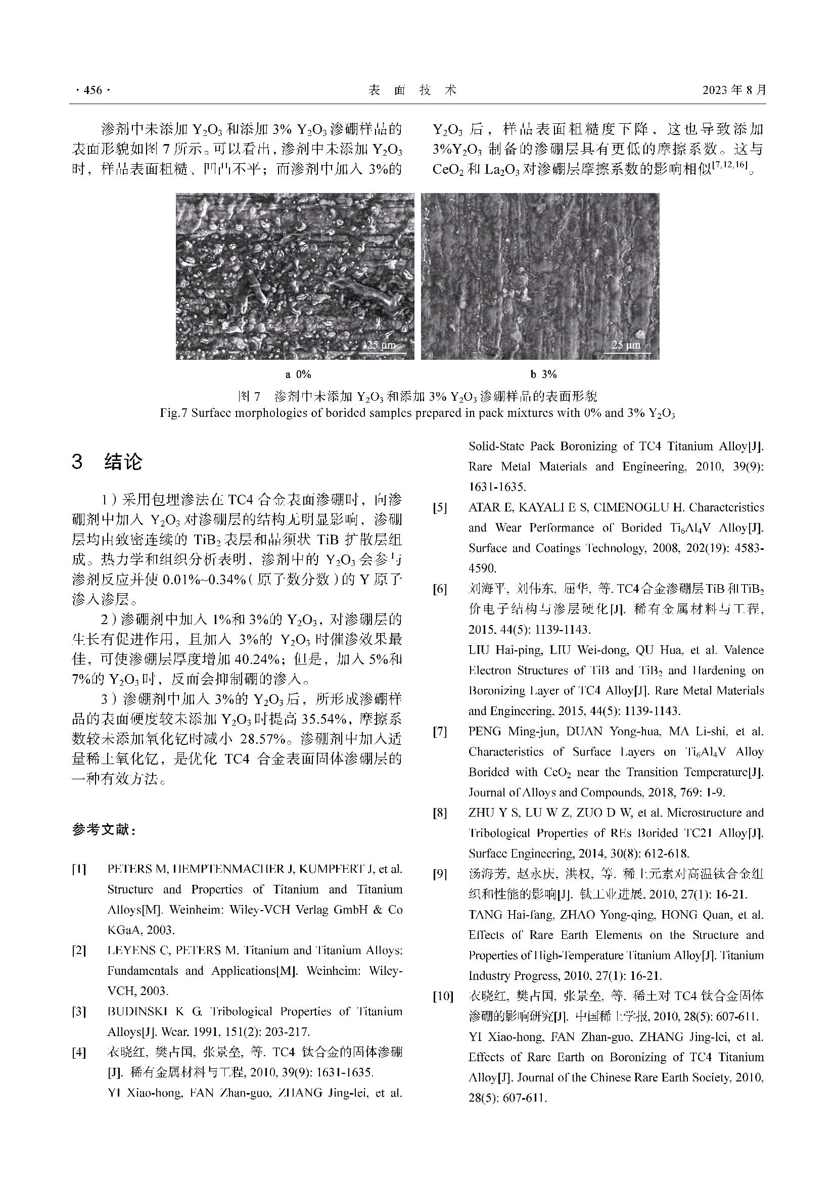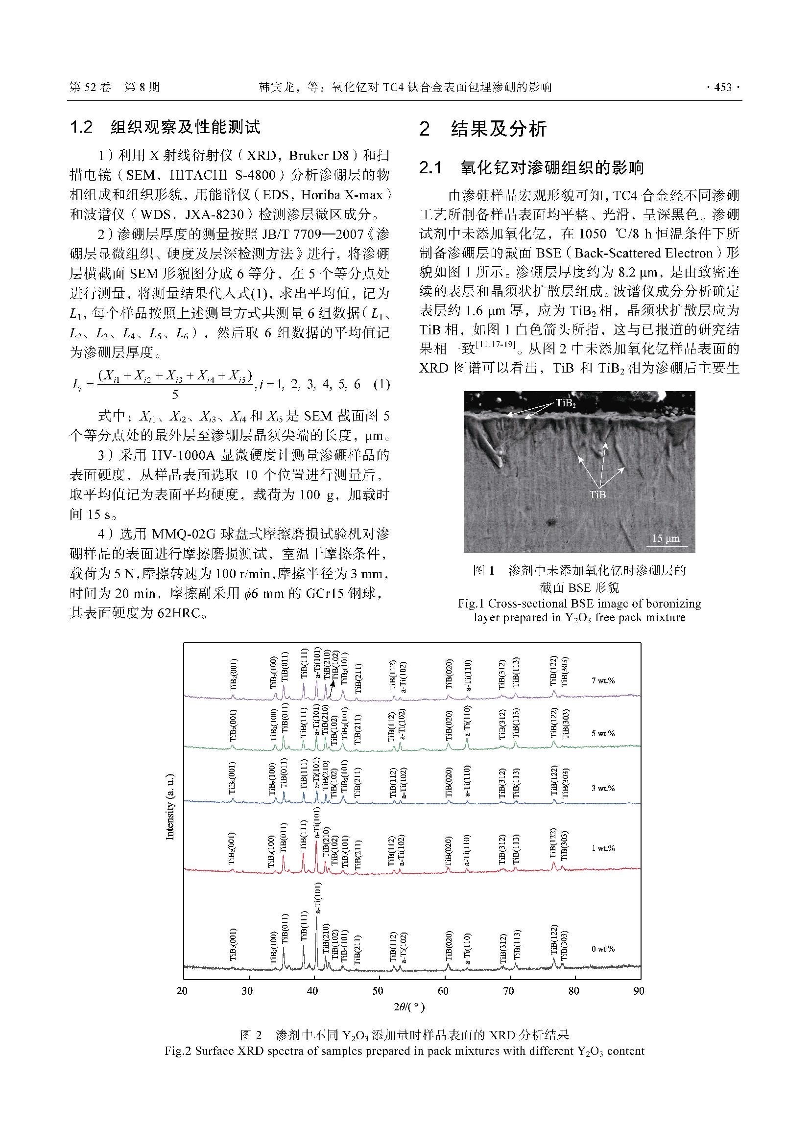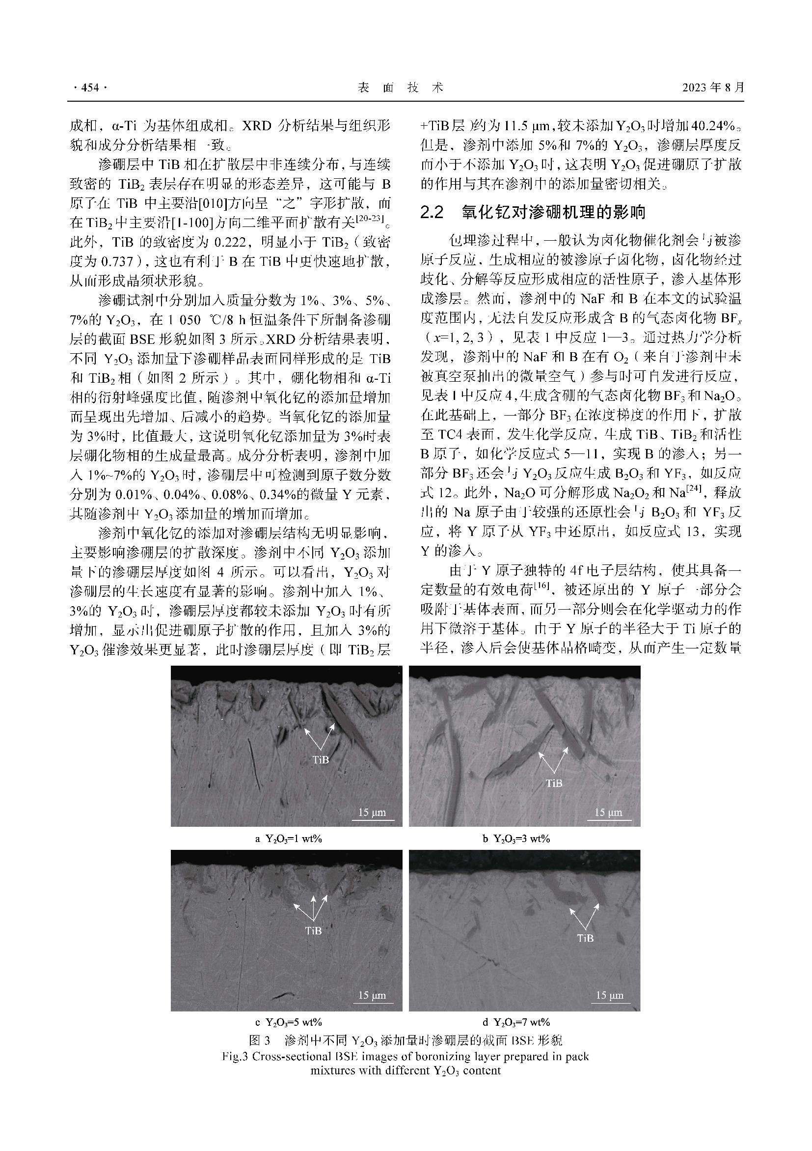 氧化钇对TC4钛合金表面包埋渗硼的影响