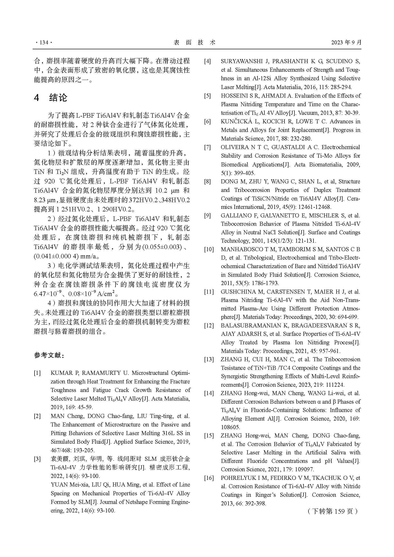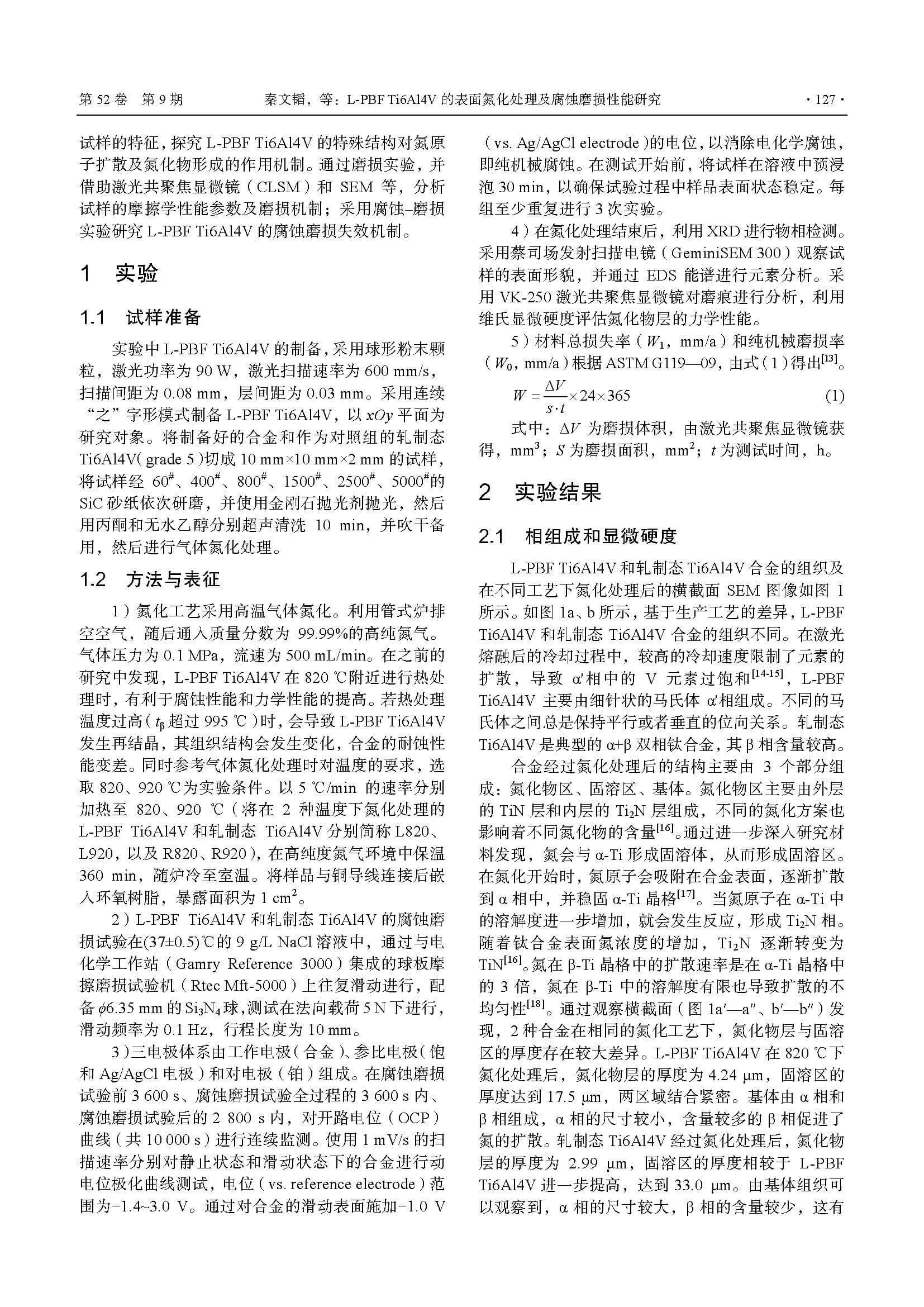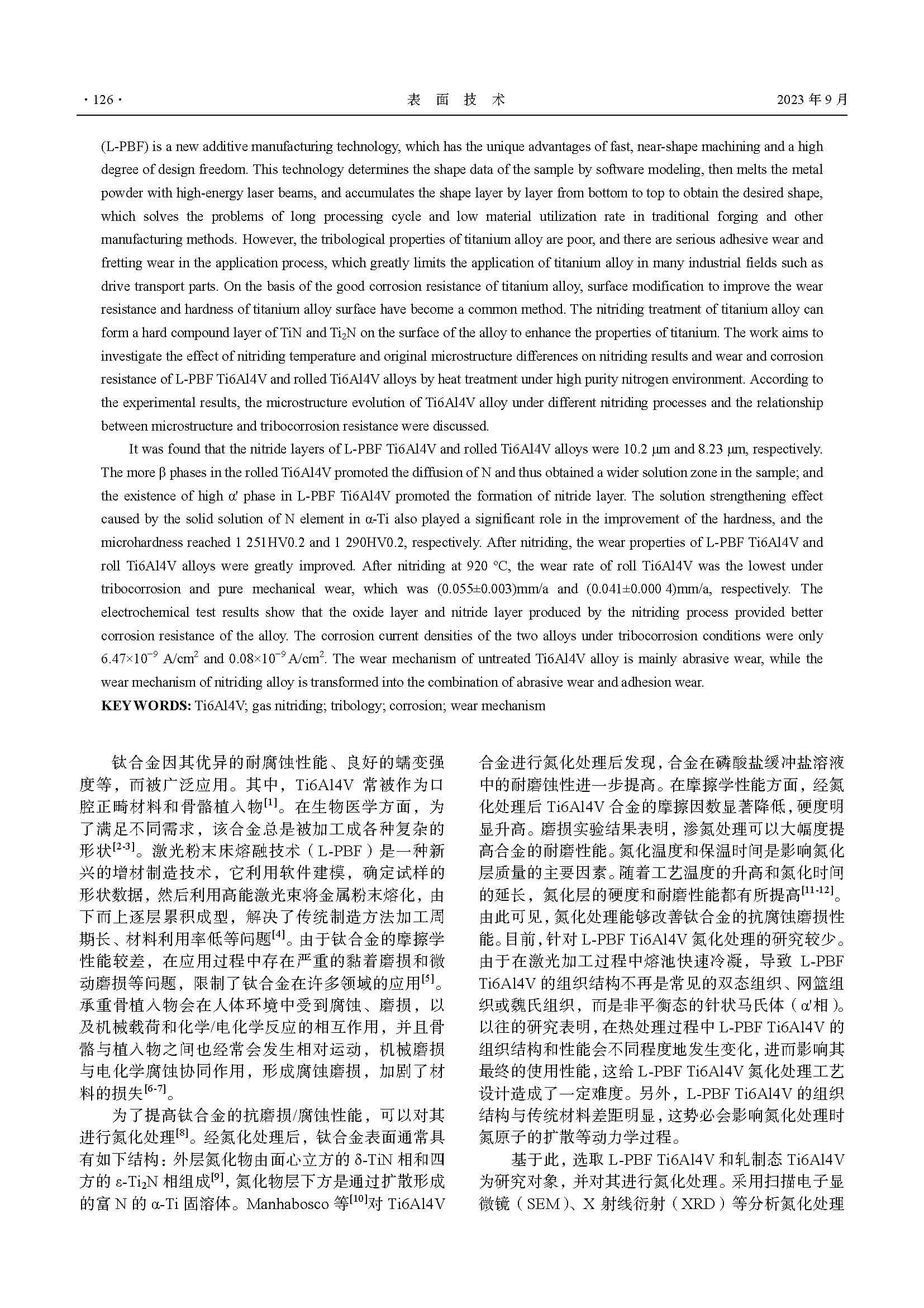 L-PBFTi6Al4V的表面氮化处理及腐蚀磨损性能研究