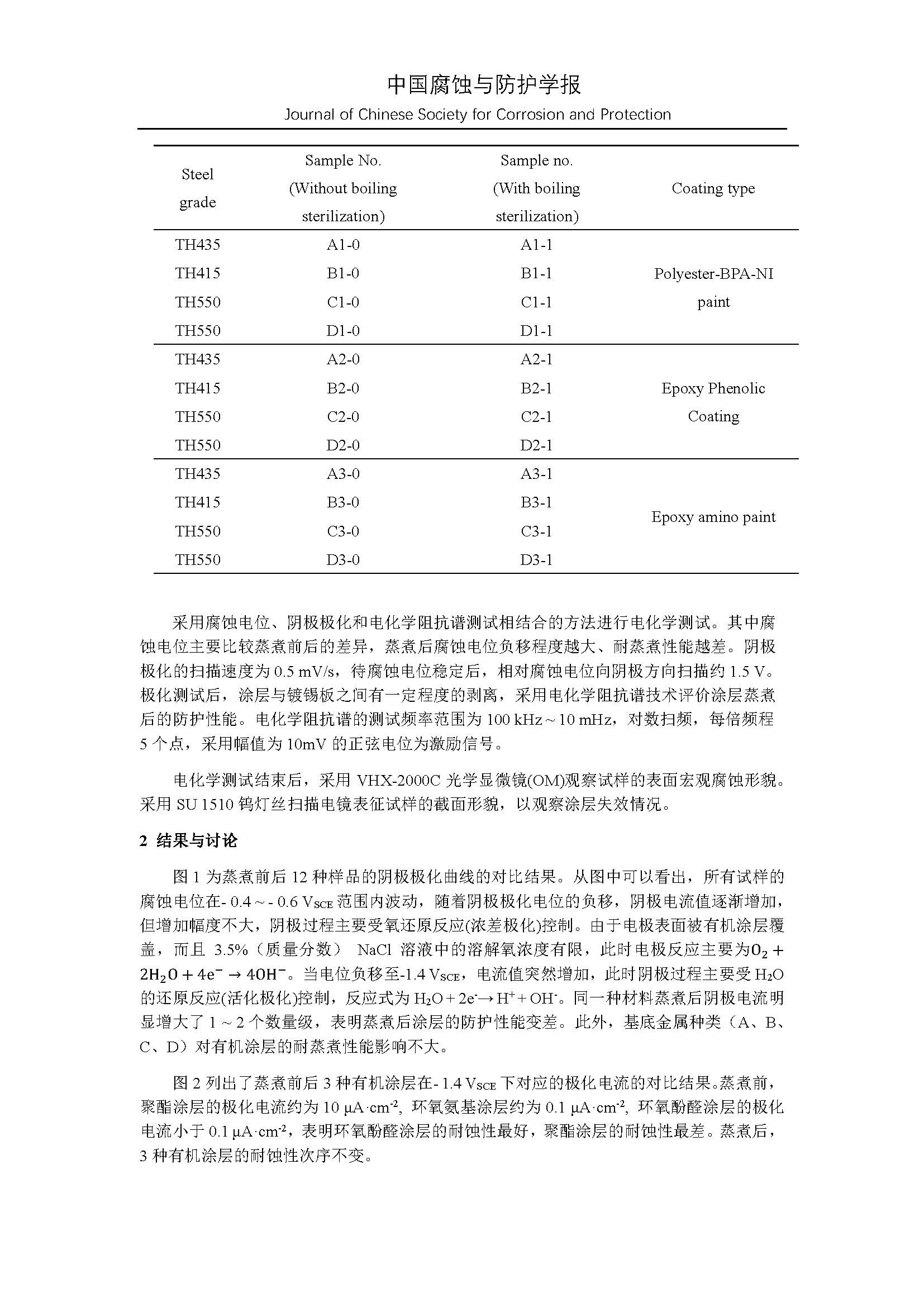 涂层镀锡薄钢板耐蒸煮性能电化学快速检测技术研究