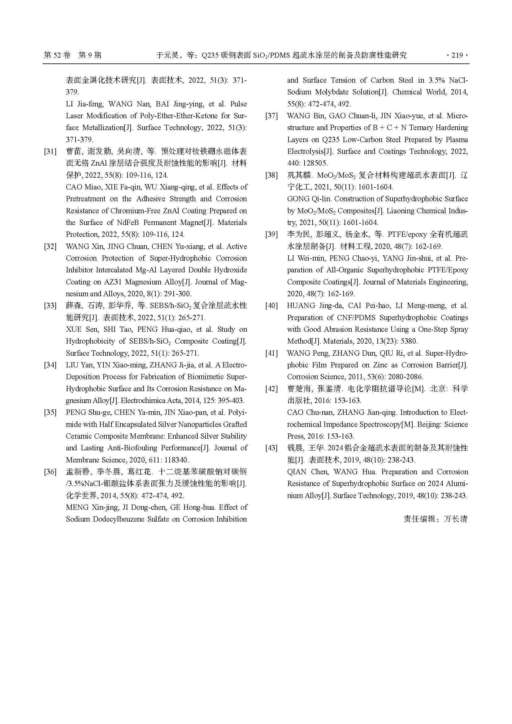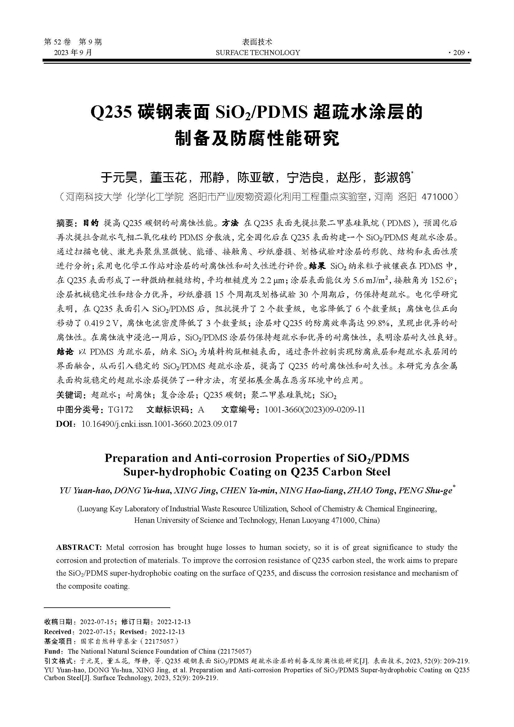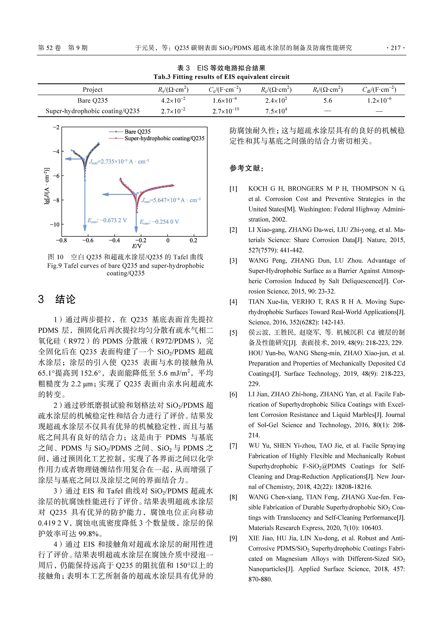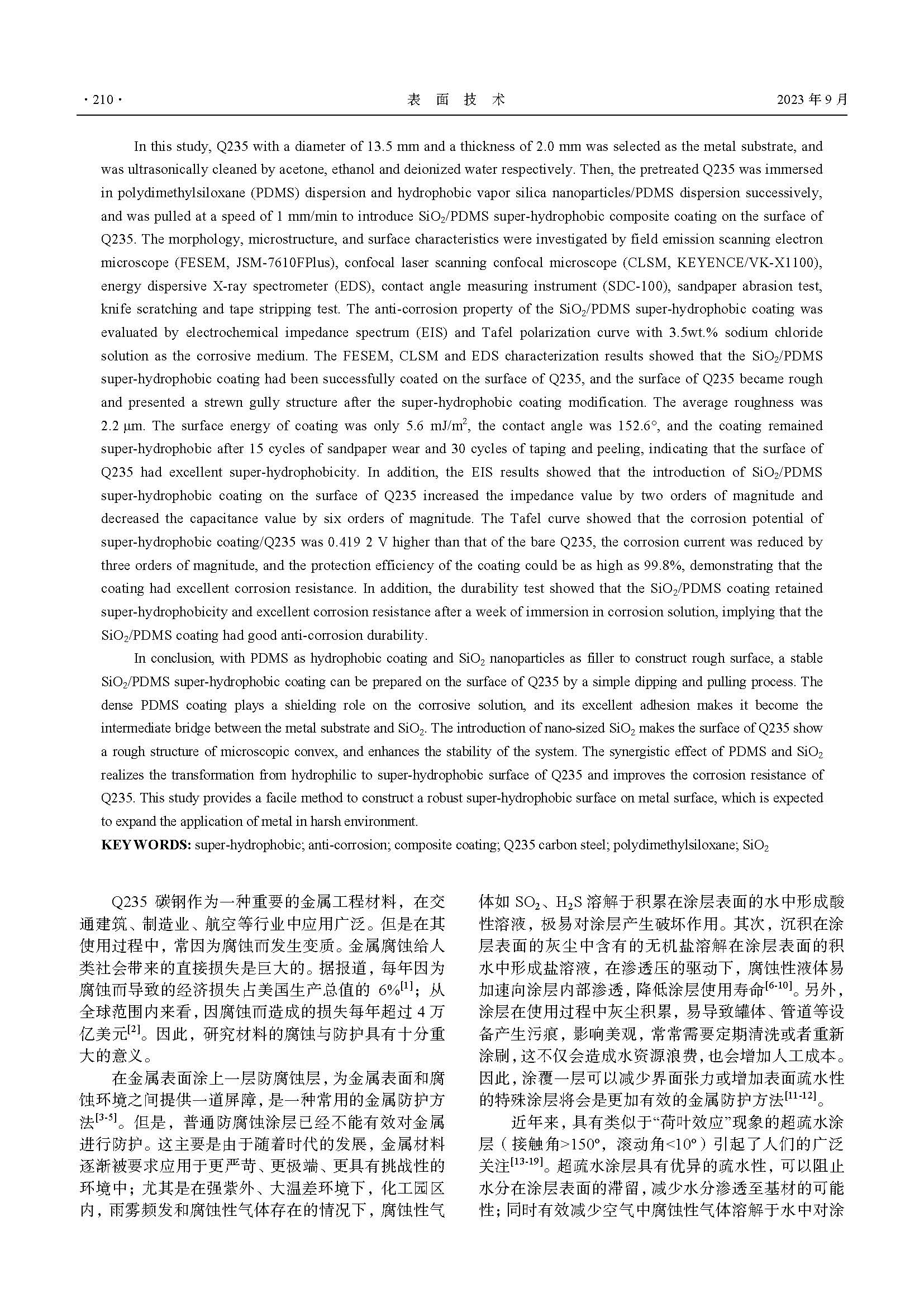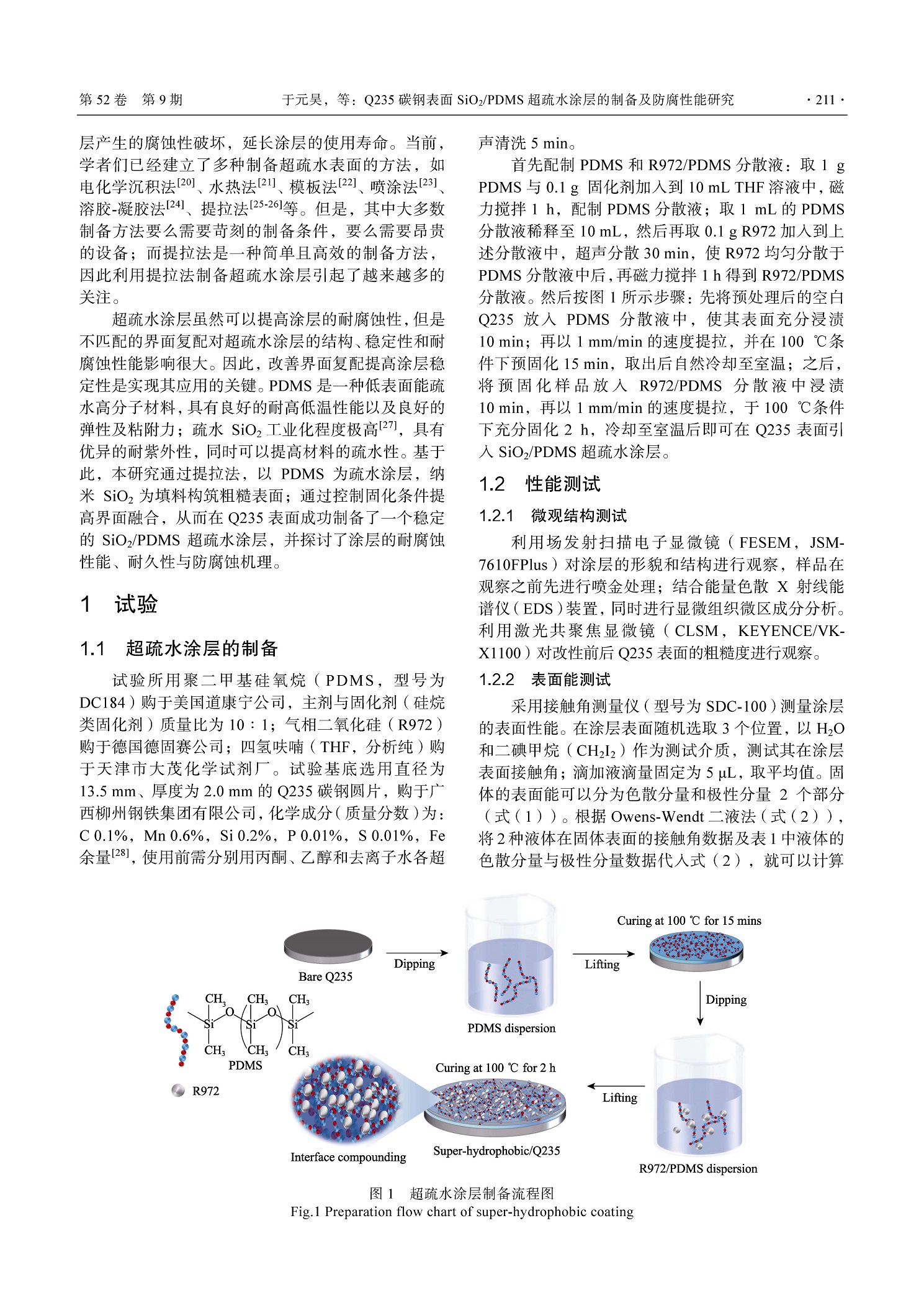 Q235 碳钢表面 SiO2/PDMS 超疏水涂层的制备及防腐性能研究