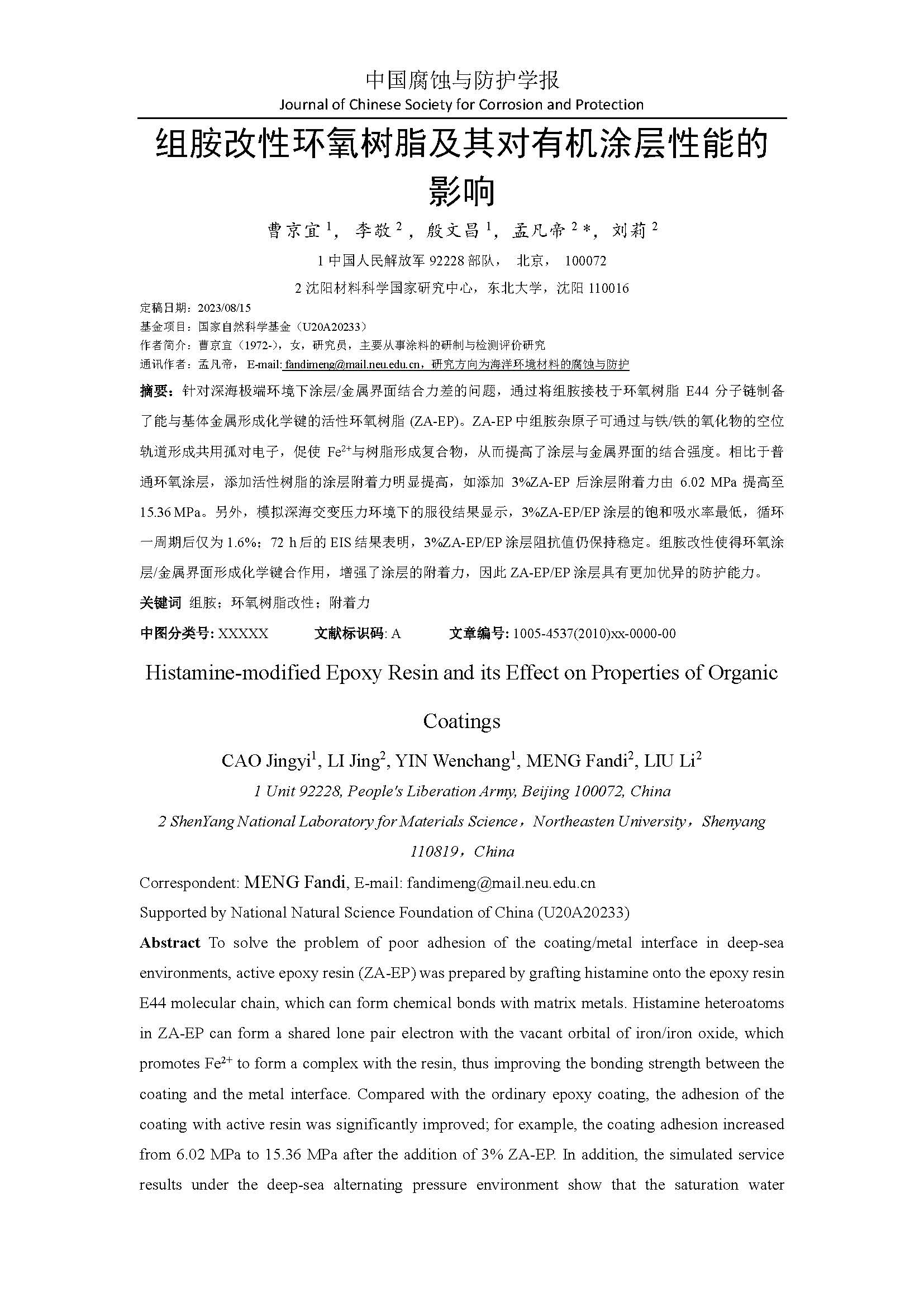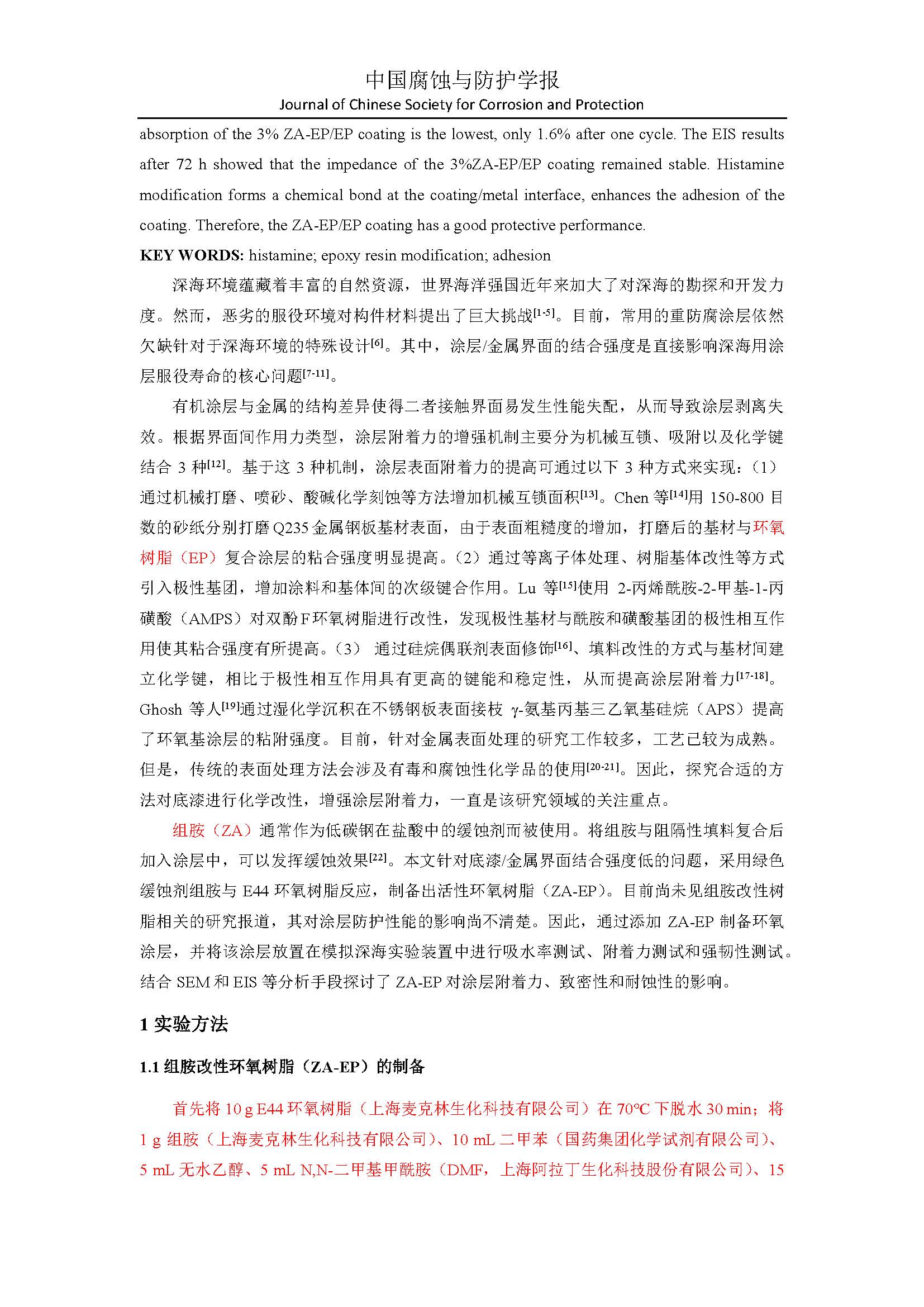 组胺改性环氧树脂及其对有机涂层性能的影响