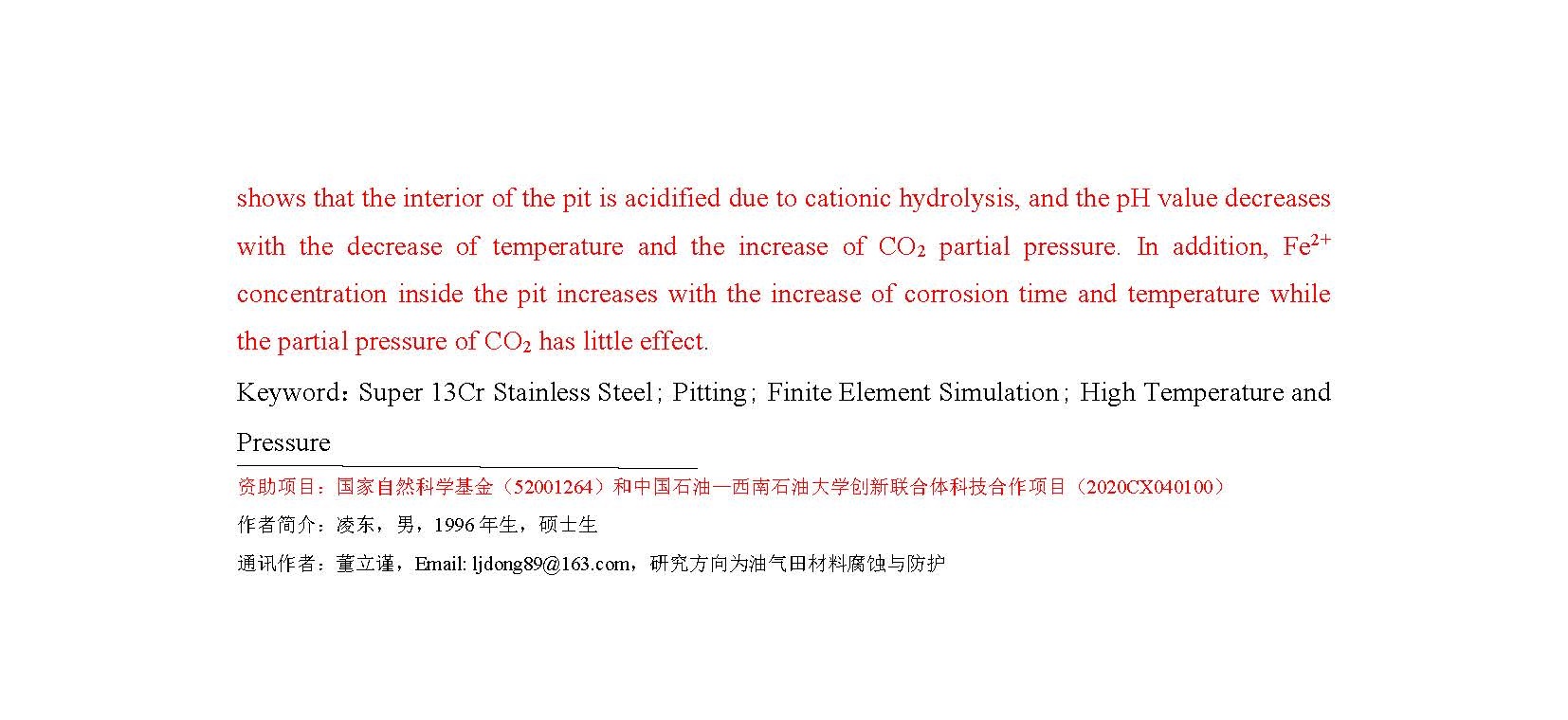 高温高压CO2环境中超级13Cr不锈钢点蚀有限元模拟