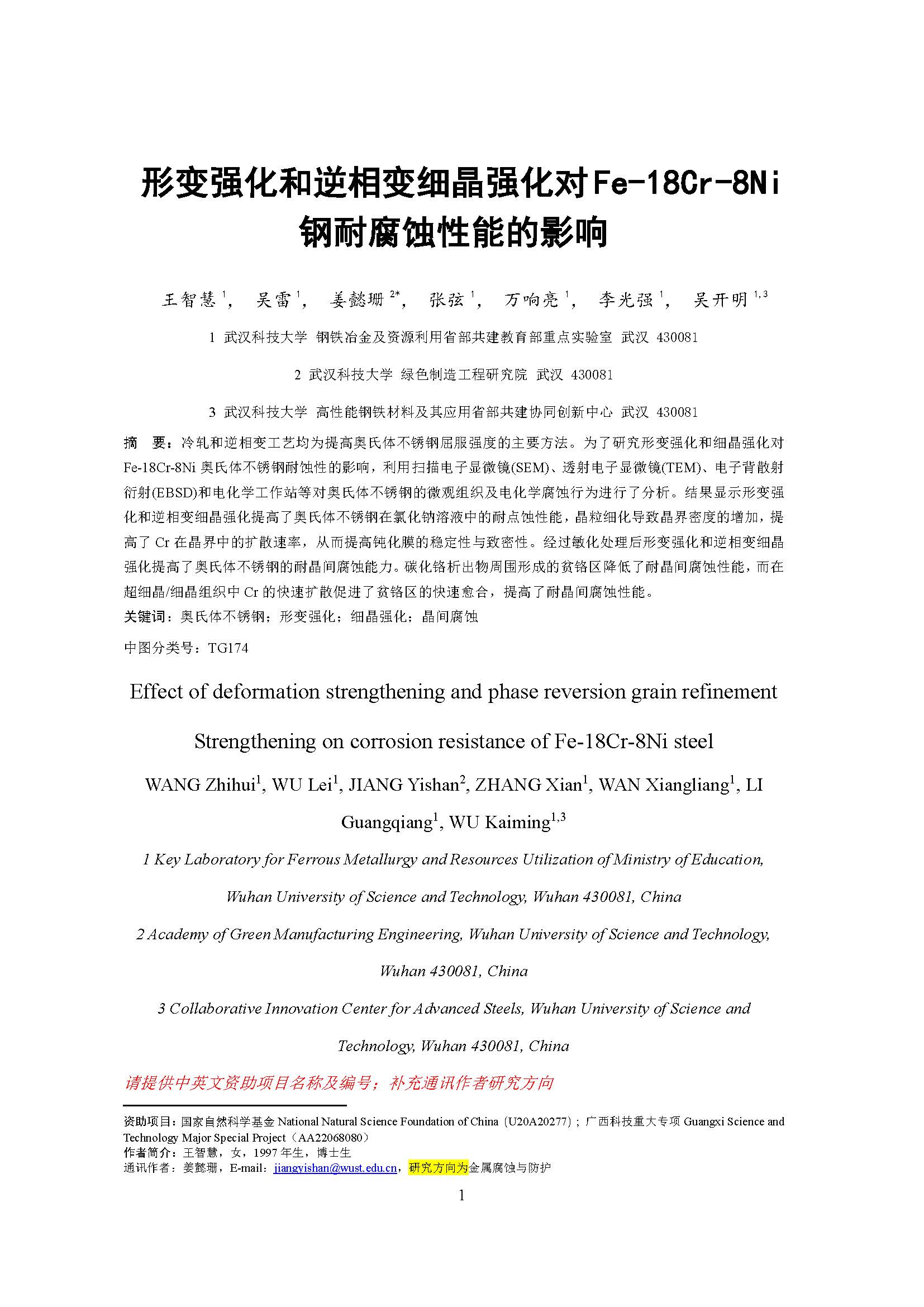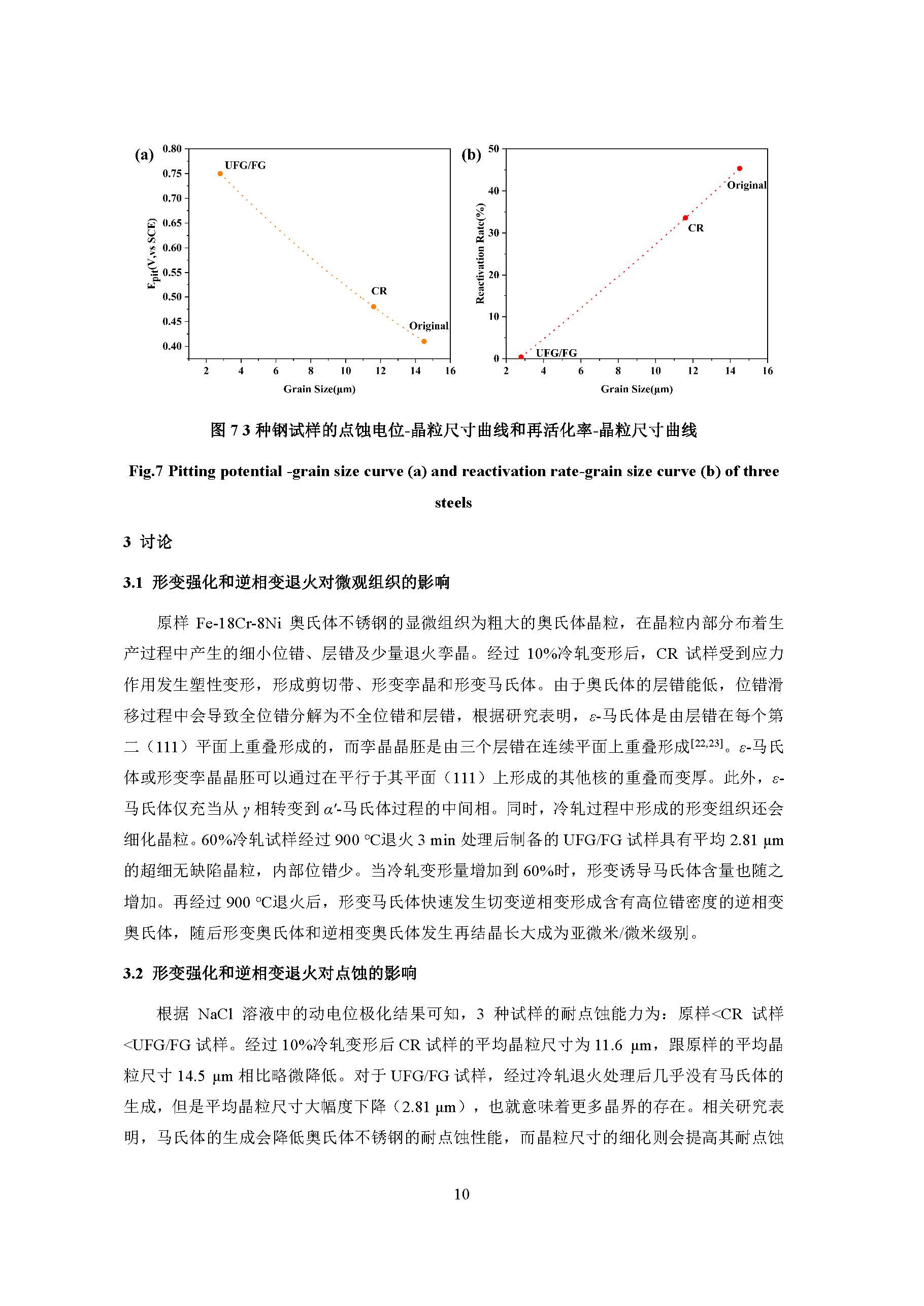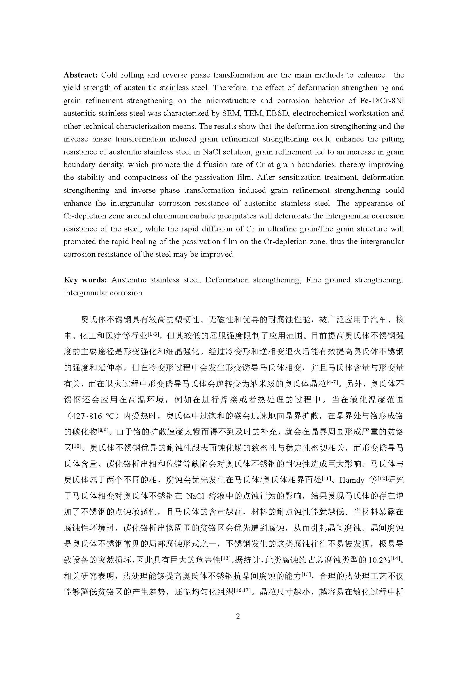 形变强化和逆相变细晶强化对Fe-18Cr-8Ni钢耐腐蚀性能的影响