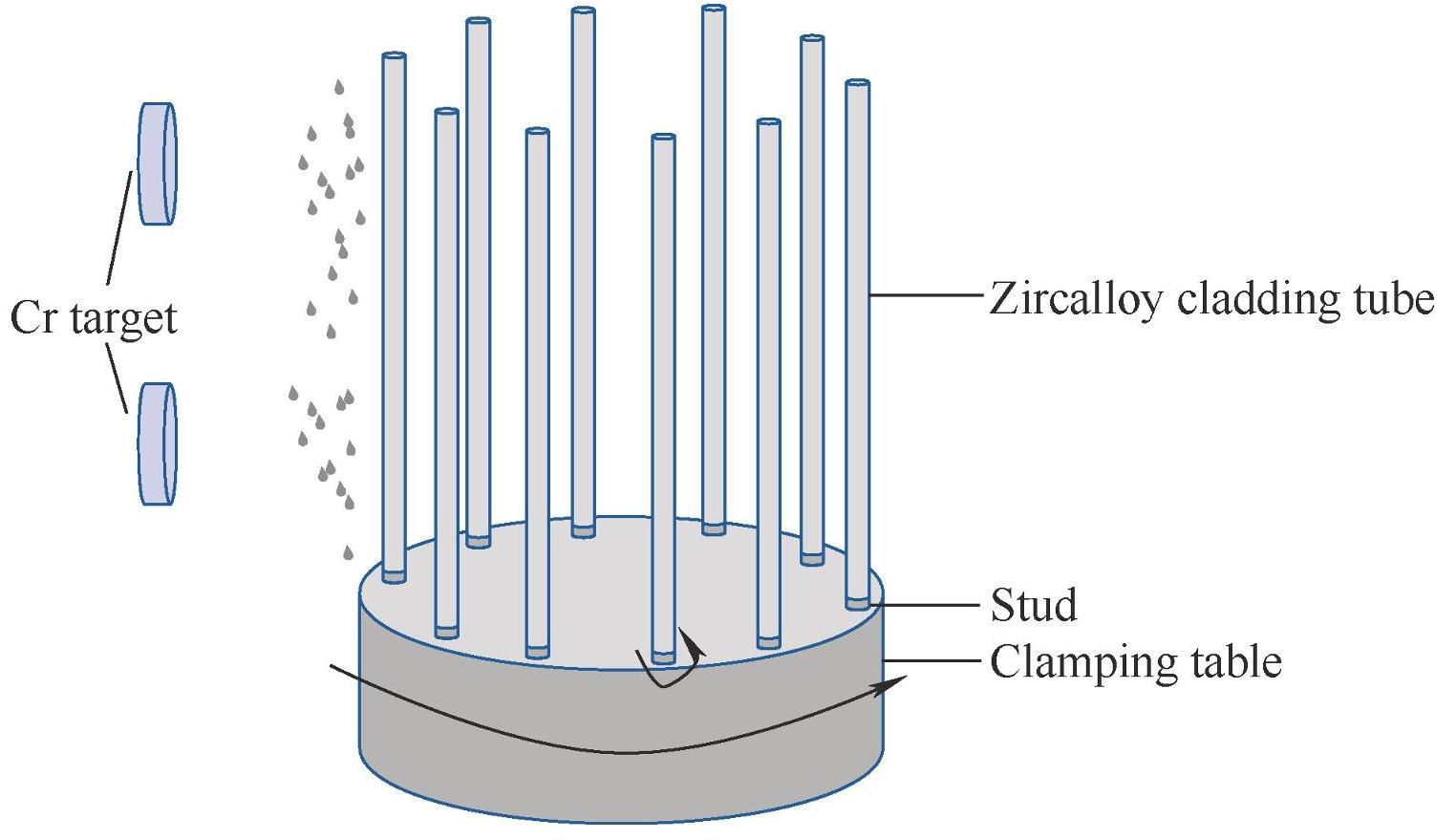 包壳管是核反应堆中燃料元件的重要组成部分,也是核电站的第二道安全屏障,其作用是防止裂变产物逸散、保证燃料元件的整体性、避免燃料受冷却剂腐蚀及有效导出热能。锆合金由于具有良好的力学性能、耐腐蚀性能及低的中子截面吸收系数等,是目前核电反应堆中应用最广的核燃料包壳材料[1]。自福岛核事故之后,国际上对核燃料的研发重点由提高其可靠性和经济性转向增强其事故容错能力。同时,在锆包壳表面制备涂层也成为事故容错燃料(Accident tolerant fuel,ATF)的重点研发方向之一[2,3]。
