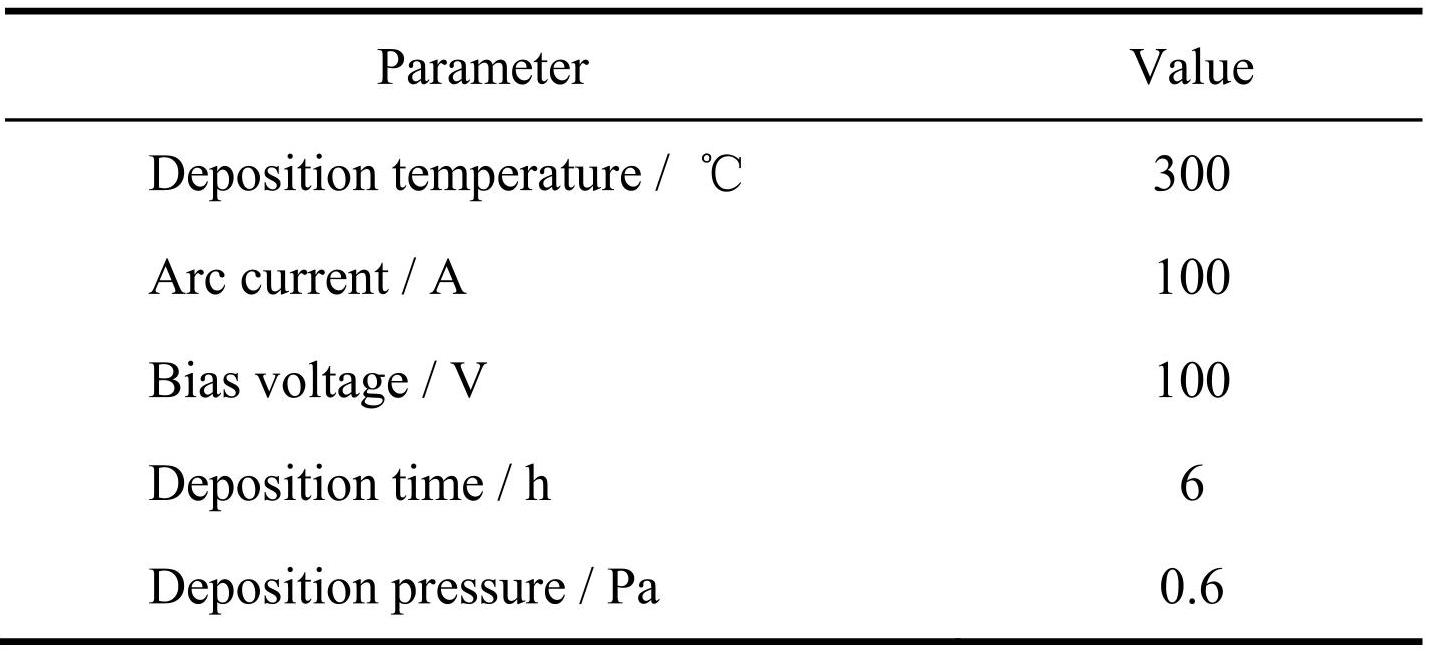 基体为长度 400 mm、外径 9.5 mm、壁厚 0.6 mm 的 N36 锆合金管(名义成分为 Zr-1Sn-1Nb-0.3Fe),靶材为纯度 99.99%的 Cr 靶,保护气为纯度 99.999% 的氩气。Cr 涂层的沉积参数见表1,沉积前用酒精和丙酮对基体进行清洗,完成后放入炉腔进行等离子体清洗,再进行离子轰击镀膜(制备打底层),最后沉积 Cr 涂层。制备打底层的偏置电压提高至 500 V,其余参数与 Cr 涂层沉积参数相同,其目的在于提高功率使晶粒细化,增强涂层与基体之间的结合力。
